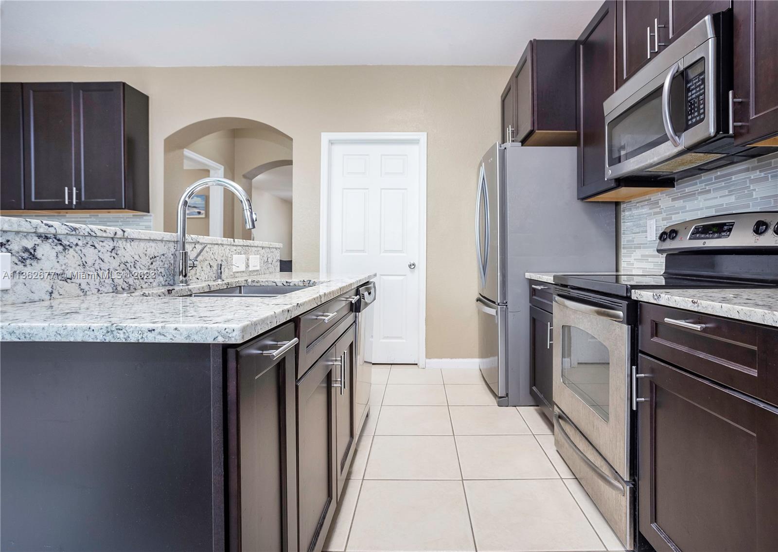 GORGEOUS 2 STORY TOWNHOUSE WITH HURRICANE IMPACT WINDOWS/DOORS THROUGHOUT! THIS HOME FEATURES TILE FLOORING ON THE LOWER LEVEL AND WOOD LAMINATE FLOORING ON THE UPPER LEVEL. THE UPGRADED KITCHEN IS COMPLETE WITH GRANITE COUNTERTOPS, WOOD CABINETRY, PULLOUTS, & STAINLESS STEEL APPLIANCES. THERE ARE 2 PRIMARY SUITES ON THE UPPER LEVEL, BOTH WITH THEIR OWN PRIVATE BATHROOMS AND WALK-IN CLOSETS. THIS HOME ALSO FEATURES A SEPARATE LAUNDRY ROOM & A FENCED-IN PATIO!