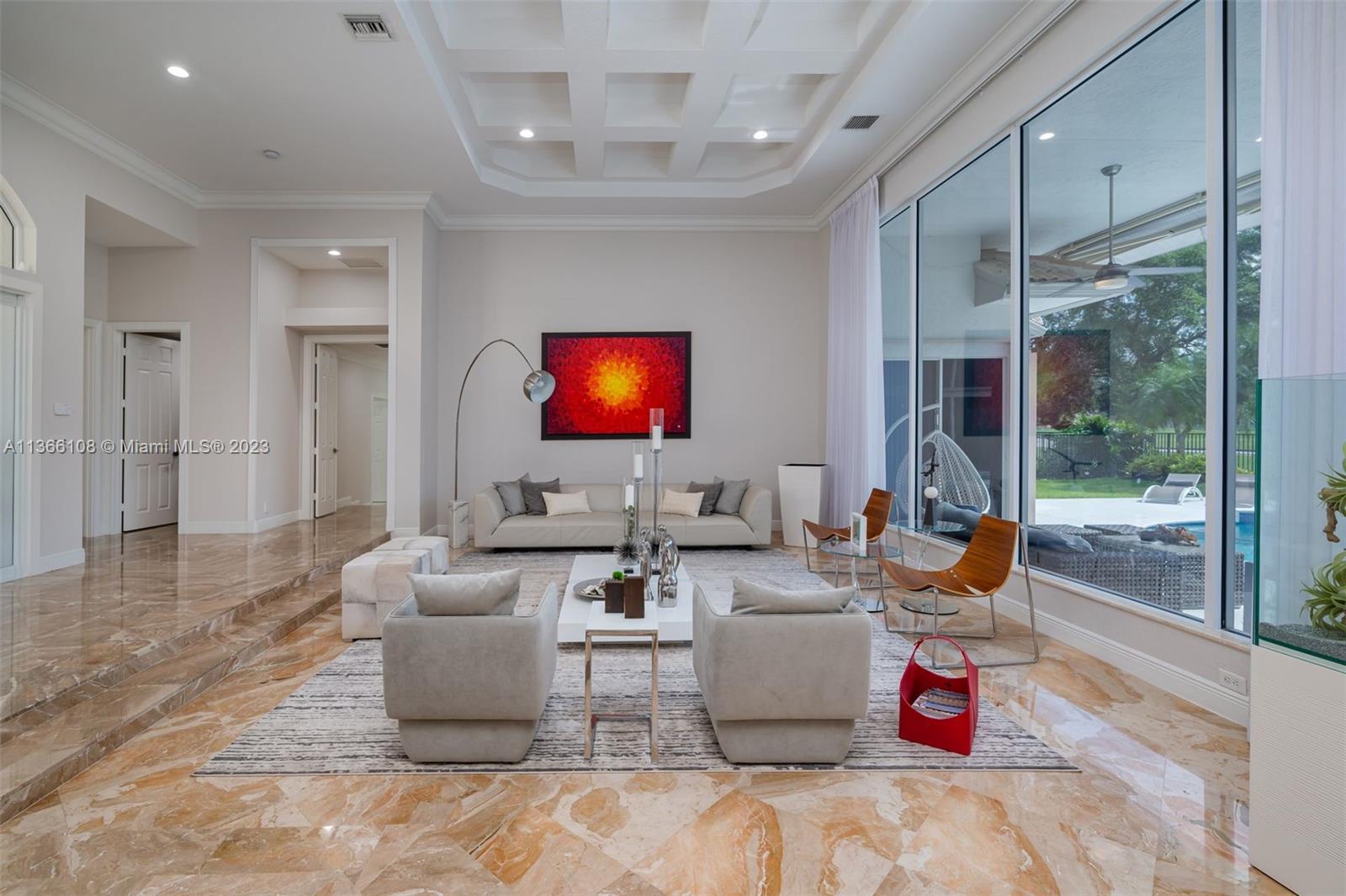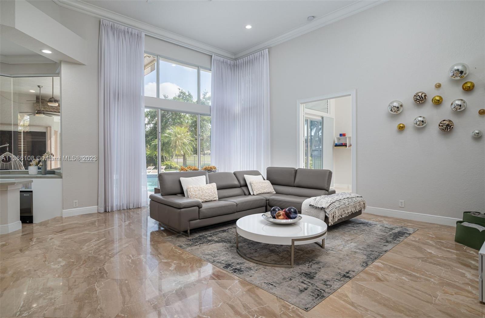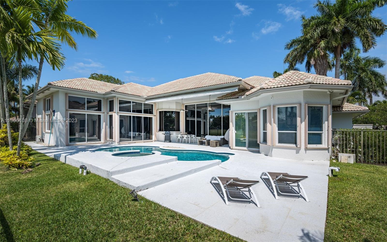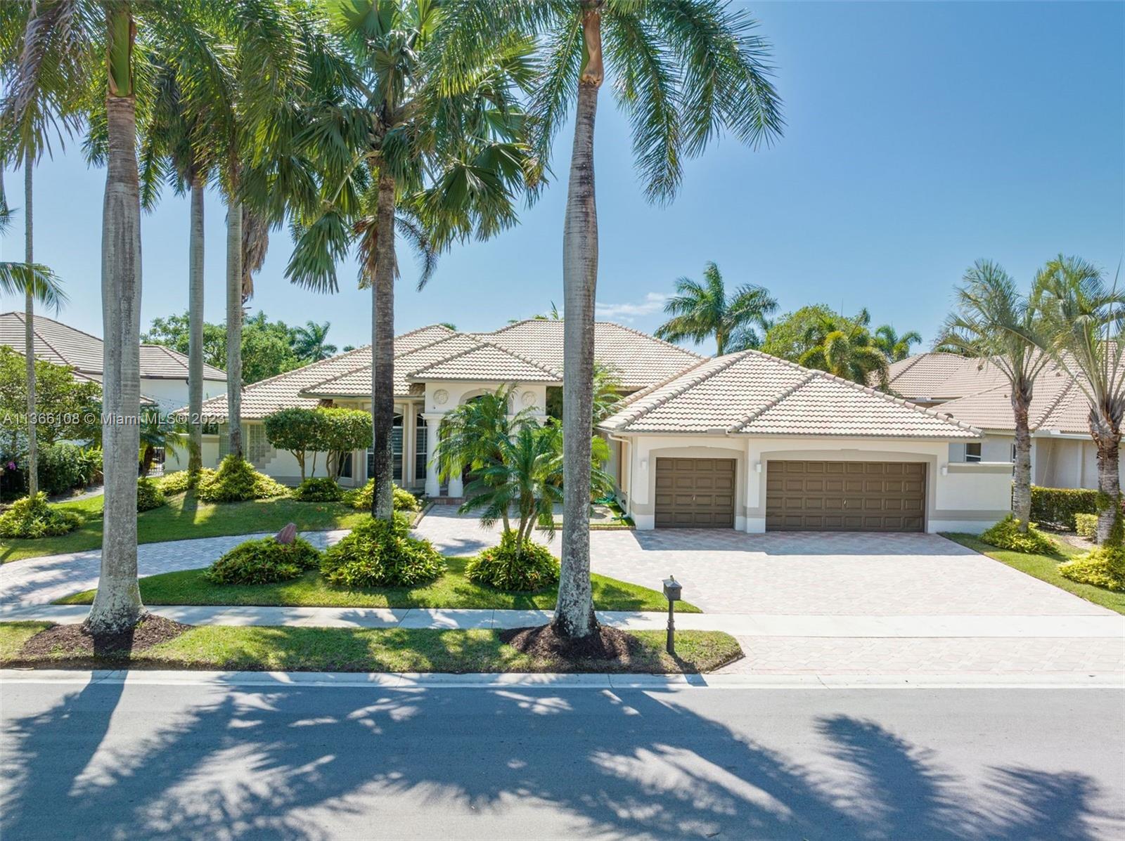 Experience luxury living in this stunning 4-bedroom, 4.5-bathroom single-family home for sale in Weston Hills' prestigious Poinciana neighborhood perfectly set on a 14,261 SF lot. With a modern and sophisticated design, this home features a spacious layout that includes also a playroom and an office. Enjoy breathtaking views of the golf course from your own backyard, with a recently resurfaced pool. The property was remodeled in 2020, boasting elegant finishes and high-end Monogram and Miele appliances in the kitchen. The original roof is in excellent condition. Equipped with accordion shutters and an impact front door. The 3-car garage provides an electric vehicle wall connector. Marble floors throughout, custom closets-cabinetry, 3 AC units and Cameras system (RING). Top-rated schools!