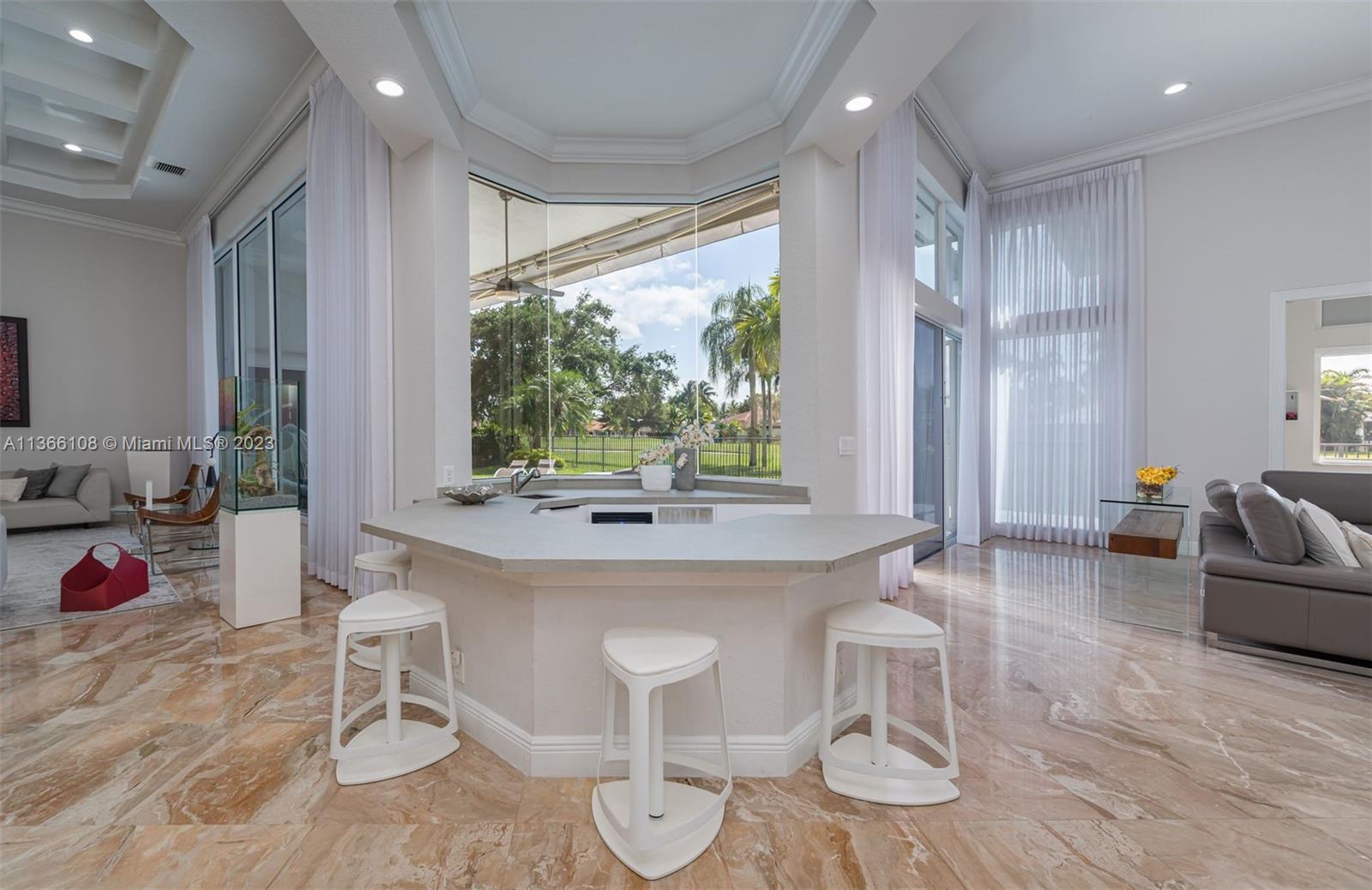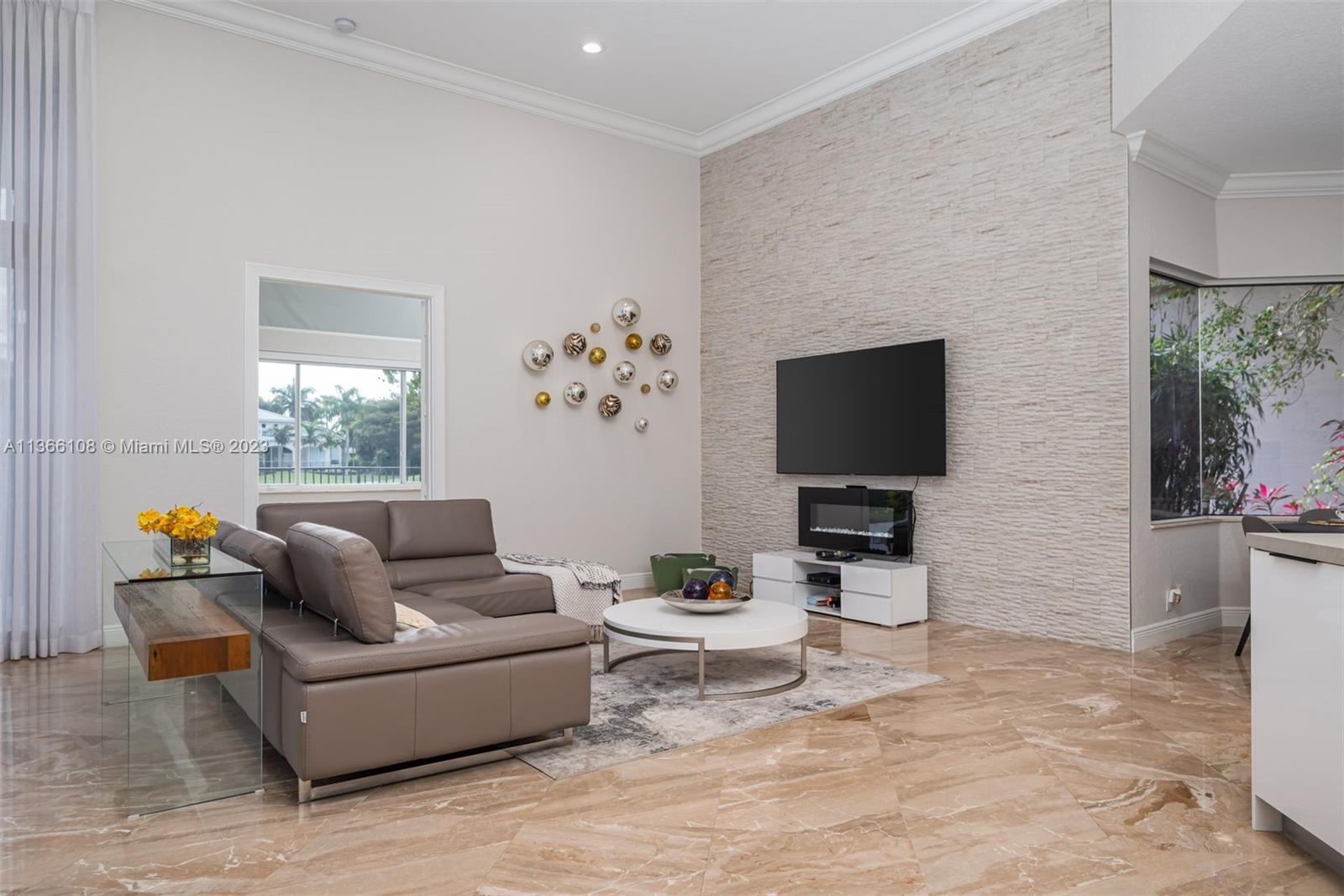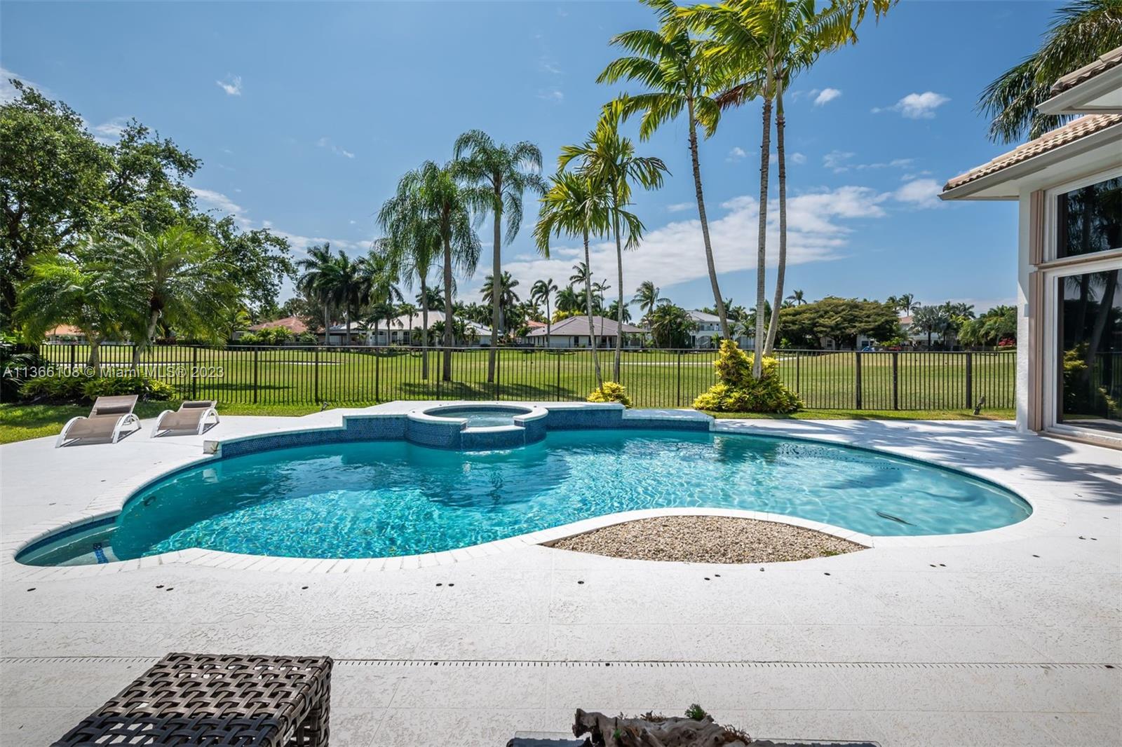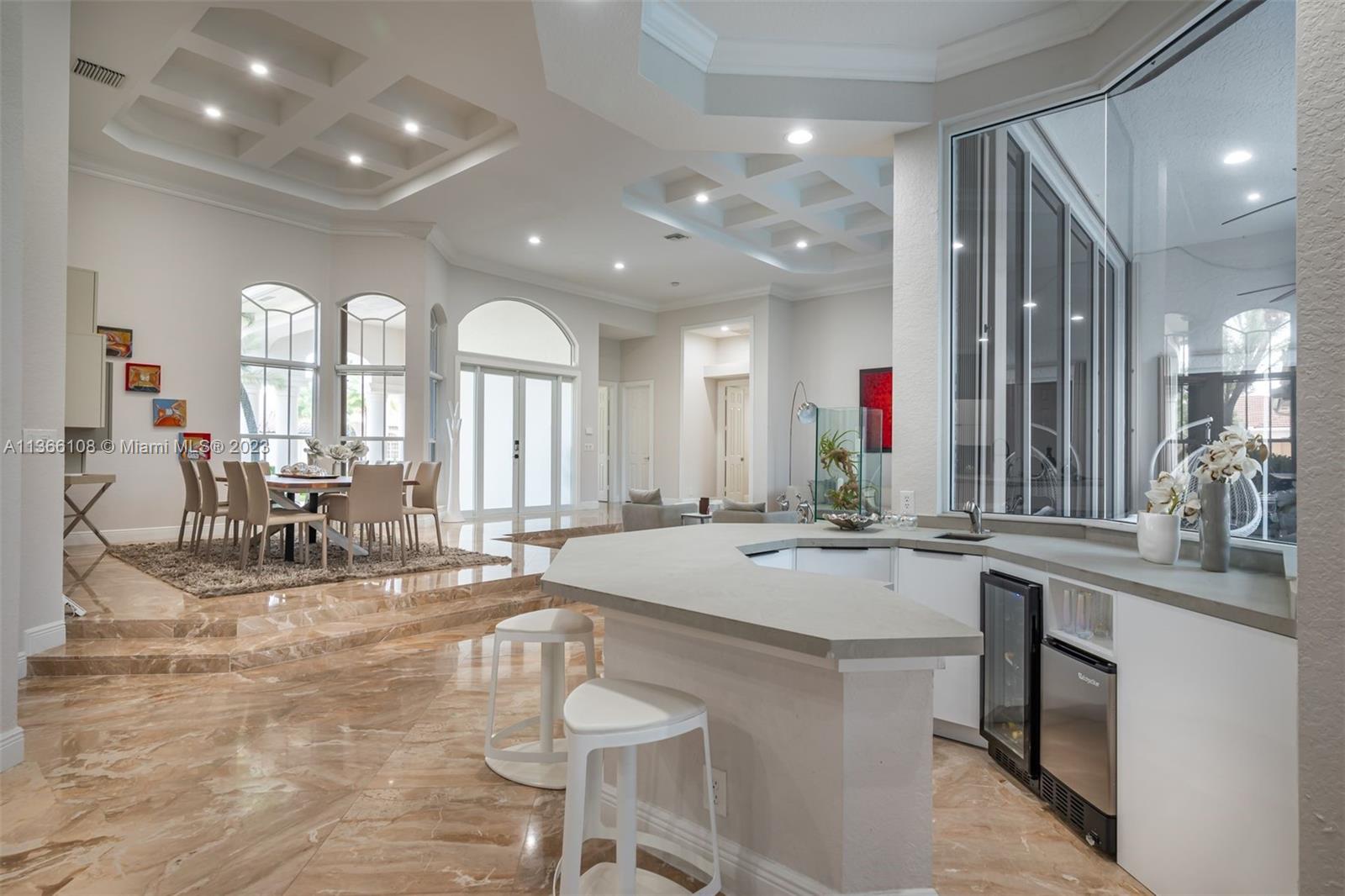 Experience luxury living in this stunning 4-bedroom, 4.5-bathroom single-family home for sale in Weston Hills' prestigious Poinciana neighborhood perfectly set on a 14,261 SF lot. With a modern and sophisticated design, this home features a spacious layout that includes also a playroom and an office. Enjoy breathtaking views of the golf course from your own backyard, with a recently resurfaced pool. The property was remodeled in 2020, boasting elegant finishes and high-end Monogram and Miele appliances in the kitchen. The original roof is in excellent condition. Equipped with accordion shutters and an impact front door. The 3-car garage provides an electric vehicle wall connector. Marble floors throughout, custom closets-cabinetry, 3 AC units and Cameras system (RING). Top-rated schools!