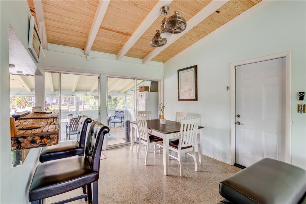 Shady Banks waterfront pool (heated) home. 60' of ocean access waterfront, no fixed bridges & a private dock for your boat. Large sunny pool deck, great for entertaining or sunbathing. Vaulted, wood plank & beamed ceilings creates that Key West feel. Kitchen includes an island w/ seating, stainless appl, granite countertops & custom backsplash. Updated bath, new flooring, impact windows/doors & a metal roof (2019) completes the package! Shady Banks is one of the best neighborhoods & locations in Ft Lauderdale w/ 2 parks one with over 5 acres including volleyball, tennis, basketball courts, baseball diamond, jogging trails, kids play area. Another park directly on the New River w nature trails. 1.8 Miles to downtown, 3 miles to the beach and 2 miles to Ft Lauderdale Airport.