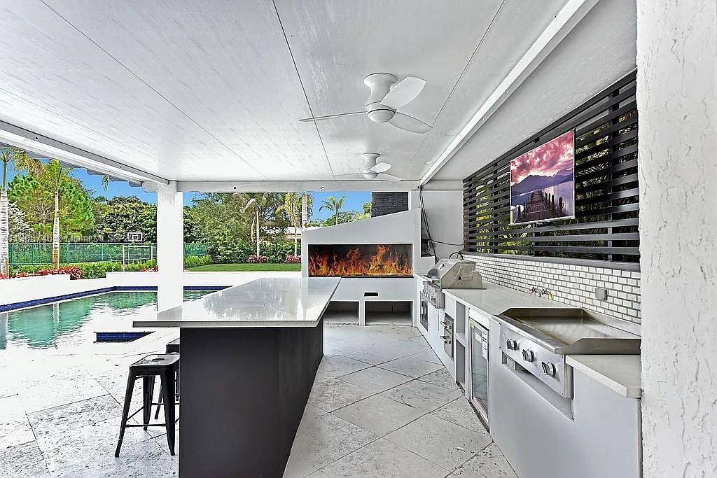 Casa Hexagon was designed for privacy, family entertainment, perfect for family gatherings. Extra large pantry, oversized refrigerator, freezer, underground propane tank services kitchen cooktop, BBQ, Outdoor cooktop, 22K generator that can service the entire home. Impact windows, door, newer Ac, linear diffuser, led lighting, porcelain floors throughout, custom 96 inch interior doors, custom closet in every room, high ceilings, custom bath glass enclosures, Symmons plumbing fixtures, custom water filtration system, Irrigation system new landscaping, aluminum louvers in and around home as accent features and privacy, outdoor full functioning wood oven, sink, grill, cooktop, beverage center, fans, large entertainment island, Basketball court.