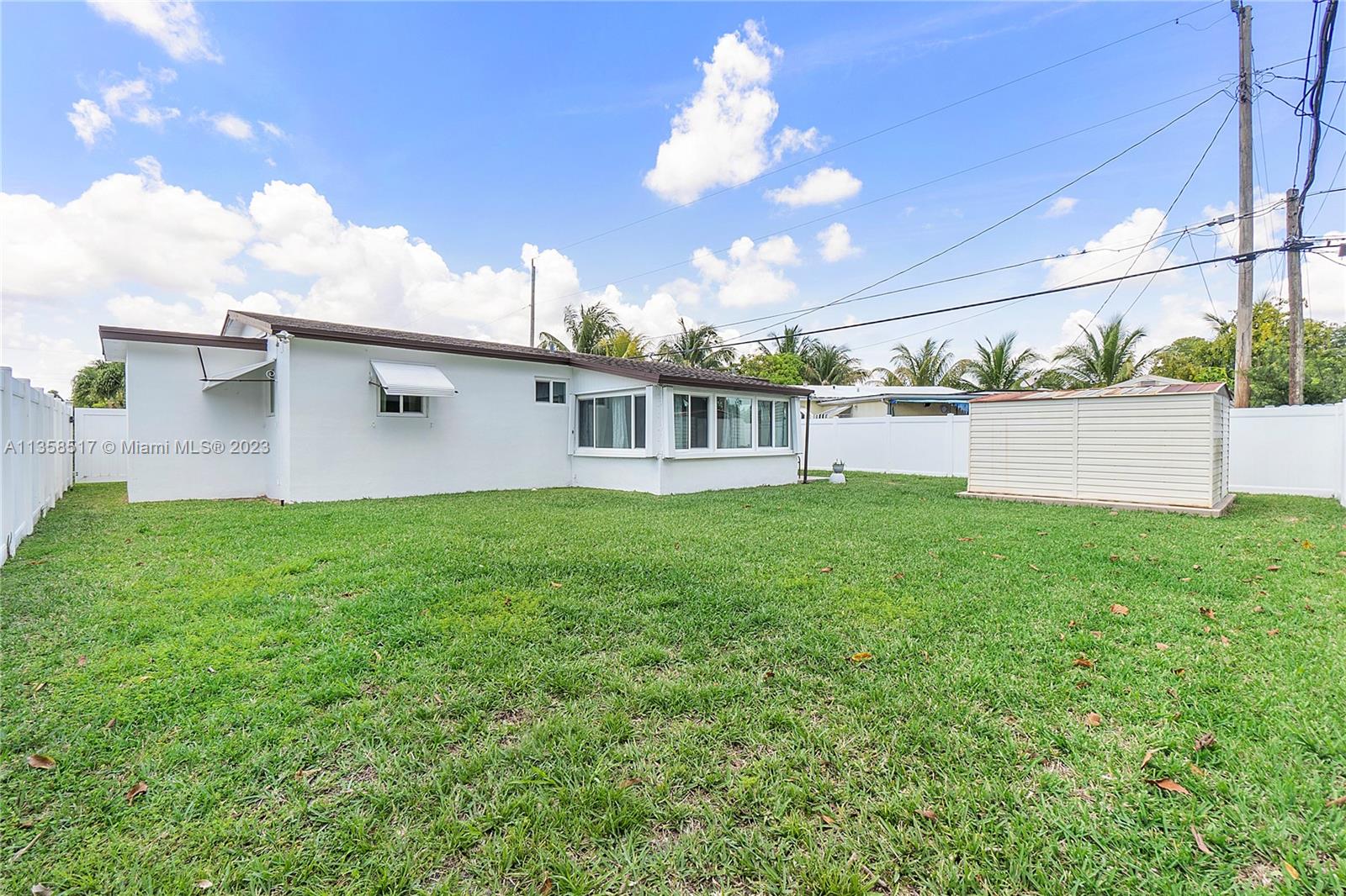 This delightful 2 bedroom, 2 bathroom single family home offers a comfortable and inviting atmosphere. The garage can also serve as a 3rd bedroom with insulation and impact doors and windows! The open, flowing floorplan showcases tile throughout the living areas and updated stainless steel appliances. Enjoy the convenience of a new AC unit installed in 2016, accordion shutters and impact windows for added security. With no HOA, you can relax in the large lush fenced-in backyard or soak up the sun in the sun room featuring plenty of natural light. An added bonus is the backyard shed for extra storage and this home is wheelchair accessible. This home is sure to impress and provides the perfect balance of comfort and convenience.