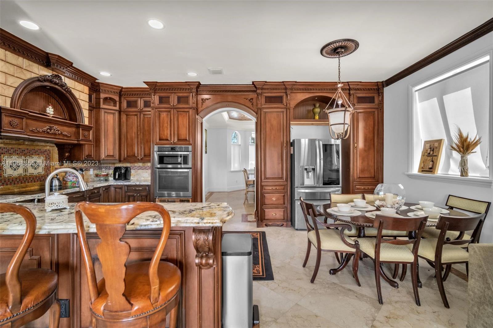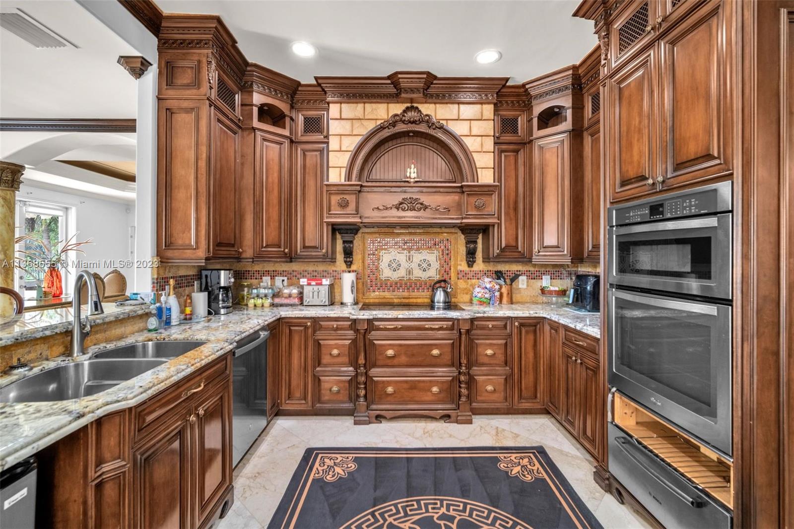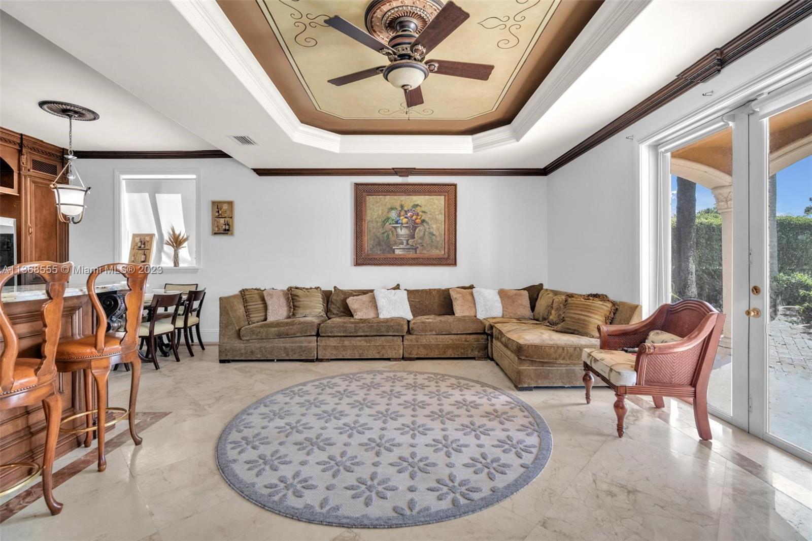 Luxury and elegance throughout this 2-story jewel! Resort style home includes pool & jacuzzi. Watch the sun set. A breath-taking view of the Country Club of Miami Golf Course. The picturesque detail on the ceilings complements the marble floors throughout the home. Custom cabinetries adore the walls of the kitchen which is adjacent to a spacious formal dining area. Each bedroom is oversized and accommodates family members with private bathrooms. This split-level floor plan also has a full downstairs bedroom for your guest to enjoy. Experience sophistication at its best as you open custom French doors leading to an extraordinary huge upstairs master bedroom with an enormous sitting area and equally large bathroom. Large balcony. Welcome home, this is a must-see property!