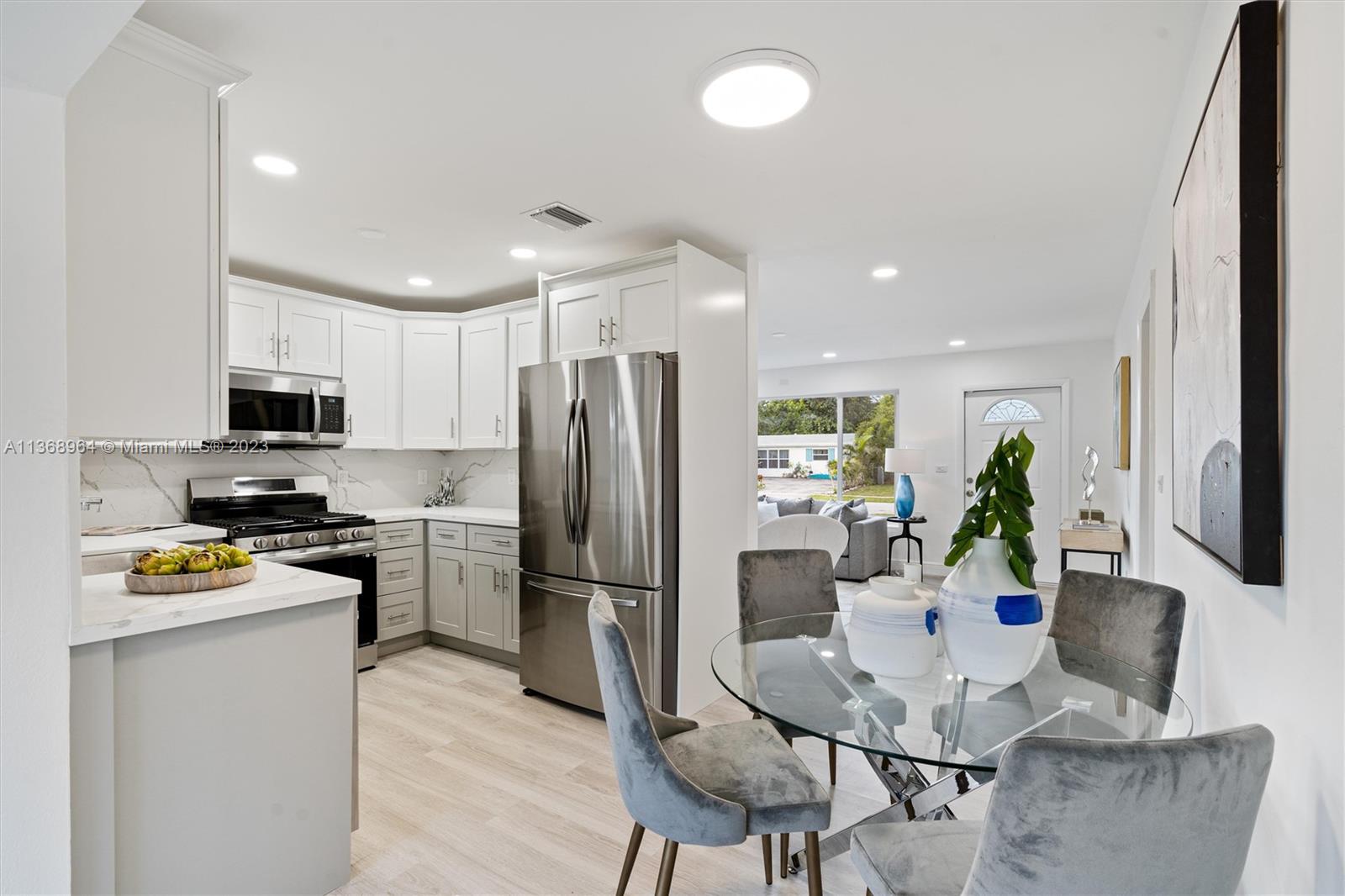 Modern sophistication defines this newly renovated 3 bedroom/2 bathroom home in a family oriented neighborhood. This charming home features full hurricane impact windows, new shingle roof, new bathroom vanities, new kitchen w/ quartz countertops ,custom cabinetry & backsplash, new stainless steel appliances, spacious living areas, large laundry room, and a Florida room, perfect for entertaining your guests.This home is perfect for any family to enjoy! Endless amounts of natural lighting & luxury vinyl laminate floors lead you to a split bedroom floor plan with an oversized master suite, offering a relaxing bathroom with a rainfall shower. The vast backyard has extensive room for a pool & outdoor kitchen. And an added bonus, there is no HOA.
