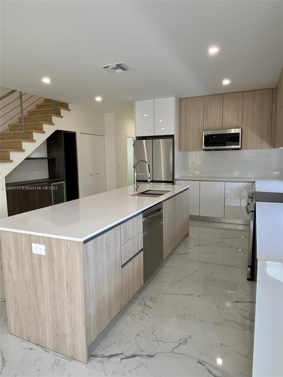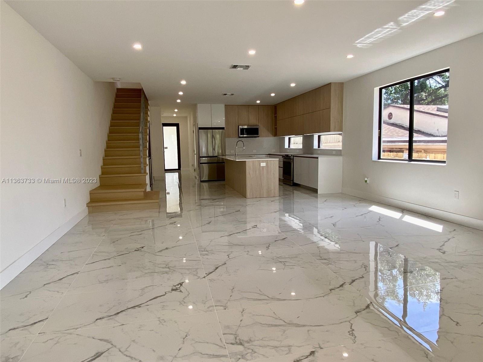2023 Contemporary Townhouse in the most desirable area of Tarpon River. Modern design planned with all high-end features throughout. Elegant 9' high flat ceiling on Open floorplan. 3 Bedrooms and 3.5 Baths in a total 2600sqft. Spacious kitchen w/SS appliances package, quartz counter tops, wine bar area and custom designed cabinets. Master Bedroom with 2 closets and large private balcony. 24x48 Porcelain Tile floor on 1st floor and 100% water-resistant PVC flooring on 2nd floors and stairs. Hurricane Impact rolling windows and doors. Nest thermostat. Ring Video Doorbell. Home Security camera system installed. Laundry on 2nd floor with full size W/D. Paved on driveway and patio, completely fenced with private POOL and professionally sodded, landscaped and irrigated. FEE SIMPLE no HOA.
