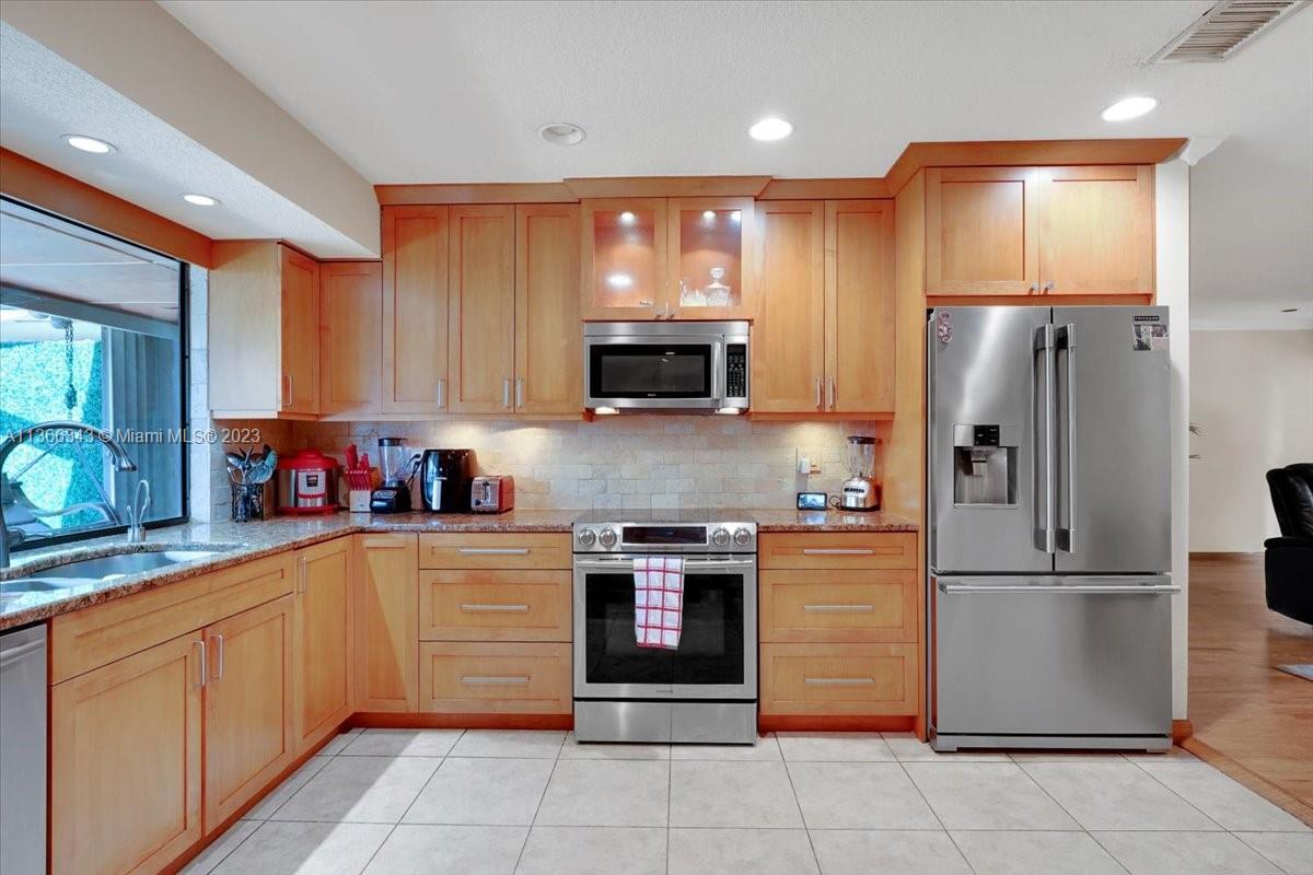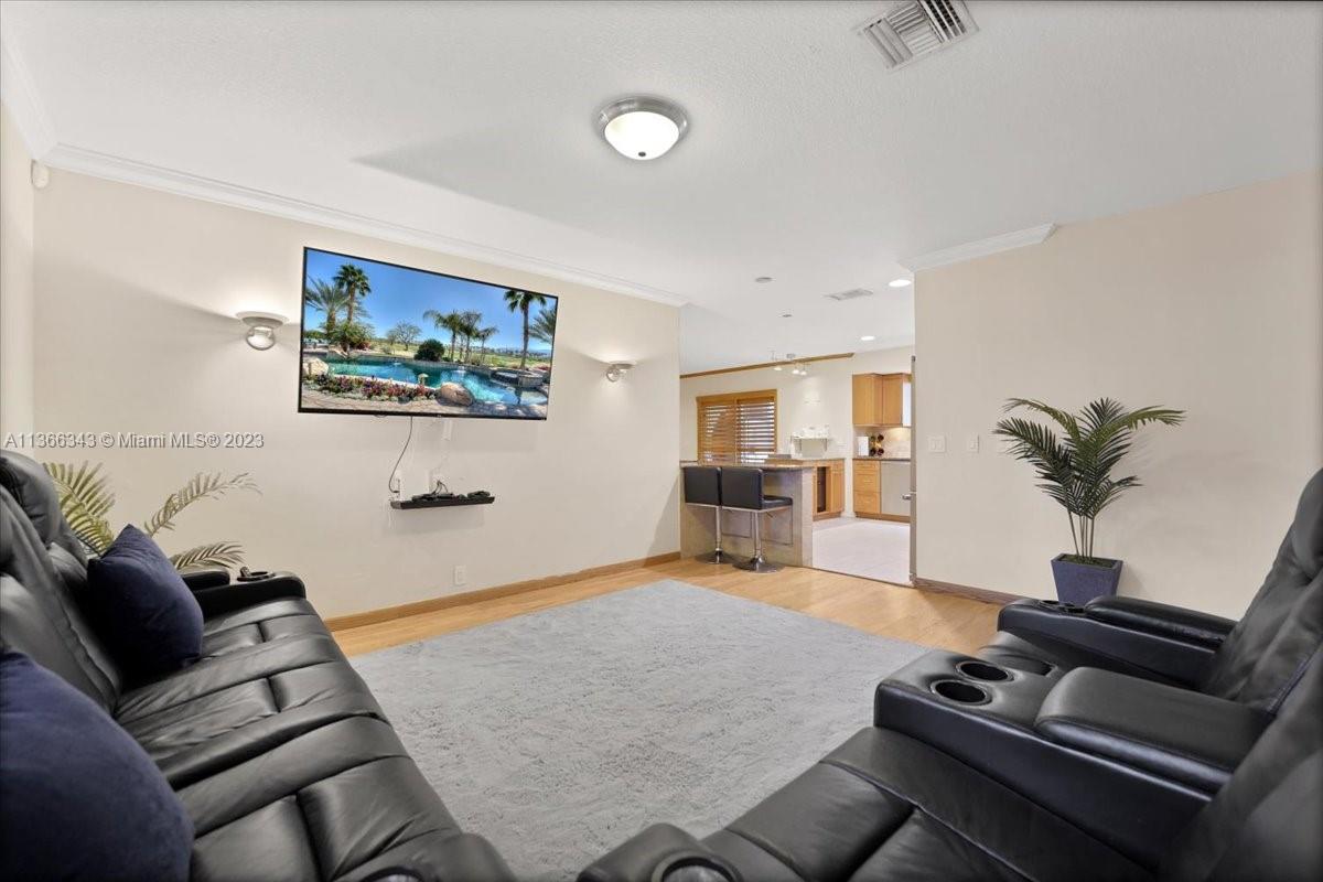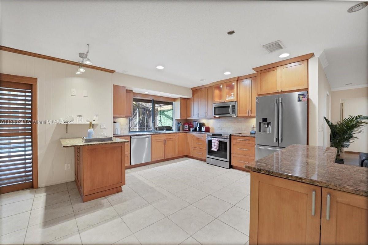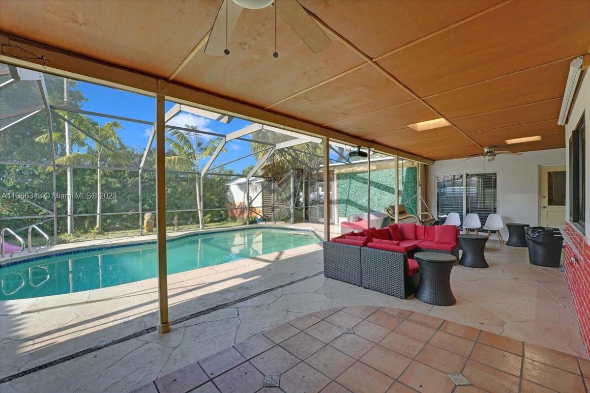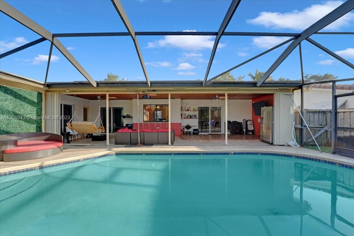 This lovely 3 bedrooms plus den and bonus room located in Hollywood Hills PRIME LOCATION close to world class shopping, restaurants, 5 minutes from Hard Rock and close to Beaches. Inside, the home features soft close wood cabinetry, granite counter tops, and stainless steel appliances in the kitchen. The kitchen also has a pass through window to a 600 sq. ft. lanai, perfect for outdoor entertaining and dining. The lanai overlooks the HEATED POOL with domed screening for added privacy. There is also a backstreet entrance with a concrete slab and gazebo, perfect jet sky or boat.
