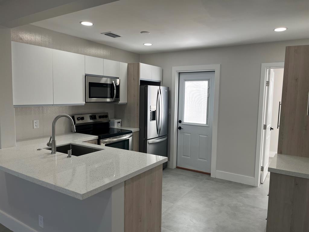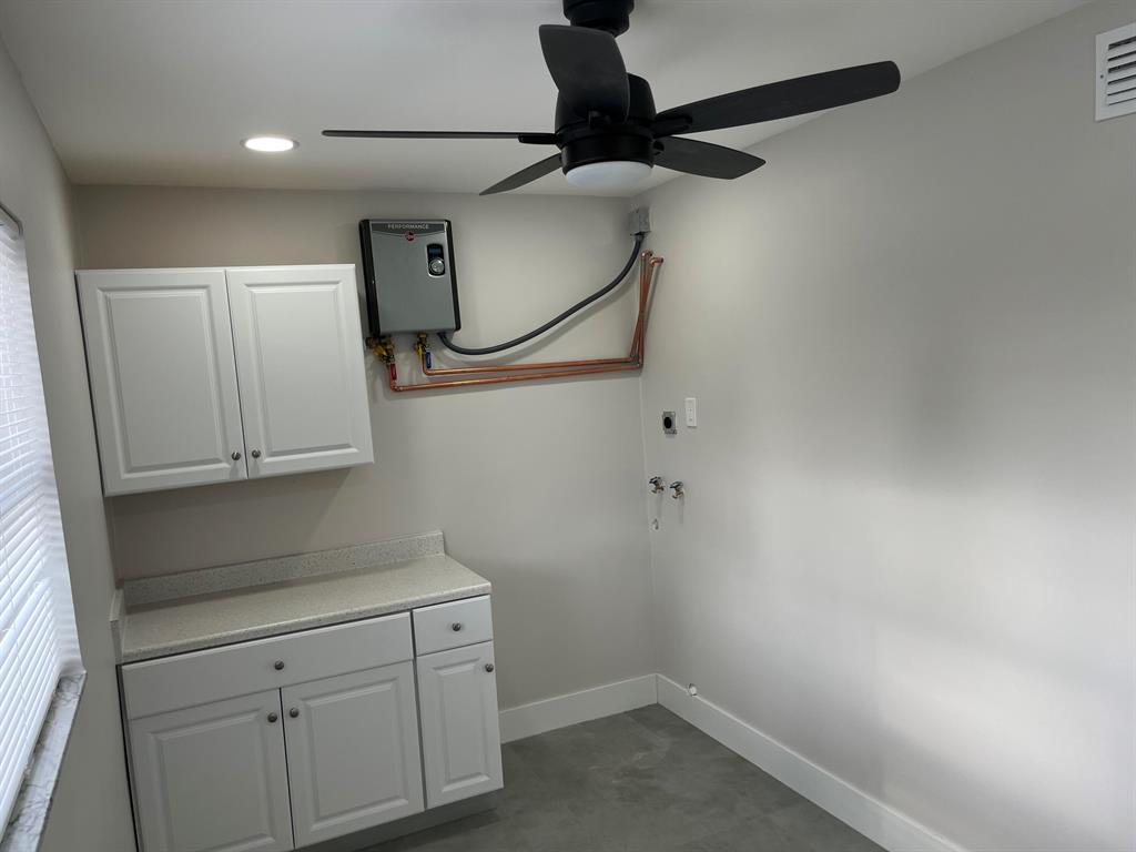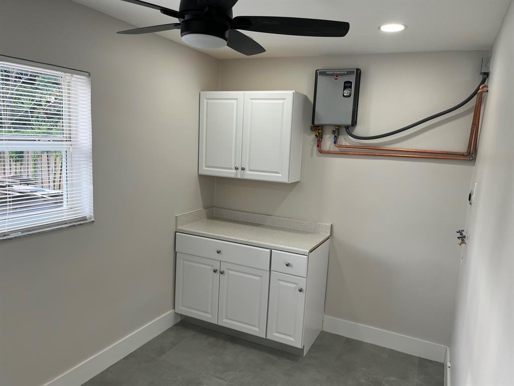 Modern, simple style fully renovated 3/2 with high quality branded kitchen cabinetry. All new bathrooms, flooring, and appliances including upgraded tankless water heater. Beautiful ceiling fans and electrical fixtures. Laundry room with built in cabinets and office area. All wooden fence around the property with double gates for easy access and private pool with patio deck. Shed included with the house.