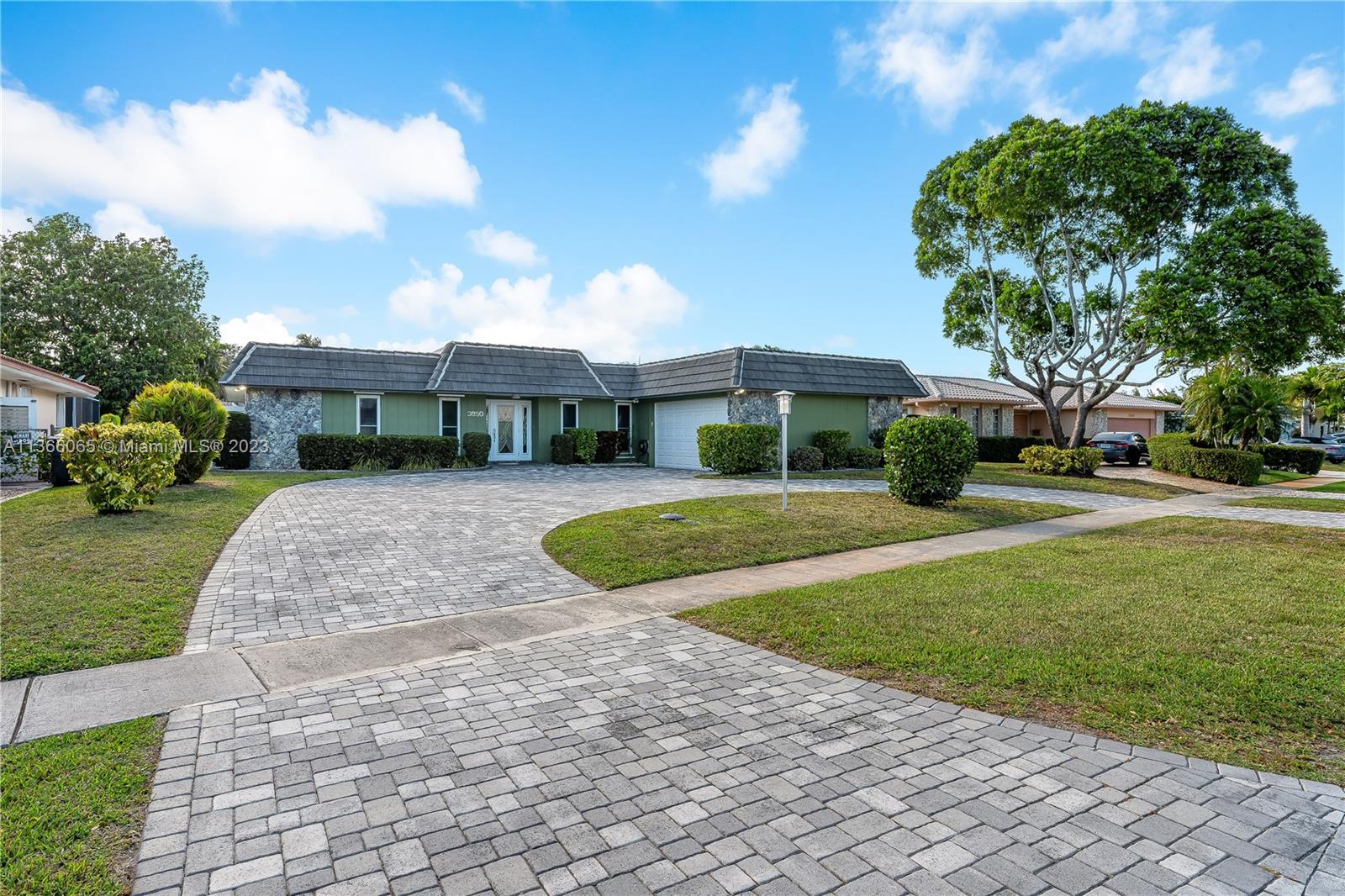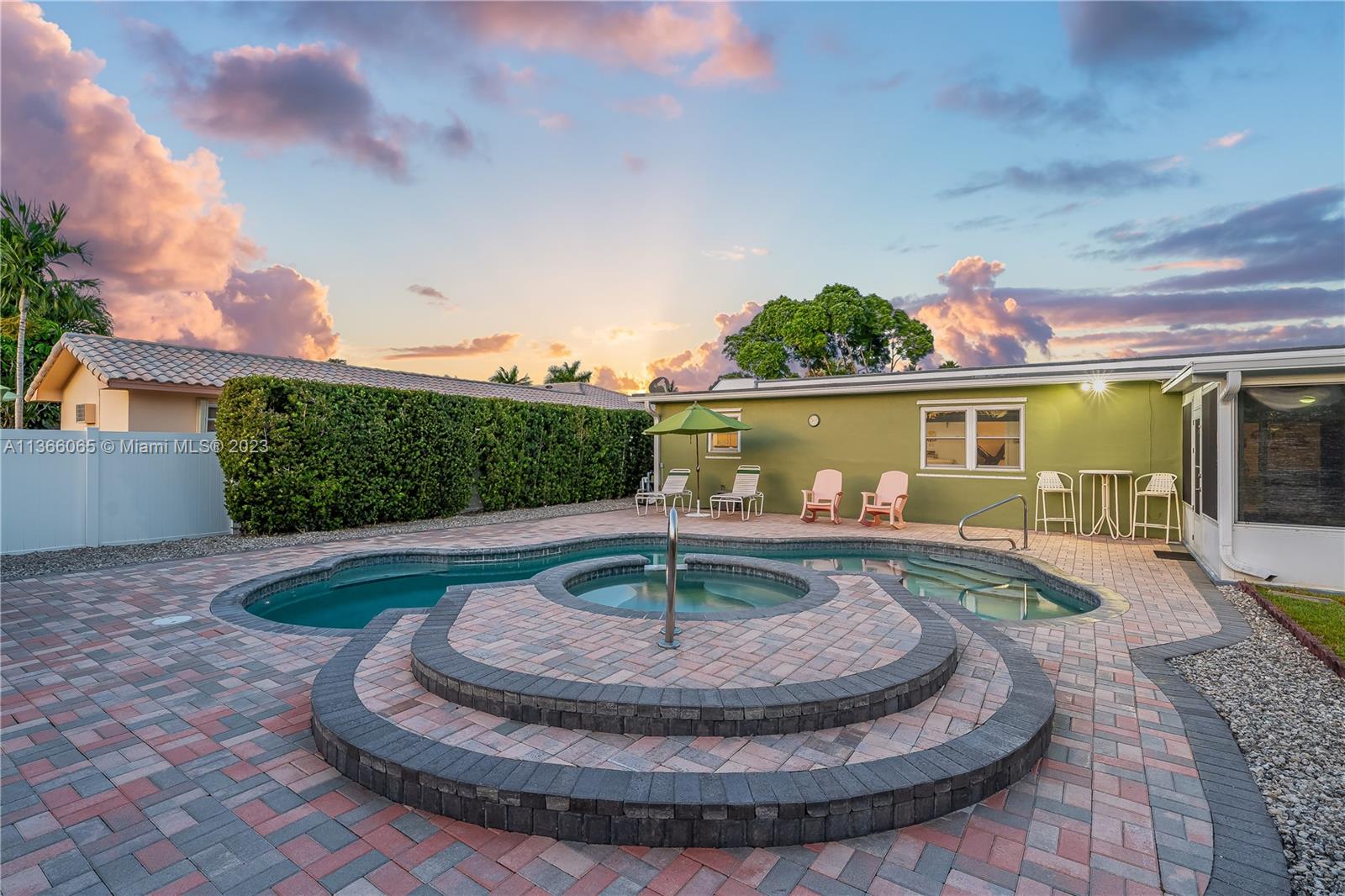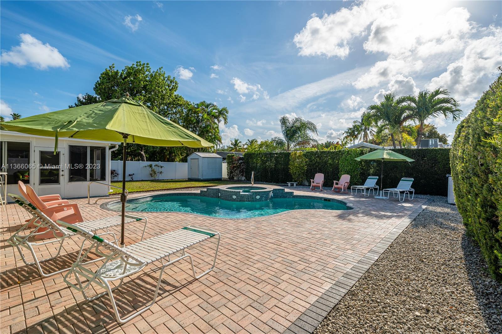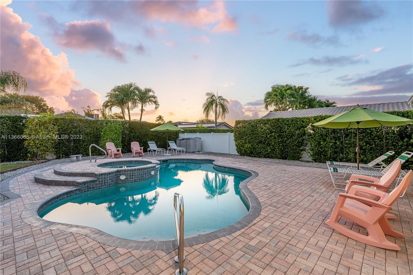 If you like to ENTERTAIN.... this ONE STORY 4 bedrooms 2 baths SINGLE FAMILY w/ Salt Water HEATED POOL & JACUZZI is for YOU!! Sitting on MORE THAN 1/4 acre, this home w/ green space, PVC FENCE, ENCLOSED FLORIDA ROOM, Sprinkler System, 2 car garage, extra freezer & GIGANTIC PAVED CIRCULAR DRIVEWAY will take your breath away! This house has it all: HURRICANE IMPACT WINDOWS AND DOORS including garage door, LARGE & MODERN KITCHEN, STAINLESS STEEL APPLIANCES with extra oven, PORCELAIN TILE in all areas except kitchen, dining & enclosed patio which has epoxy. Roof was replaced in 2012. Propane GENERATOR for all the house installed in 2018. AC was replaced in 2021. Pool Pump was replaced on 2020. Both Bathrooms have been remodeled as well. Basically OVER 12,237 sq.ft. of perfection & NO HOA!