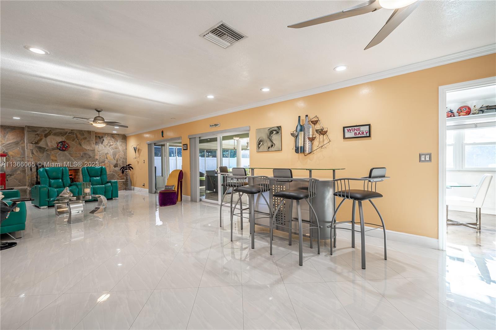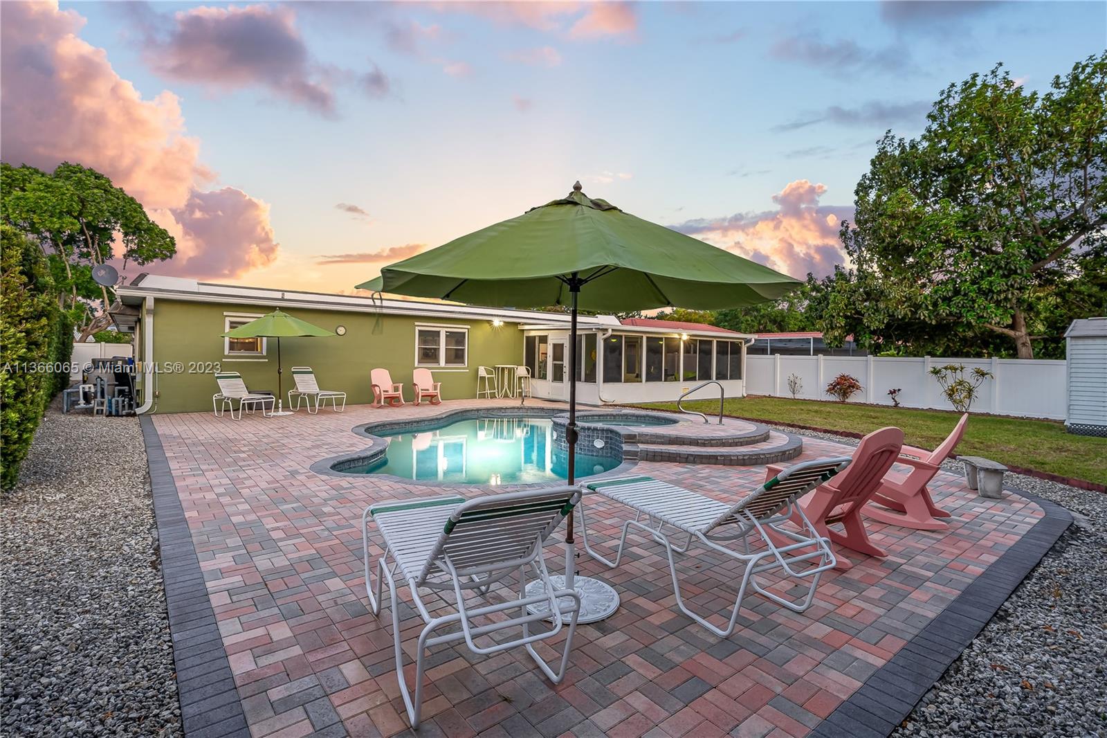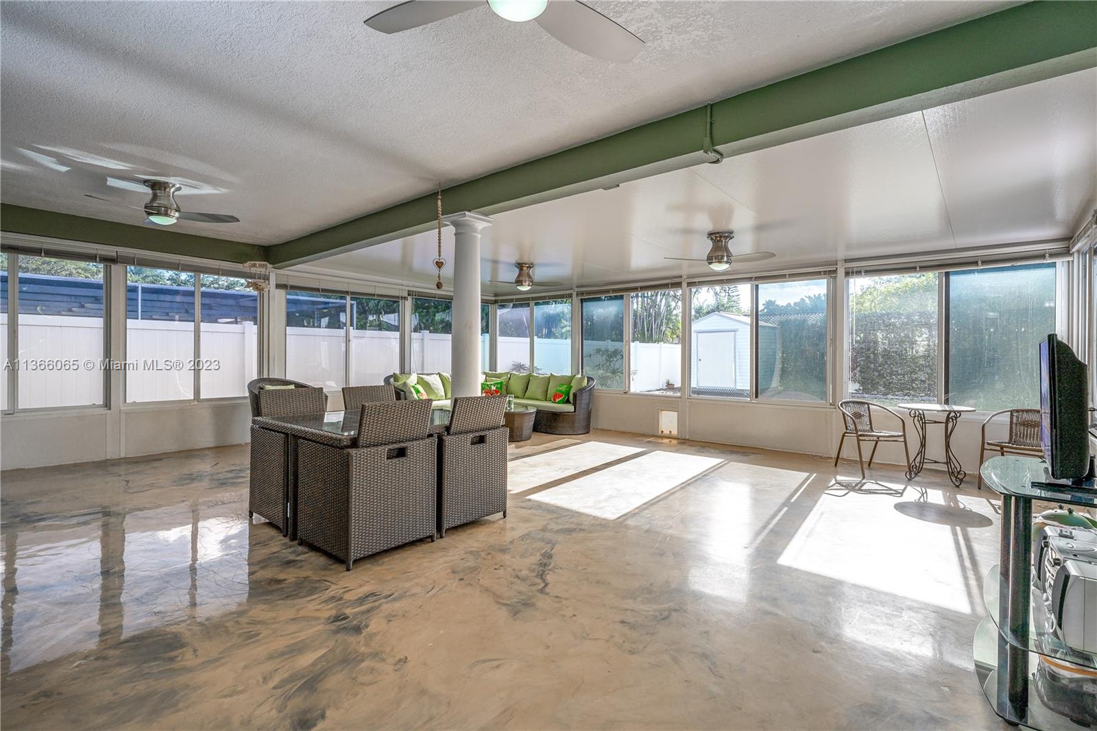 If you like to ENTERTAIN.... this ONE STORY 4 bedrooms 2 baths SINGLE FAMILY w/ Salt Water HEATED POOL & JACUZZI is for YOU!! Sitting on MORE THAN 1/4 acre, this home w/ green space, PVC FENCE, ENCLOSED FLORIDA ROOM, Sprinkler System, 2 car garage, extra freezer & GIGANTIC PAVED CIRCULAR DRIVEWAY will take your breath away! This house has it all: HURRICANE IMPACT WINDOWS AND DOORS including garage door, LARGE & MODERN KITCHEN, STAINLESS STEEL APPLIANCES with extra oven, PORCELAIN TILE in all areas except kitchen, dining & enclosed patio which has epoxy. Roof was replaced in 2012. Propane GENERATOR for all the house installed in 2018. AC was replaced in 2021. Pool Pump was replaced on 2020. Both Bathrooms have been remodeled as well. Basically OVER 12,237 sq.ft. of perfection & NO HOA!