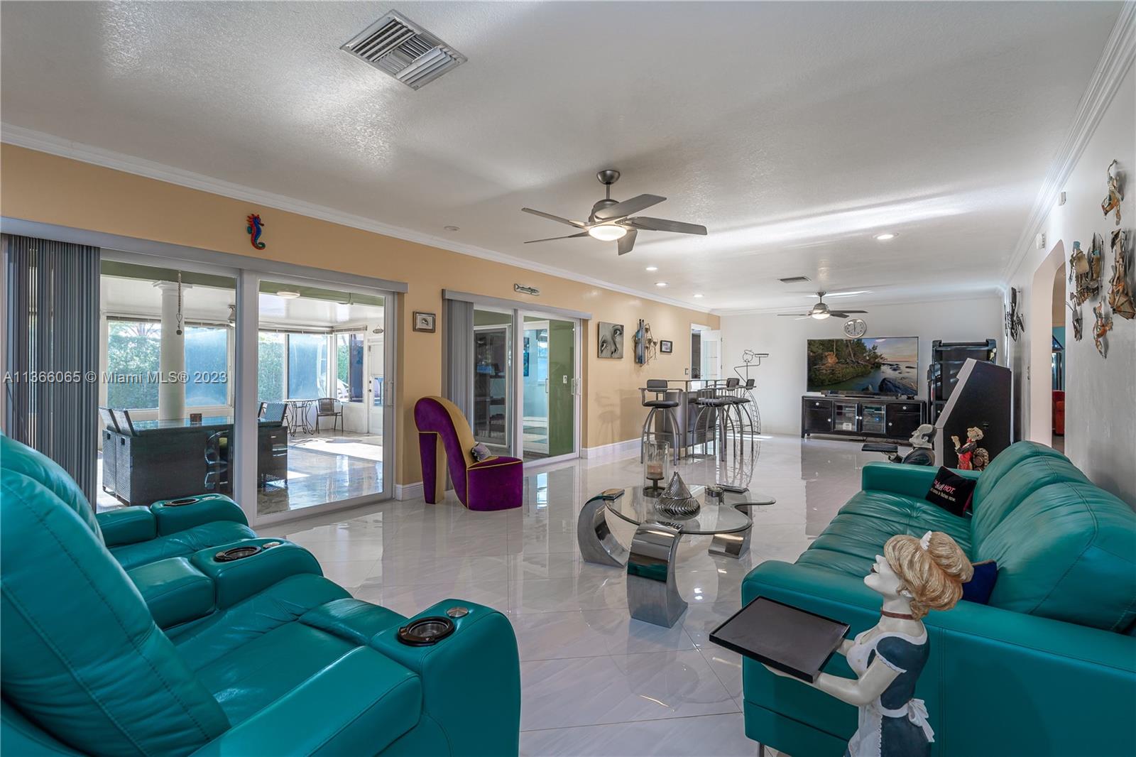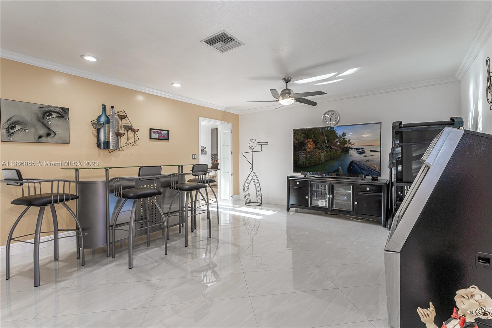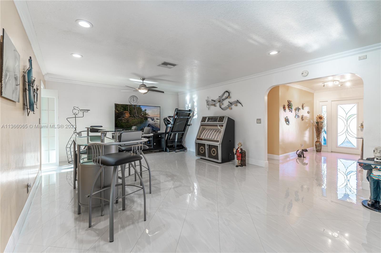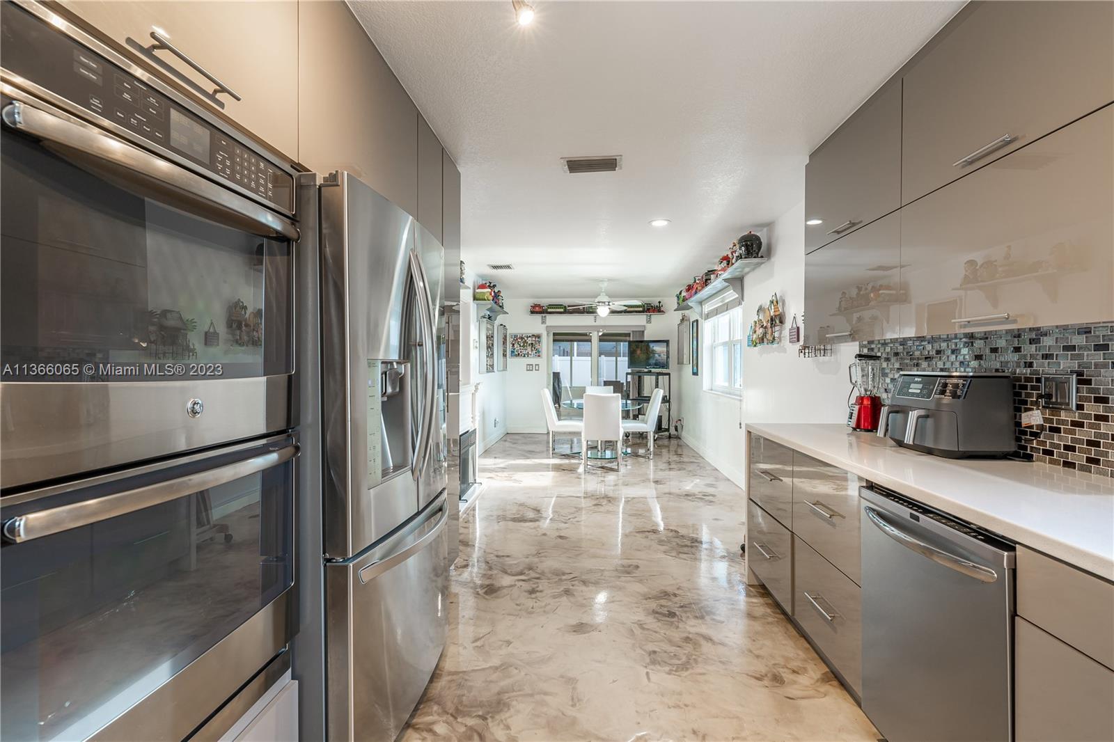 If you like to ENTERTAIN.... this ONE STORY 4 bedrooms 2 baths SINGLE FAMILY w/ Salt Water HEATED POOL & JACUZZI is for YOU!! Sitting on MORE THAN 1/4 acre, this home w/ green space, PVC FENCE, ENCLOSED FLORIDA ROOM, Sprinkler System, 2 car garage, extra freezer & GIGANTIC PAVED CIRCULAR DRIVEWAY will take your breath away! This house has it all: HURRICANE IMPACT WINDOWS AND DOORS including garage door, LARGE & MODERN KITCHEN, STAINLESS STEEL APPLIANCES with extra oven, PORCELAIN TILE in all areas except kitchen, dining & enclosed patio which has epoxy. Roof was replaced in 2012. Propane GENERATOR for all the house installed in 2018. AC was replaced in 2021. Pool Pump was replaced on 2020. Both Bathrooms have been remodeled as well. Basically OVER 12,237 sq.ft. of perfection & NO HOA!