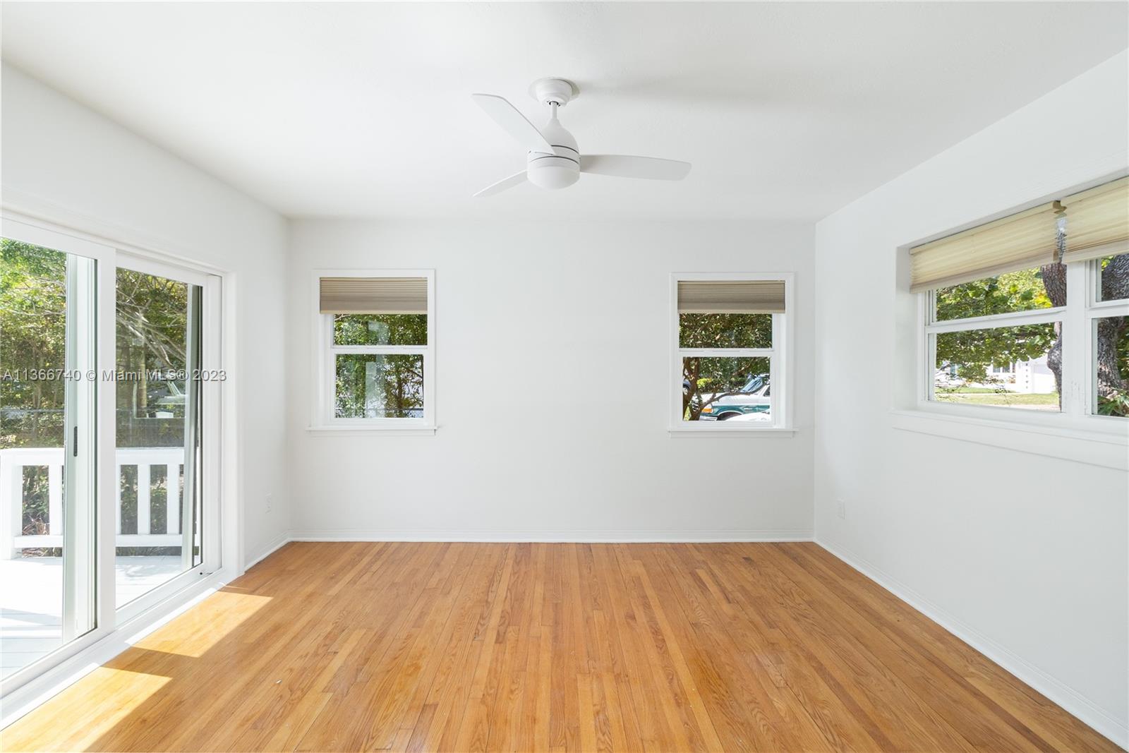 Charmingly updated 2B/2B bungalow-style home on a very quiet street and lovely Miami Shores neighborhood. Features open beamed vaulted ceilings and Oak/Terrazo floors. Open kitchen with granite and glass tile backsplash. Lots of light and garden views from every room in the house. Cozy outdoor deck with shower and a private backyard. Impact windows throughout the house. The house has a split bedroom floor plan, the front bedroom offers an on-suite bath, walk-in closet and impact doors to the outside, while the back bedroom also boasts an on-suite bath. Tenant occupied until August 30, 2023. Please call 24 hours in advance. Showings only on weekdays.