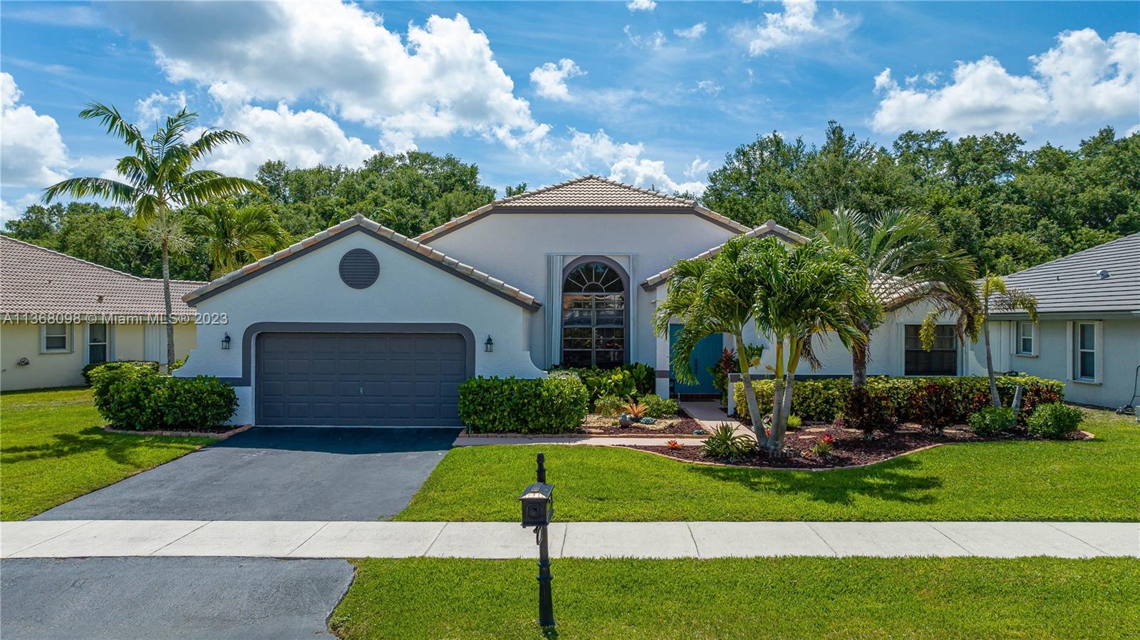 Welcome to this lovely and perfectly maintained 4 bedroom/3 bathroom/2 car garage home in Forest Ridge. This home features an updated kitchen with silestone countertops, new appliances and wood cabinets, accordion shutters throughout, completely renovated primary bathroom, updated second and third bathrooms, crown molding, new air conditioning unit, newly painted exterior, plenty of storage, walk in closets and more! You can relax in the screened-in patio which backs up to the preserve for added privacy. This community is located close to 595, shopping and is zoned for A-rated schools!!