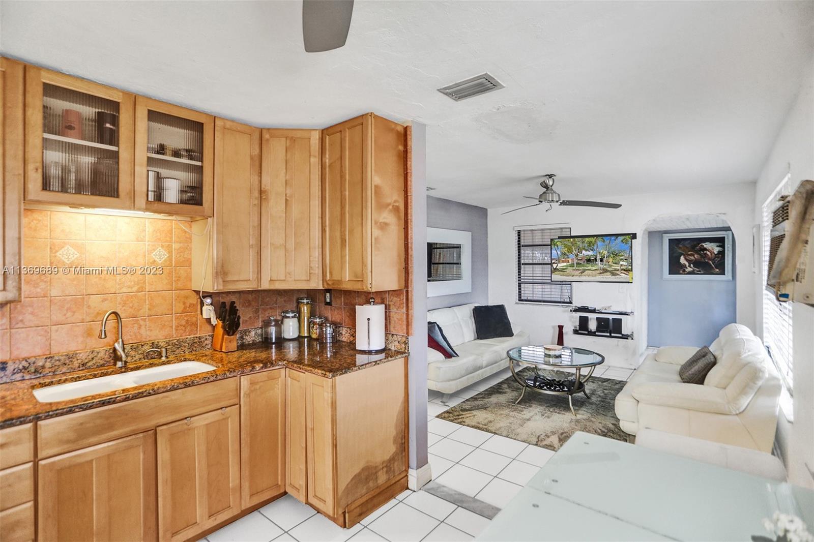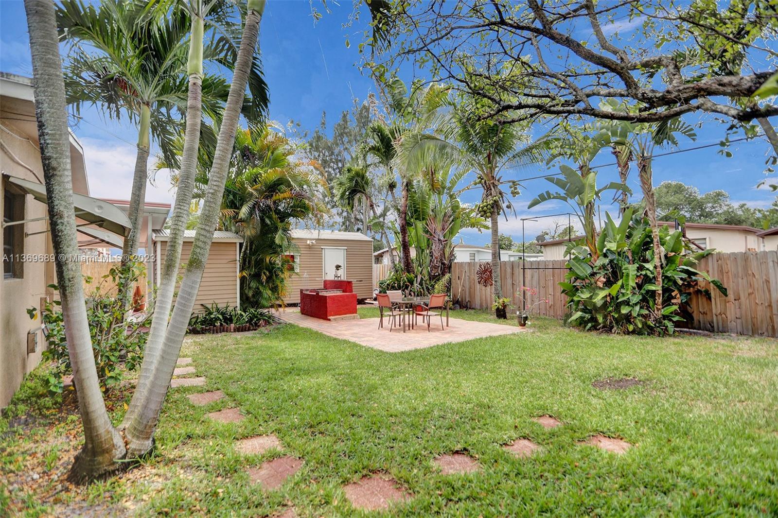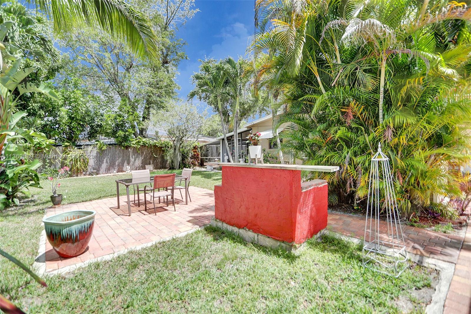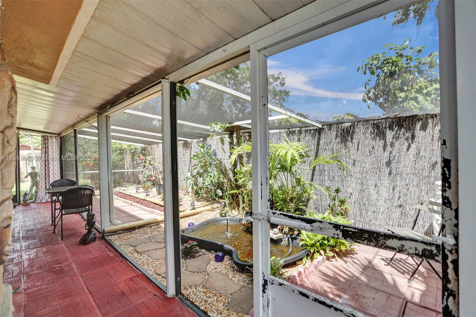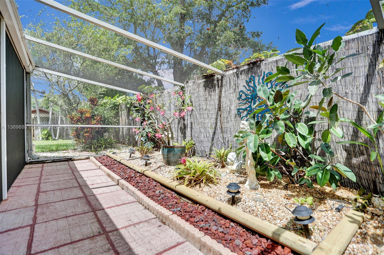 Beautifully Quaint 2 bedrooms and 1 bathroom single family home in sought after Playland Village in Davie, FL. Tile throughout the main areas of the home. Nice size living room! Kitchen has wood cabinets, granite counter tops, tile backsplash & stainless steal appliances w/eat-in kitchen area. The bedrooms are nice sizes and have carpet in them. Updated bathroom! Laundry room inside! Large covered & screened in patio that overlooks a screened in Zen garden! Fenced in front yard w/lush landscape! Lovely fenced in back yard w/brick barbeque, two sheds (one is a Man Cave) and RV hook up. No HOA! Close to all major highways, restaurants and entertainment!