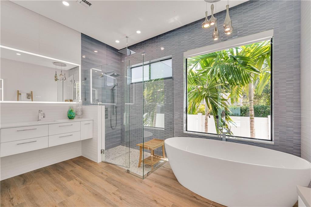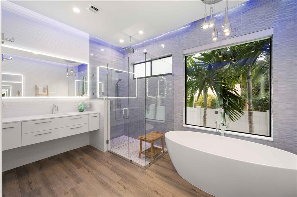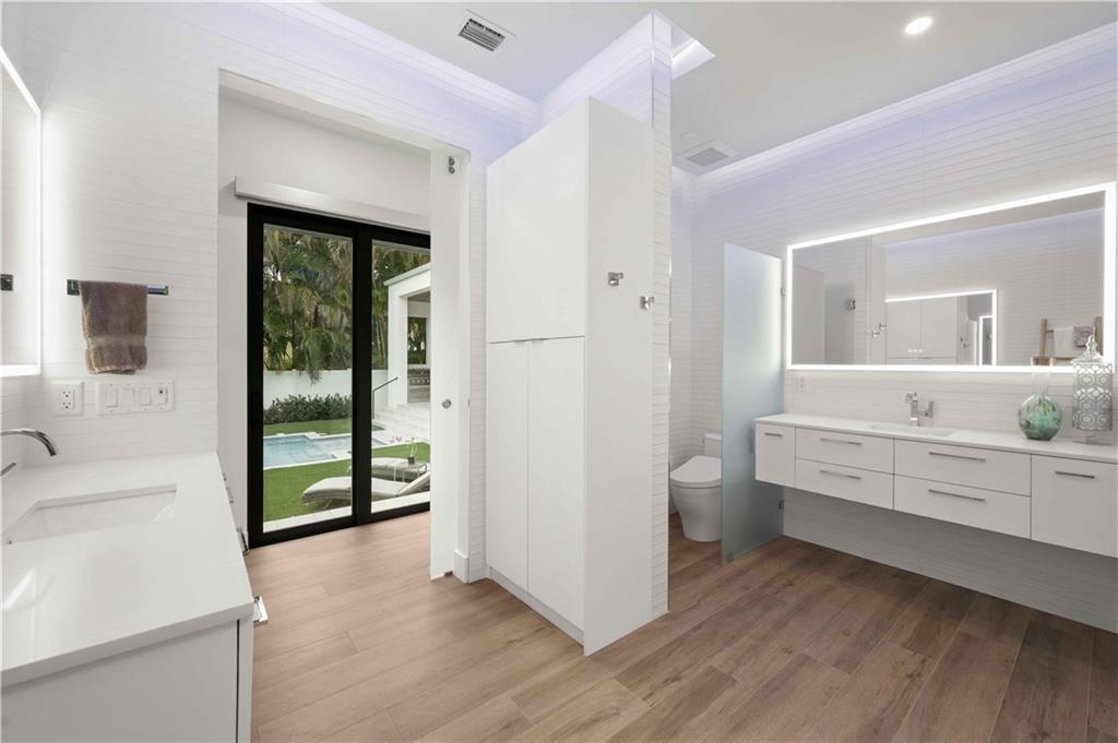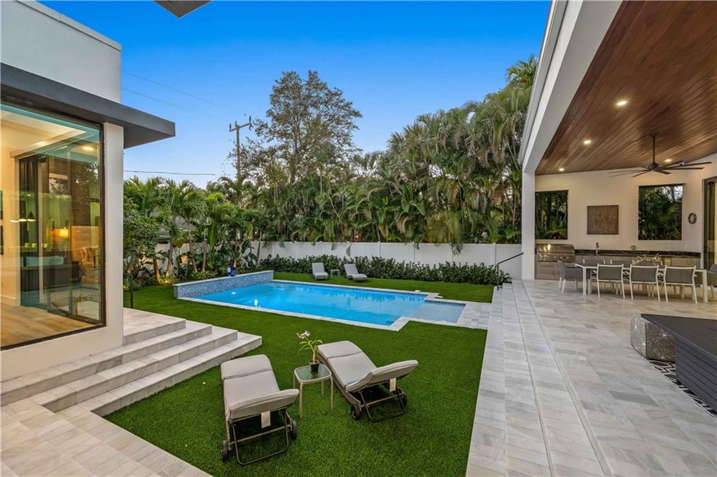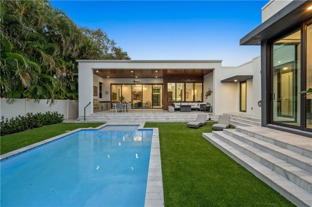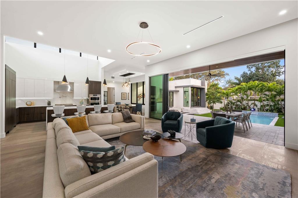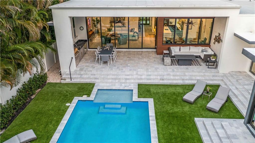 Beverly Hills chic meets tropical Zen retreat in a Rio Vista modern masterpiece! With 4BR/4BA plus a home office and over 3,300sf of living area. This new construction gem is a must see that is sure to dazzle as it offers complete Smarthome technology, 23"x47" porcelain tile flooring, impressive volume ceilings, custom electric shades, dual zoned AC, whole house gas generator and dramatic pocket impact sliding doors opening to a custom heated salt-water pool w/waterfall, autofill, automated lighting & Omni logic compatibility! Gorgeous open kitchen featuring quartz countertops/backsplash, 10' center island w/waterfall edge, under cabinetry LED lighting & Thermador appliances including a 5 burner gas range & 24 bottle wine refrigerator. Finally a home that truly does have it all!