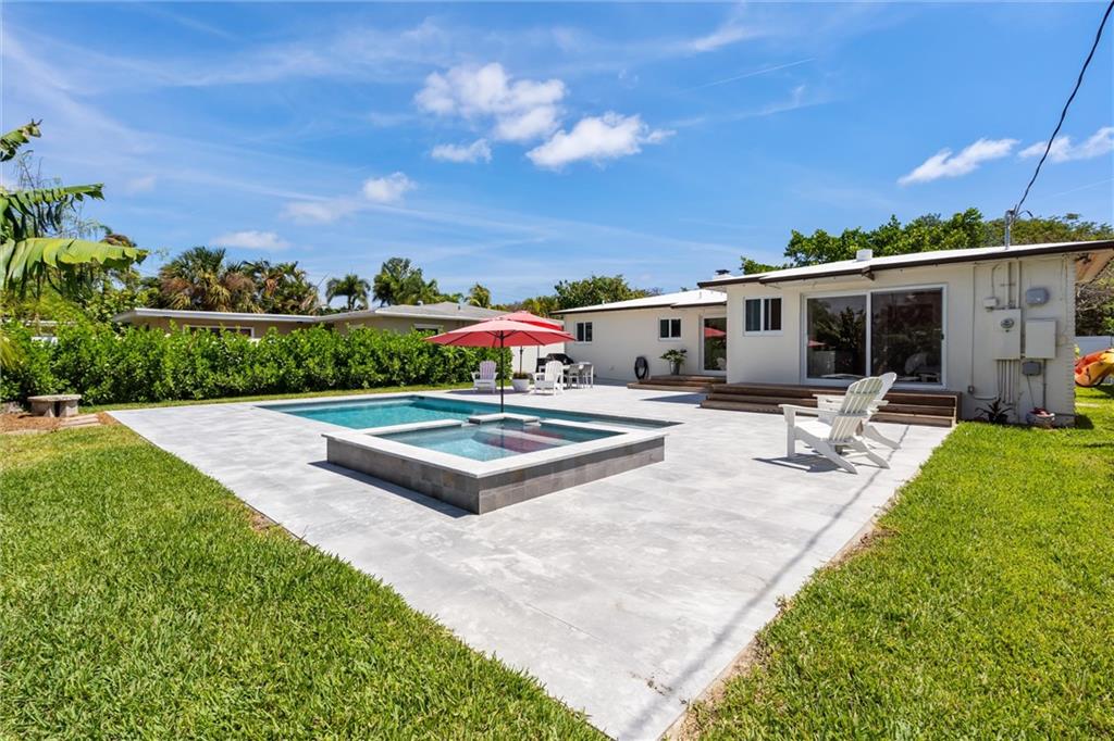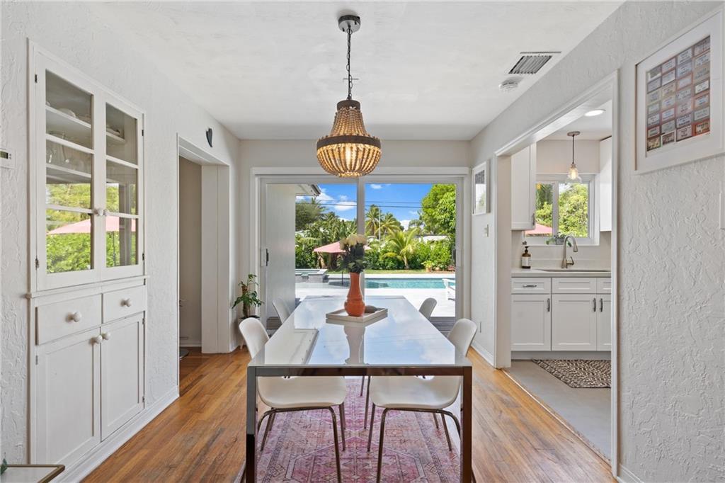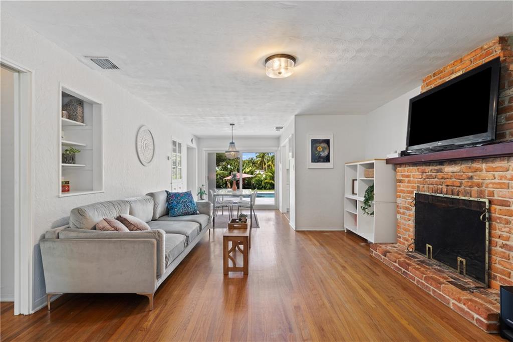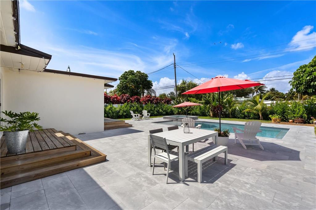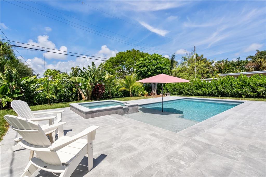 Gorgeous & completely upgraded 3 bed, 2 bath pool home in highly desirable Poinsettia Heights! Home features brand new hurricane windows & sliding glass doors w/ pool view off primary BR & dining area w/ motorized blinds. Private backyard with deep well irrigation & new PVC fence w/ 10' side gate. 1300SF sandblasted marble tile w/ NEW heated saltwater pool & spa w/ Hayward automation system. Real hardwood floors thru/out living areas & bedrooms. Spacious floor plan w/ front Florida Room & working fireplace! Updated kitchen w/ SS appl., quartz counters & newly tiled floor! Updated laundry room/office w/ new W/D and sink! Large 1-car garage w/ lots of overhead storage. Don't miss out on this beautiful home in a prime location within minutes of everything South Florida has to offer!