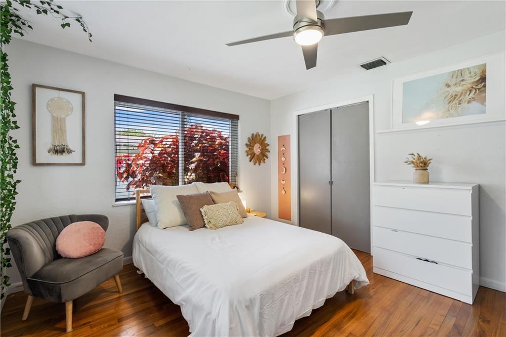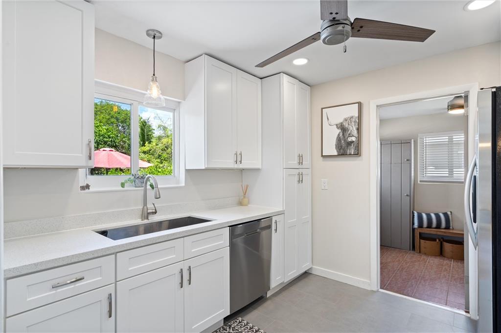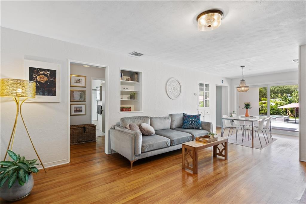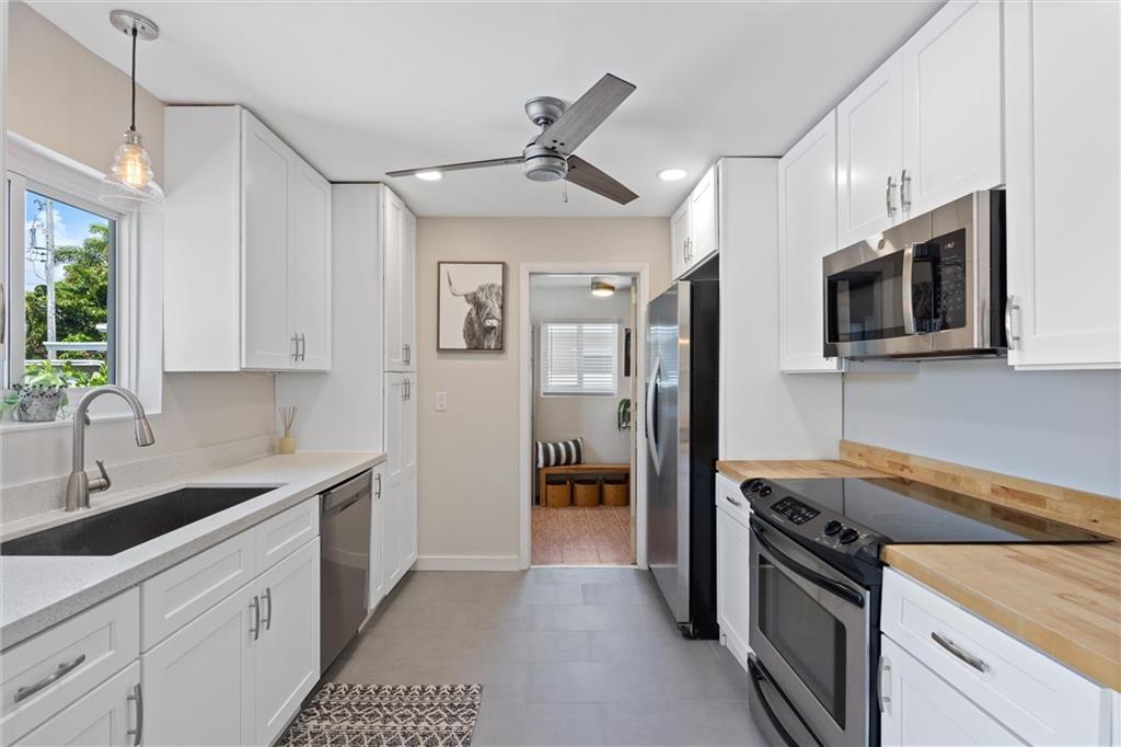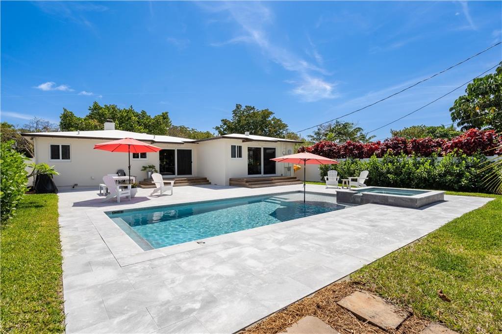 Gorgeous & completely upgraded 3 bed, 2 bath pool home in highly desirable Poinsettia Heights! Home features brand new hurricane windows & sliding glass doors w/ pool view off primary BR & dining area w/ motorized blinds. Private backyard with deep well irrigation & new PVC fence w/ 10' side gate. 1300SF sandblasted marble tile w/ NEW heated saltwater pool & spa w/ Hayward automation system. Real hardwood floors thru/out living areas & bedrooms. Spacious floor plan w/ front Florida Room & working fireplace! Updated kitchen w/ SS appl., quartz counters & newly tiled floor! Updated laundry room/office w/ new W/D and sink! Large 1-car garage w/ lots of overhead storage. Don't miss out on this beautiful home in a prime location within minutes of everything South Florida has to offer!