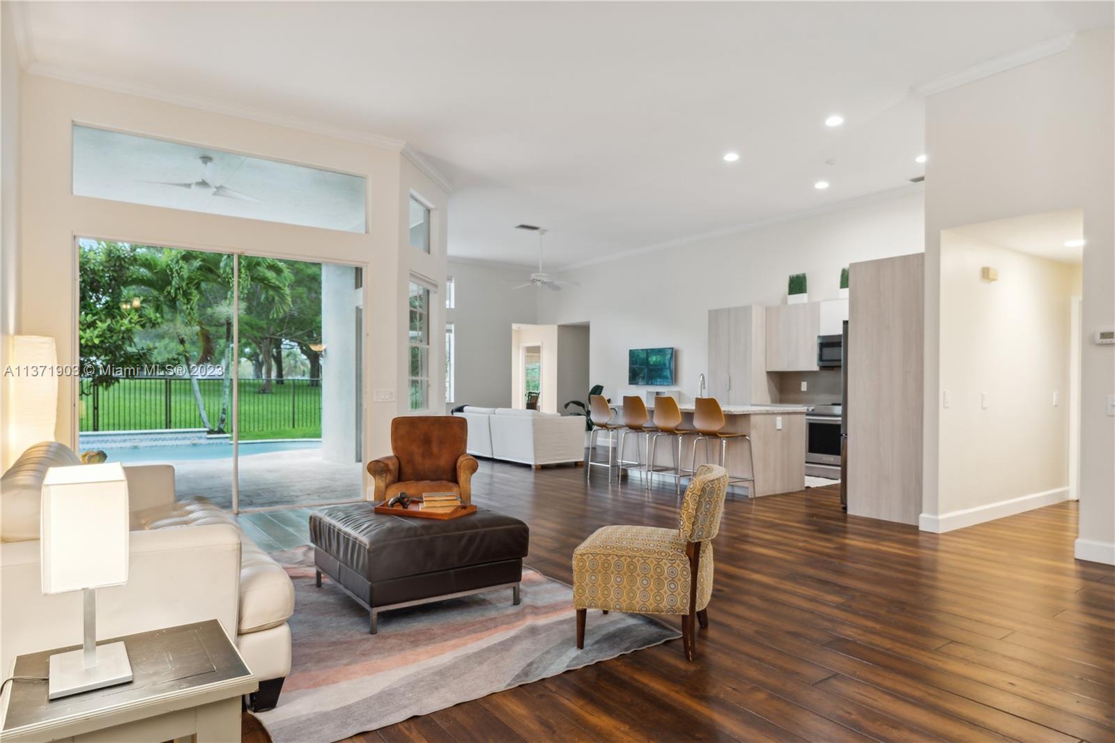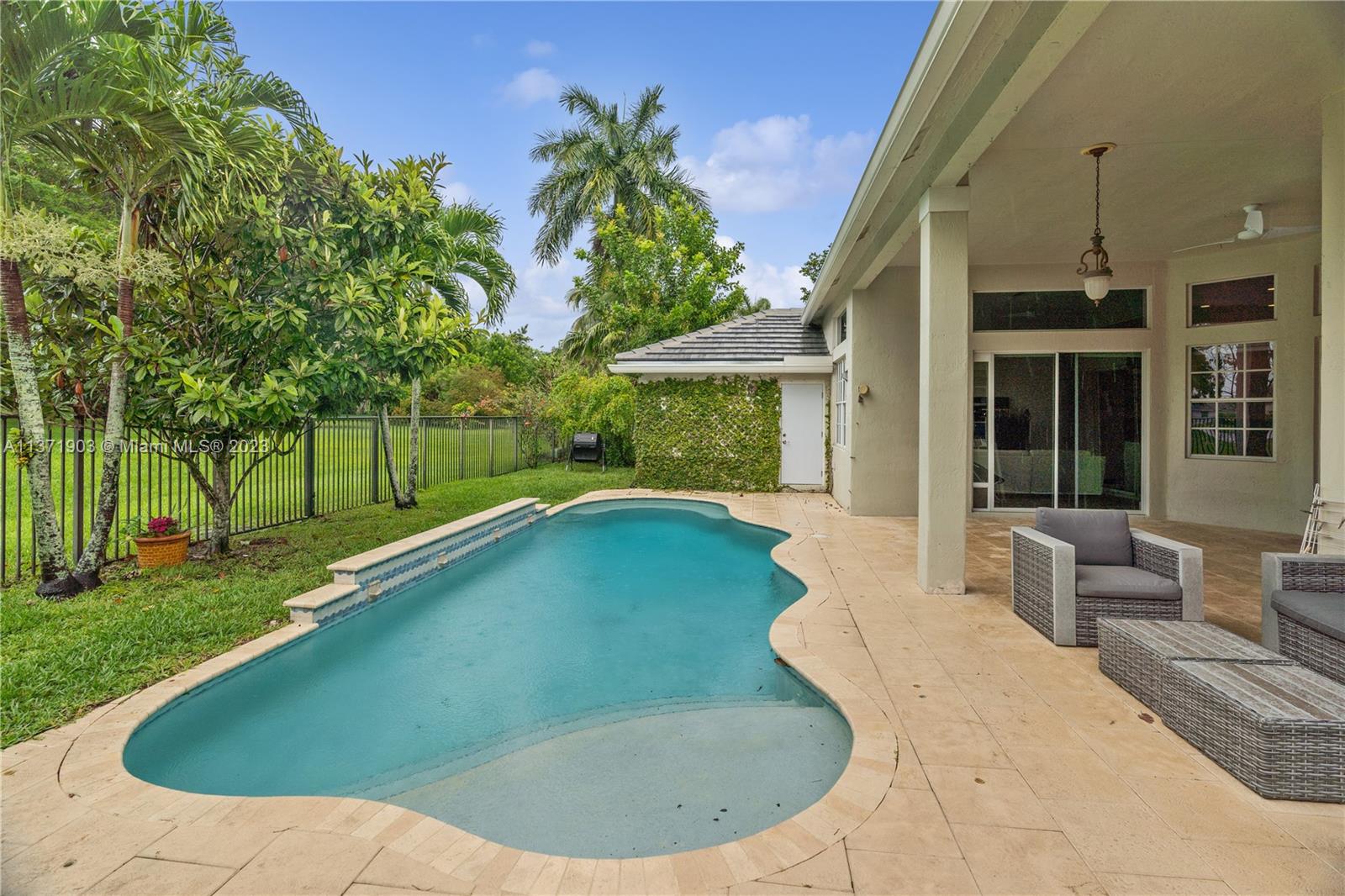 WESTON HILLS COUNTRY CLUB living at its finest. Located on a very unique lot with an expansive and private green space covering several acres directly in your backyard. This beautiful home is bright and fresh with lots of natural light. Open concept flows throughout living areas w/crown molding and 11' ceilings. Spacious Master w/attached sitting area opens to the patio and freeform pool. Triple-split floor plan offers private space for everyone. Kitchen has sleek, modern cabinetry and large island for casual dining. Beautiful wood floors create a warm feel. The Oakbrook neighborhood features a playground, volleyball court, basketball court, sidewalks, and stately oak trees. All schools are consistently "A-rated," helping make Weston an award-winning city. Come live the Weston lifestyle!