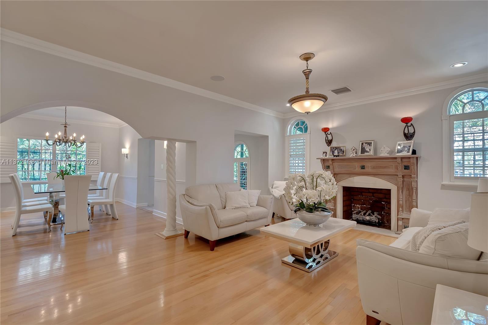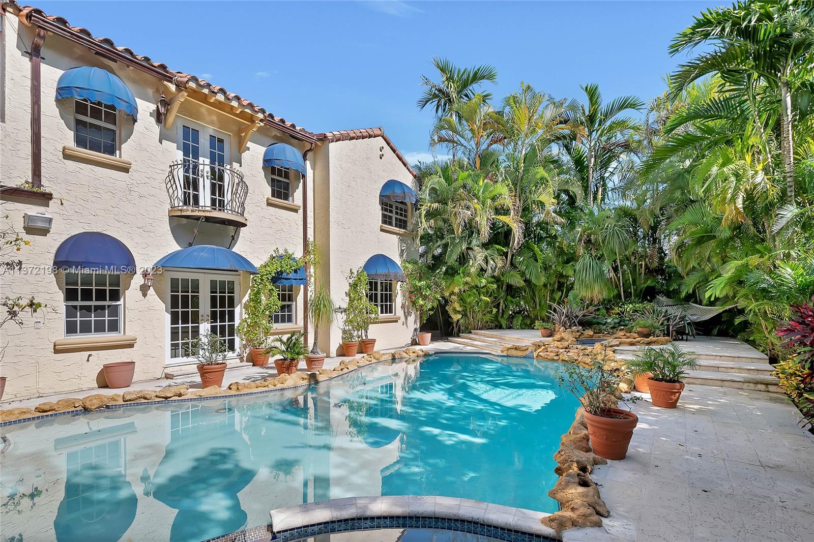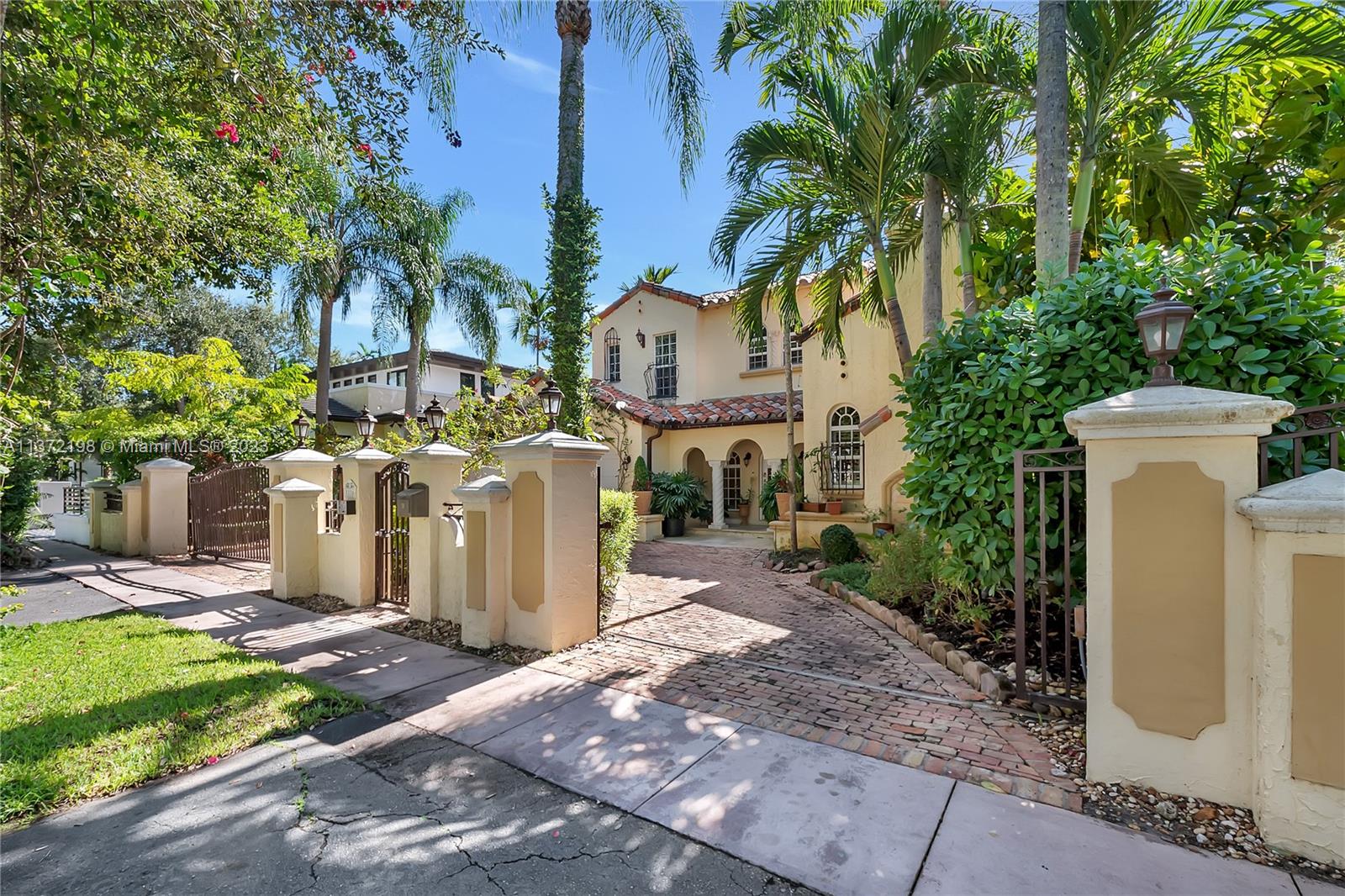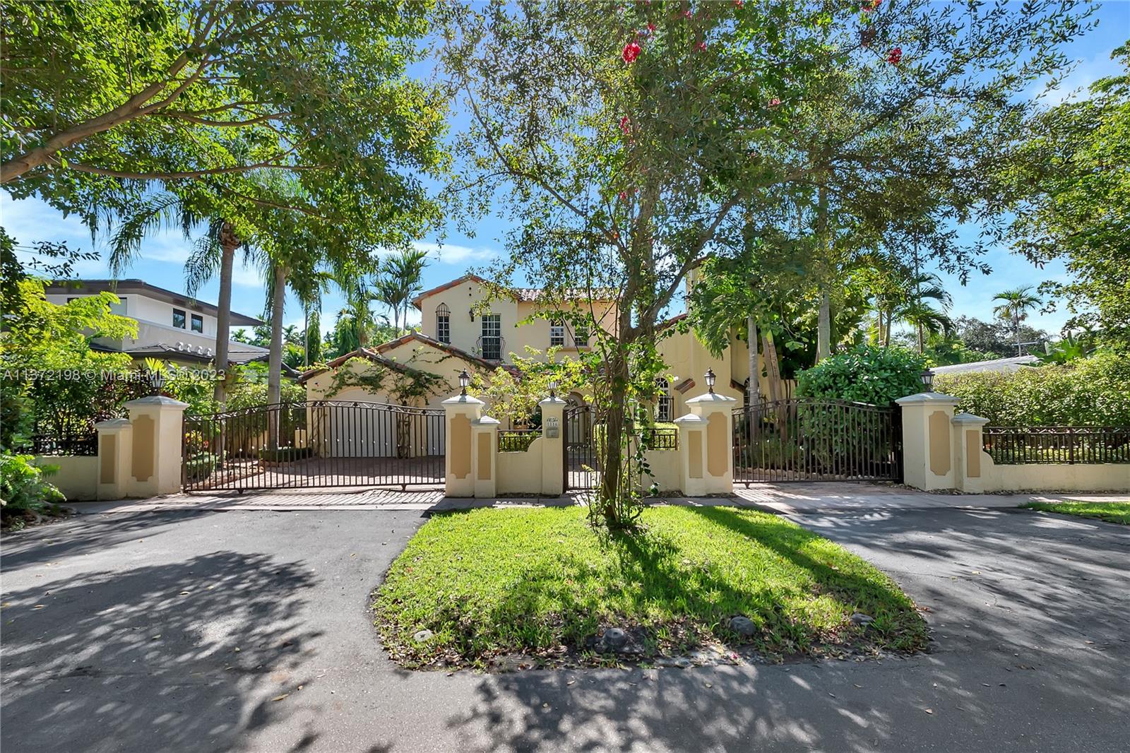 Stunning, classic Spanish style home built in 1923, renovated & move-in ready. 5 bdrm/ 3.5 bath home, on a 11,250 sq ft lot, on the quintessential Asturia Av in Coral Gables. Beautiful architectural details. Many entertaining areas incl. formal living w/ fireplace, formal dining, sunroom & charming interior courtyard. Fantastic chef’s kitchen w/ center island, granite counters, wood cabinetry, gas stove. Spacious family rm. 3 bdrms up incl. grand primary suite w/ fireplace, marble bath, terrace w/ seating. 1 ensuite bdrm down, perfect for guests. Relax under the shade on one of many covered patios surrounding the pool & heated jacuzzi. Lush landscaping. Gated, brick paver circular driveway. 2 car garage. Full home generator. Impact windows/doors. Only 1 block from Granada Golf Course.