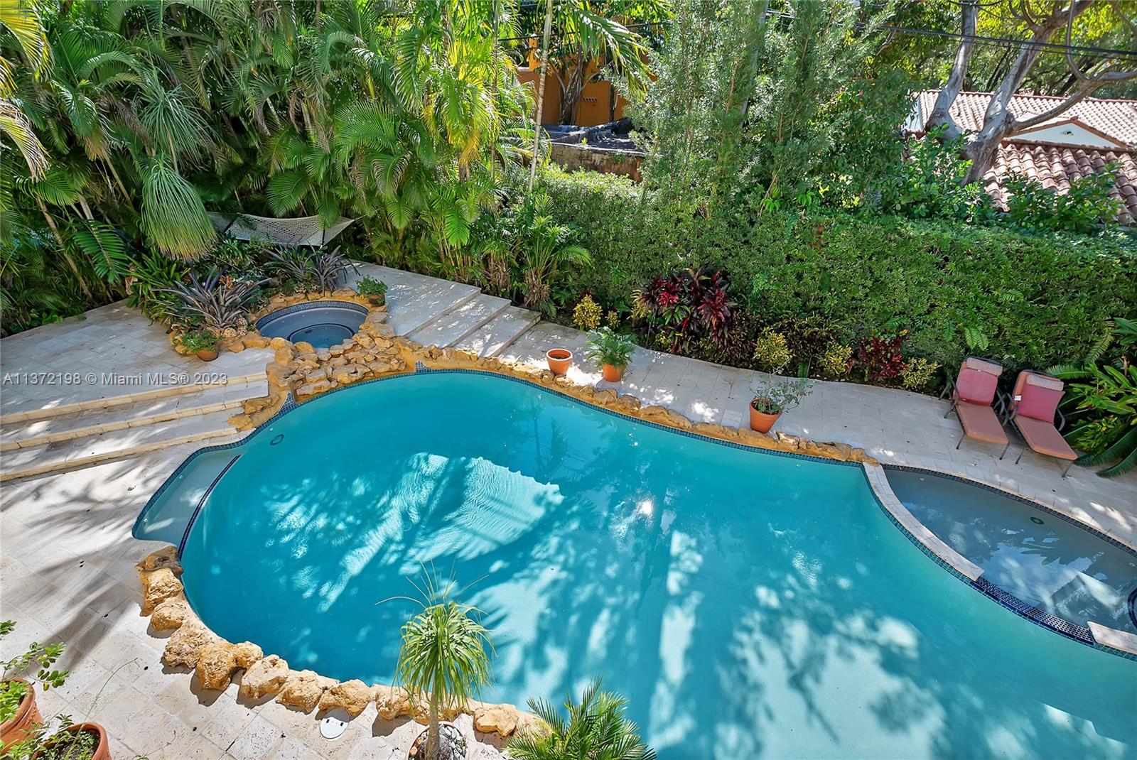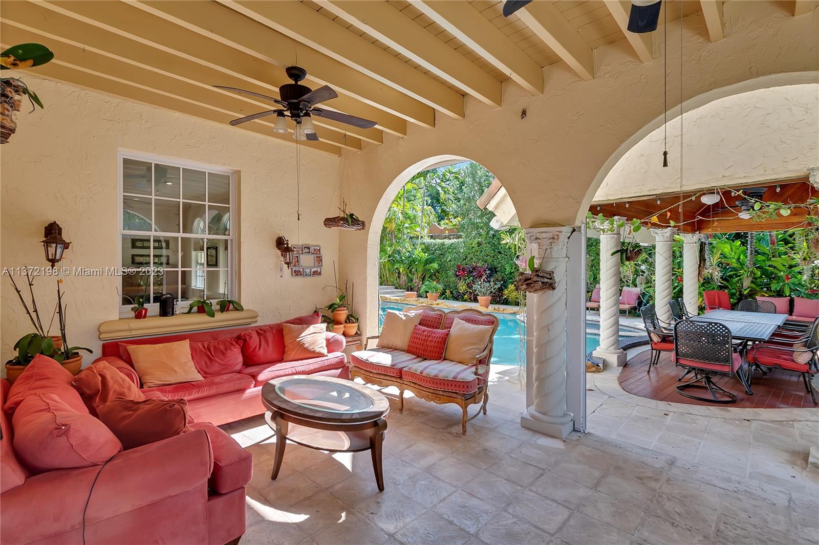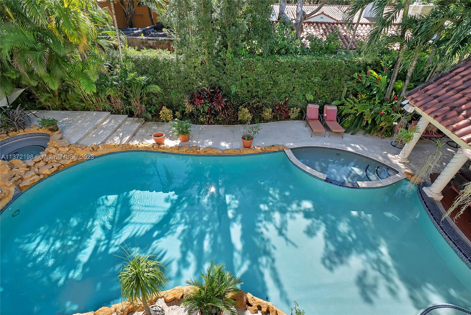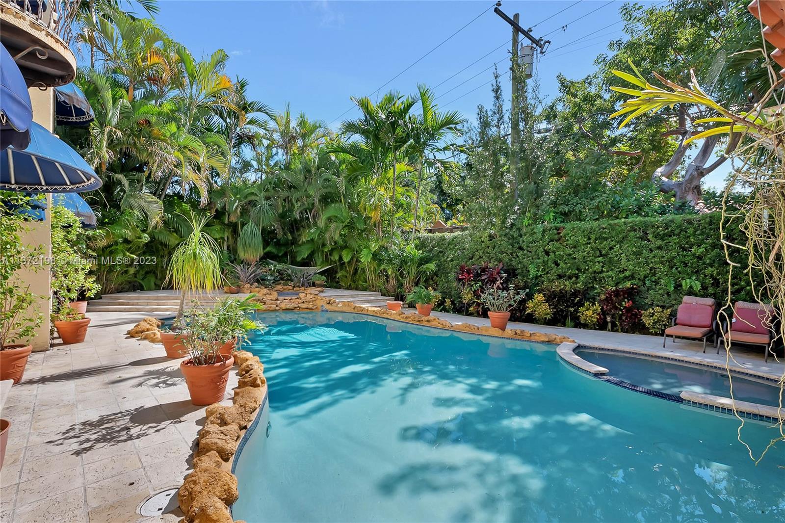 Stunning, classic Spanish style home built in 1923, renovated & move-in ready. 5 bdrm/ 3.5 bath home, on a 11,250 sq ft lot, on the quintessential Asturia Av in Coral Gables. Beautiful architectural details. Many entertaining areas incl. formal living w/ fireplace, formal dining, sunroom & charming interior courtyard. Fantastic chef’s kitchen w/ center island, granite counters, wood cabinetry, gas stove. Spacious family rm. 3 bdrms up incl. grand primary suite w/ fireplace, marble bath, terrace w/ seating. 1 ensuite bdrm down, perfect for guests. Relax under the shade on one of many covered patios surrounding the pool & heated jacuzzi. Lush landscaping. Gated, brick paver circular driveway. 2 car garage. Full home generator. Impact windows/doors. Only 1 block from Granada Golf Course.