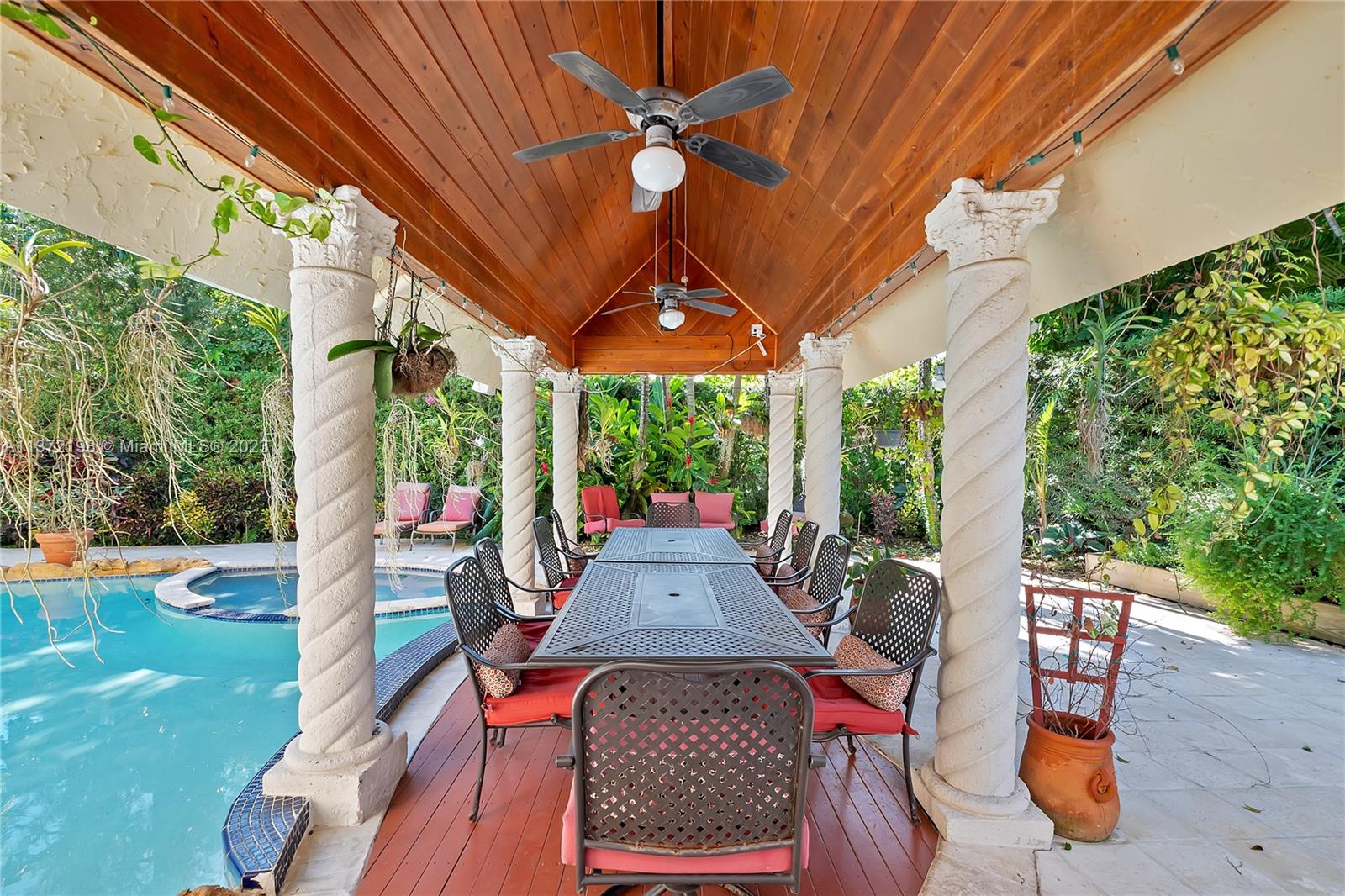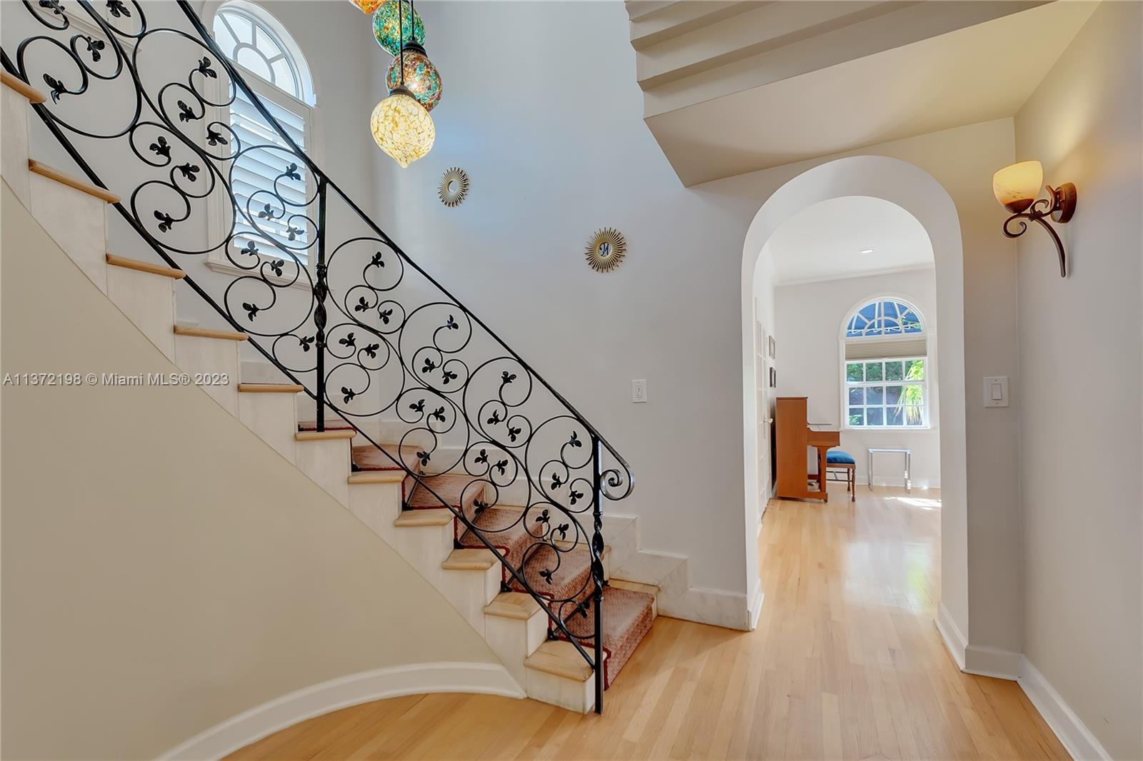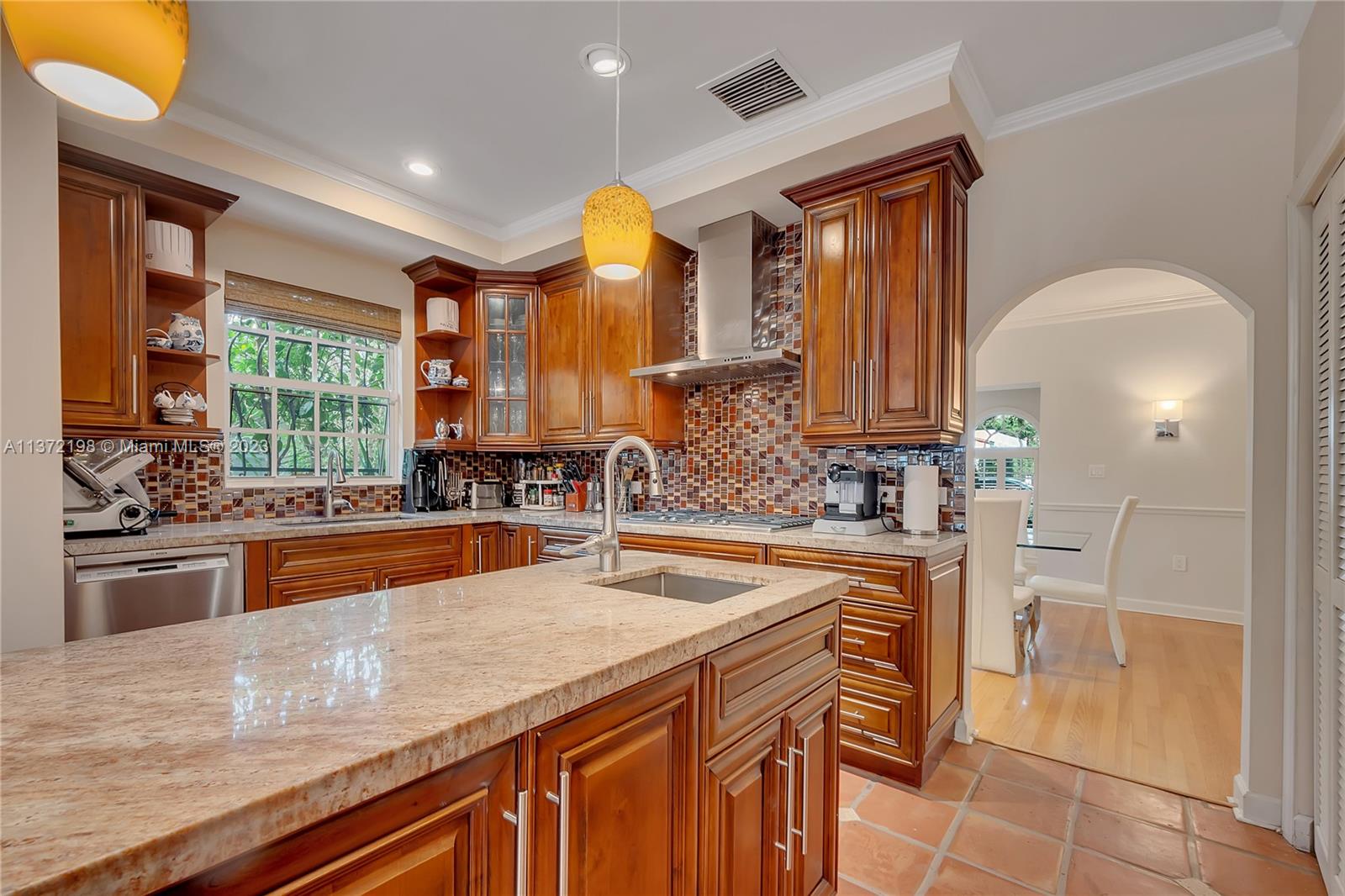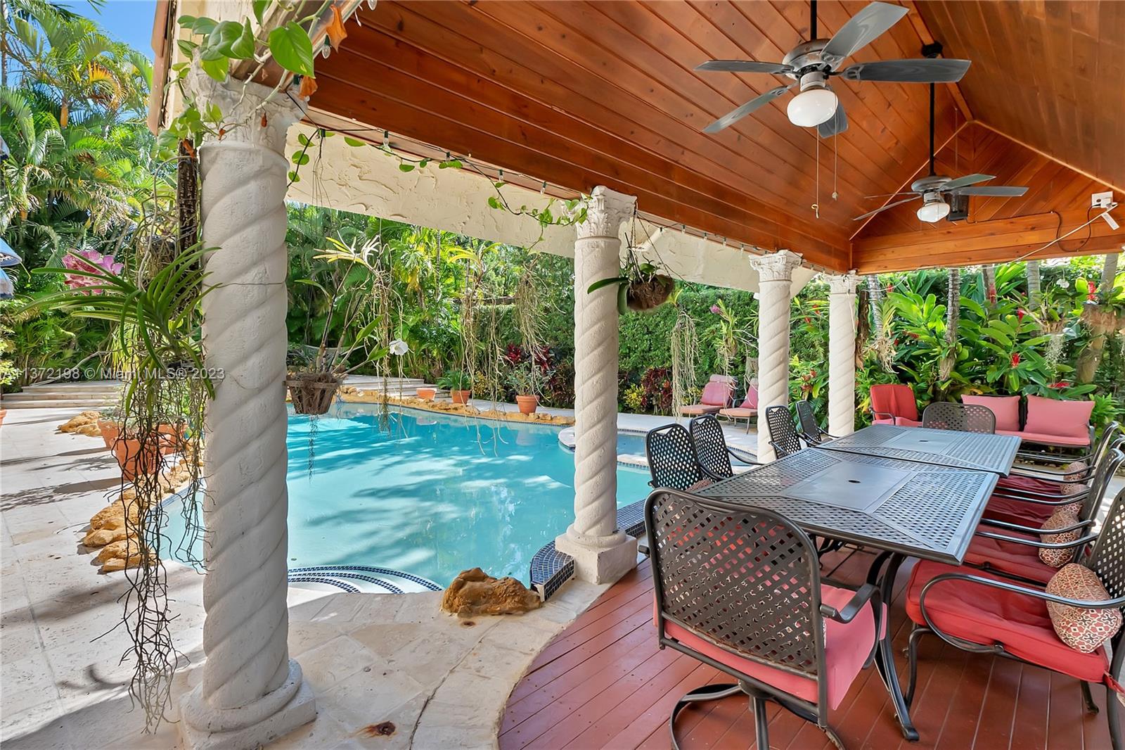 Stunning, classic Spanish style home built in 1923, renovated & move-in ready. 5 bdrm/ 3.5 bath home, on a 11,250 sq ft lot, on the quintessential Asturia Av in Coral Gables. Beautiful architectural details. Many entertaining areas incl. formal living w/ fireplace, formal dining, sunroom & charming interior courtyard. Fantastic chef’s kitchen w/ center island, granite counters, wood cabinetry, gas stove. Spacious family rm. 3 bdrms up incl. grand primary suite w/ fireplace, marble bath, terrace w/ seating. 1 ensuite bdrm down, perfect for guests. Relax under the shade on one of many covered patios surrounding the pool & heated jacuzzi. Lush landscaping. Gated, brick paver circular driveway. 2 car garage. Full home generator. Impact windows/doors. Only 1 block from Granada Golf Course.