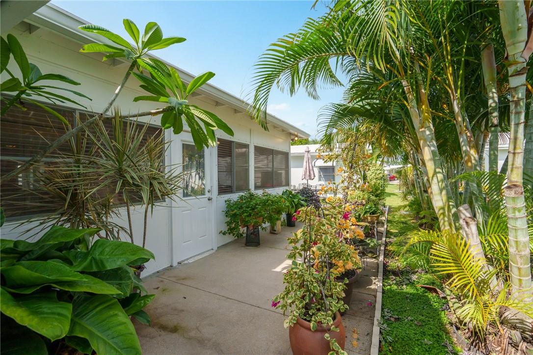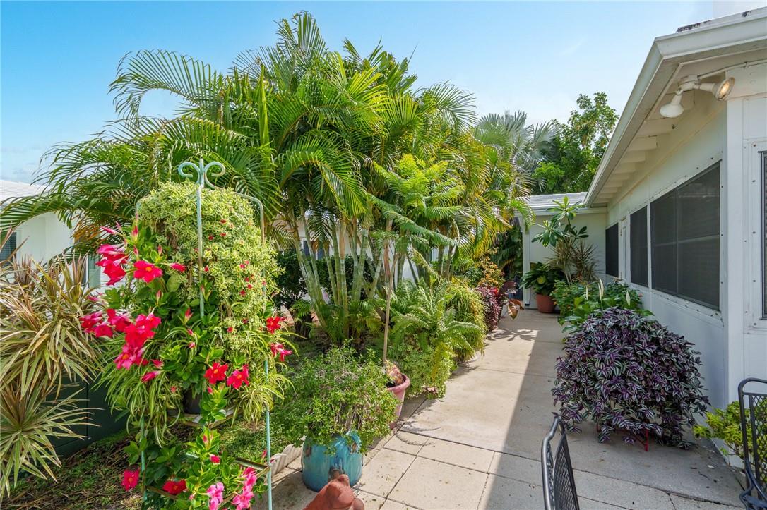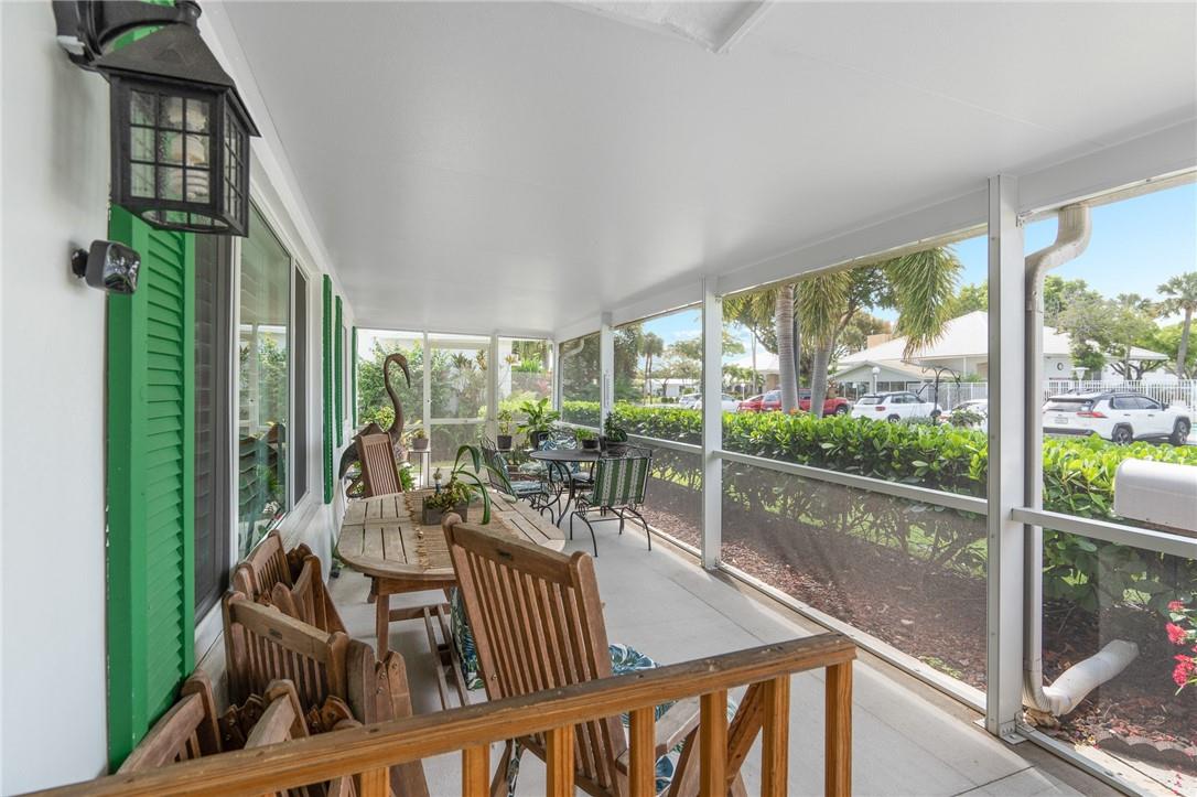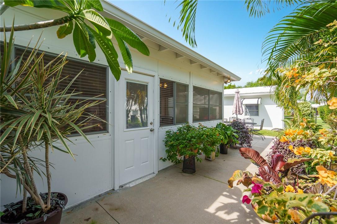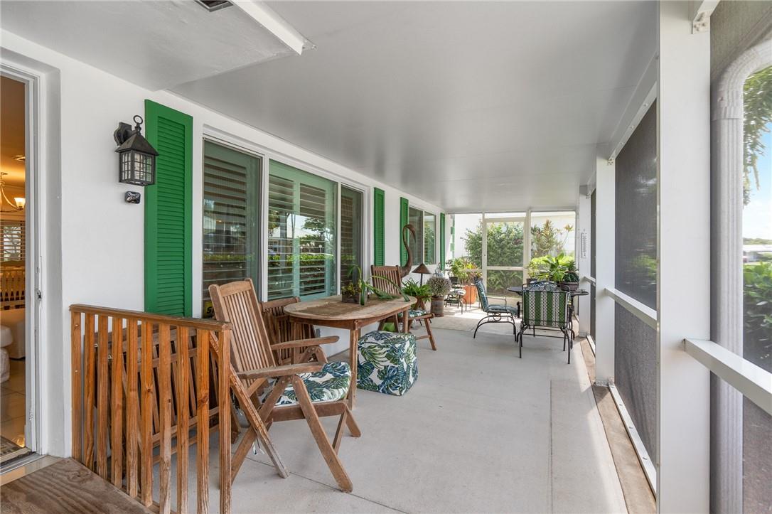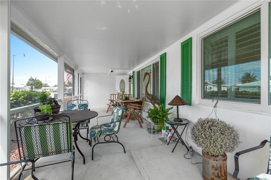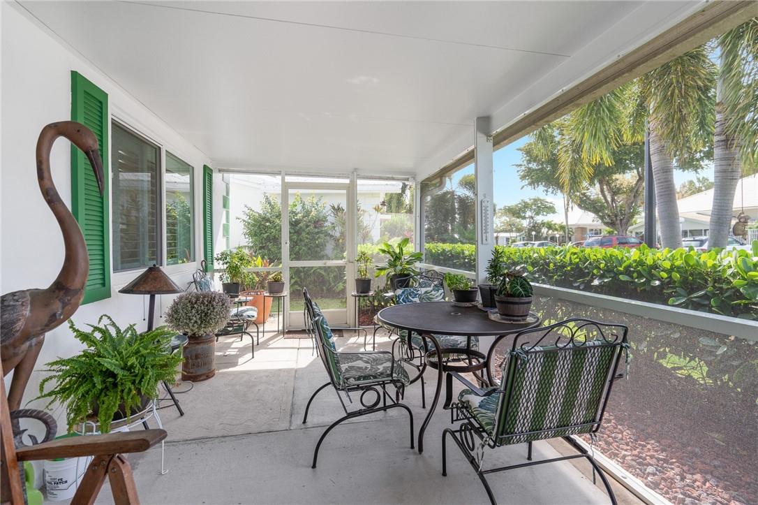 Tropical landscaping surrounds this beautifully remodeled 2/2 w garage,10'x30 att. screened front porch & patio area perfect for entertaining &relaxing. Great location situated steps from clubhouse & community pool. Updated throughout featuring kitchen cabinets & granite counters, stainless steel appliances. Bathroom vanities feature granite tops, tiled bathroom walls and showers.24" porcelain tile throughout living area + crown molding & plantation shutters. Spacious Florida room. Hurricane windows & doors throughout, new electrical panel, A/C 2016. W/H 2020. 55+golf community amenities include 2 pools, house painting, courtesy bus, water/sewer, landscaping and lots more. Monthly Assoc. fee $274. $350 application fee. One time capital contribution $200. Minimum credit score $700.