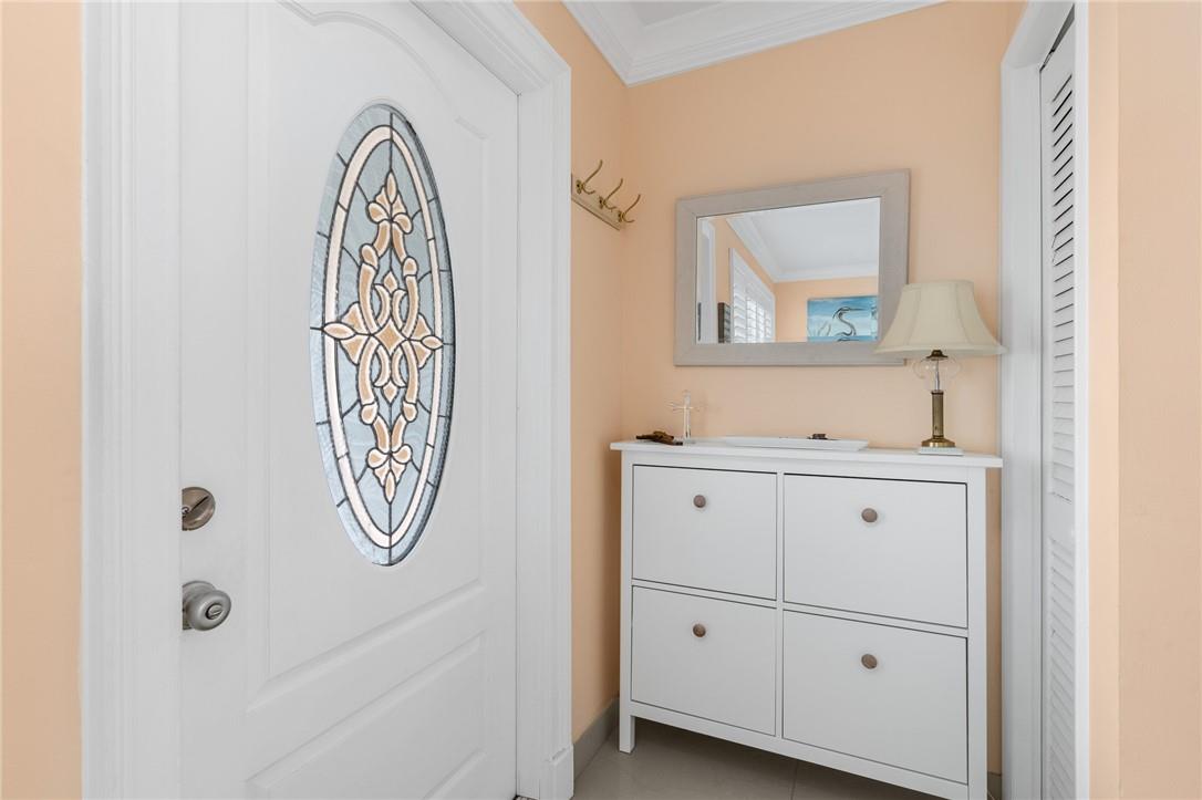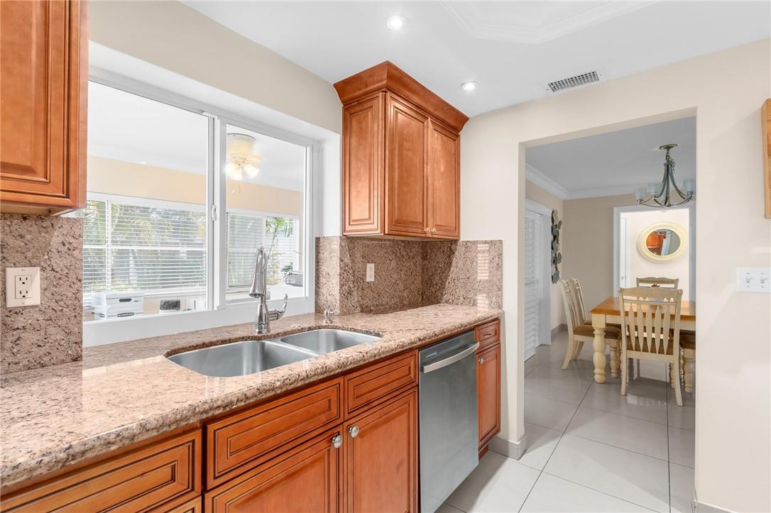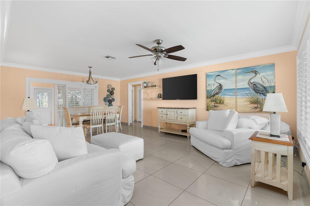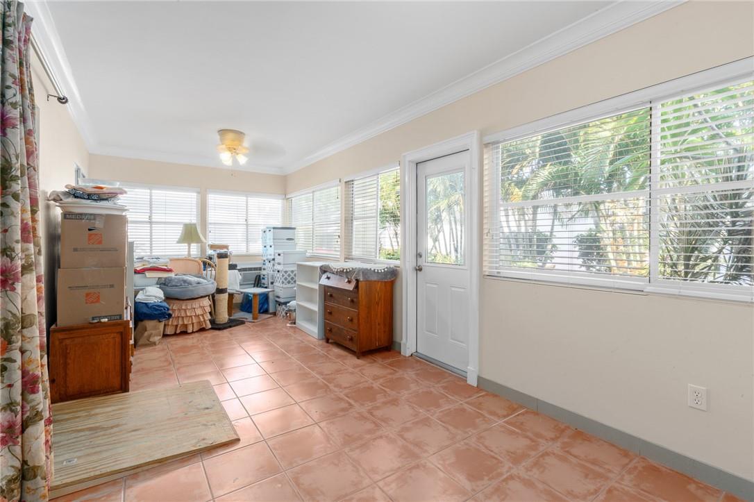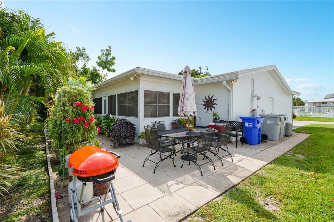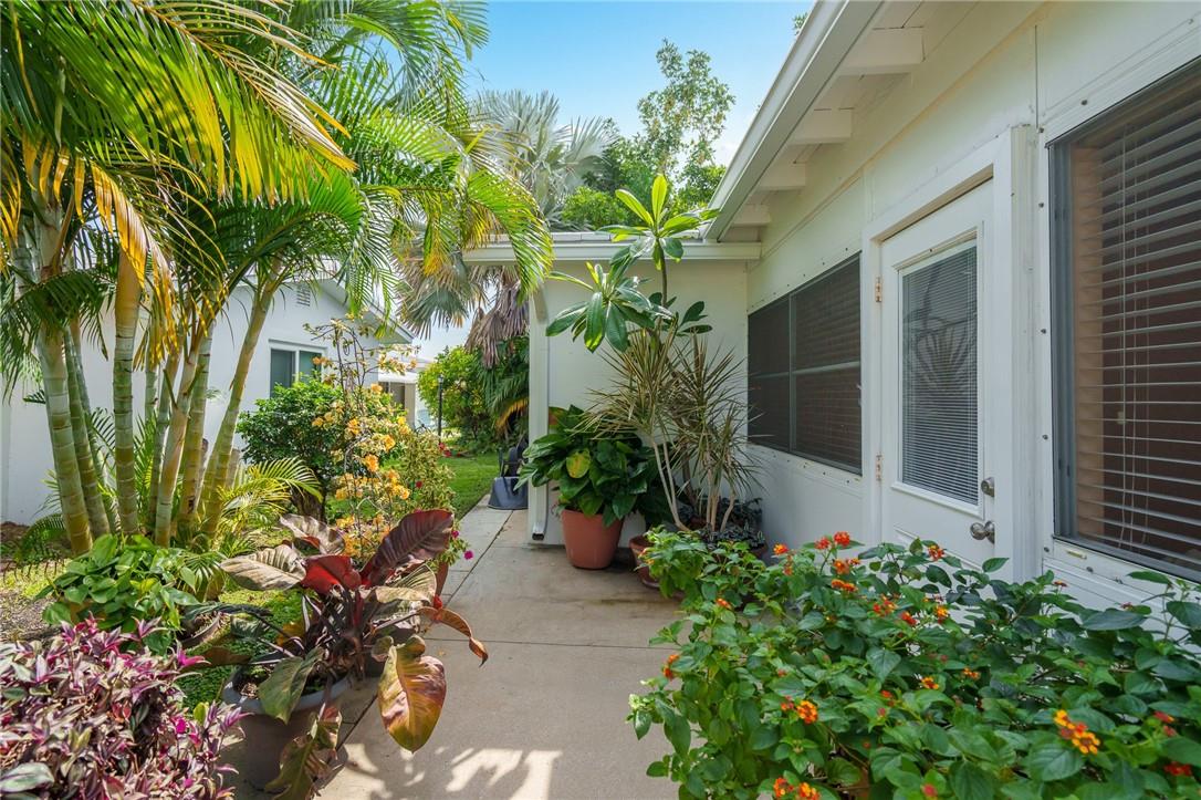Tropical landscaping surrounds this beautifully remodeled 2/2 w garage,10'x30 att. screened front porch & patio area perfect for entertaining &relaxing. Great location situated steps from clubhouse & community pool. Updated throughout featuring kitchen cabinets & granite counters, stainless steel appliances. Bathroom vanities feature granite tops, tiled bathroom walls and showers.24" porcelain tile throughout living area + crown molding & plantation shutters. Spacious Florida room. Hurricane windows & doors throughout, new electrical panel, A/C 2016. W/H 2020. 55+golf community amenities include 2 pools, house painting, courtesy bus, water/sewer, landscaping and lots more. Monthly Assoc. fee $274. $350 application fee. One time capital contribution $200. Minimum credit score $700.