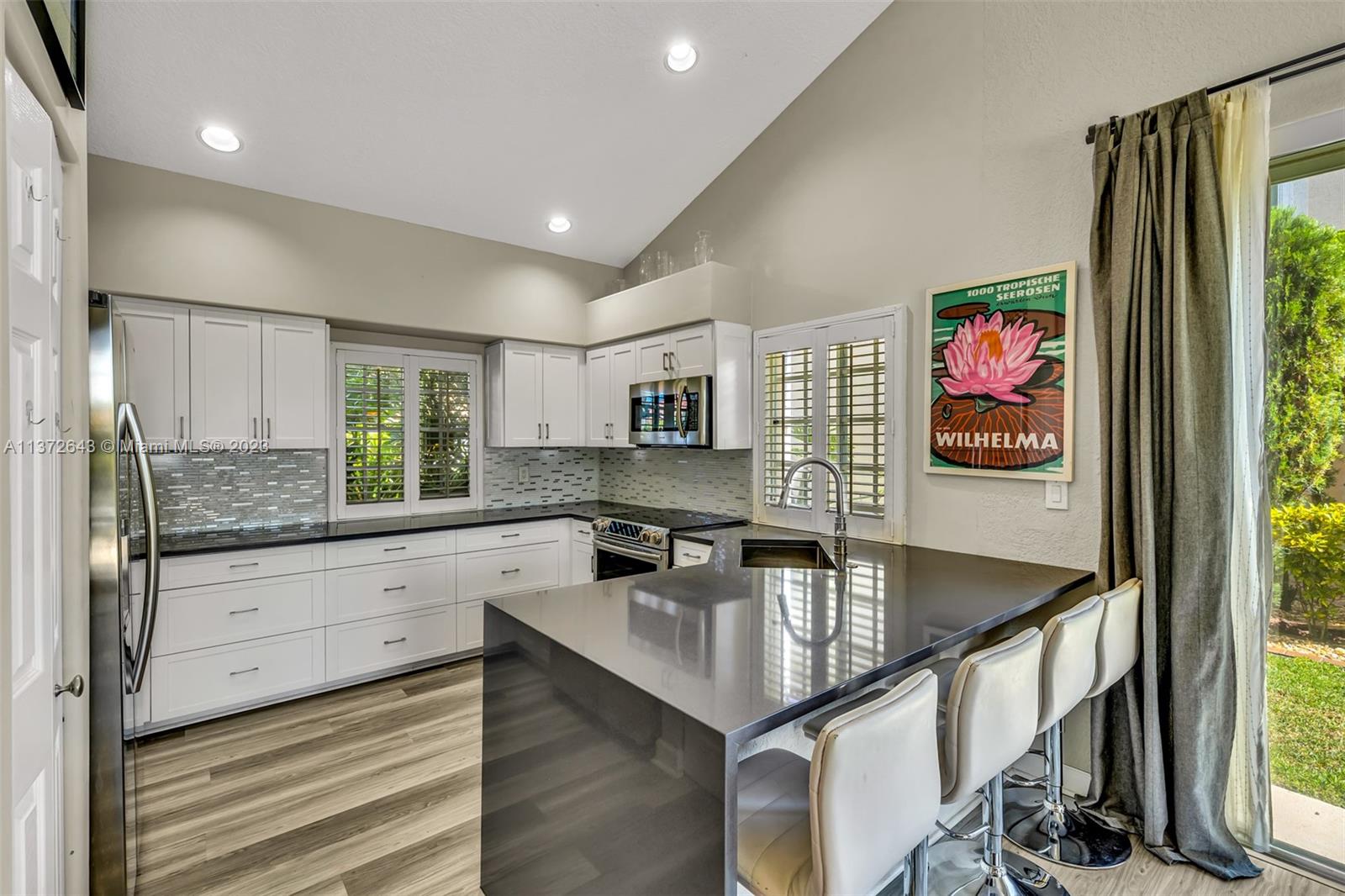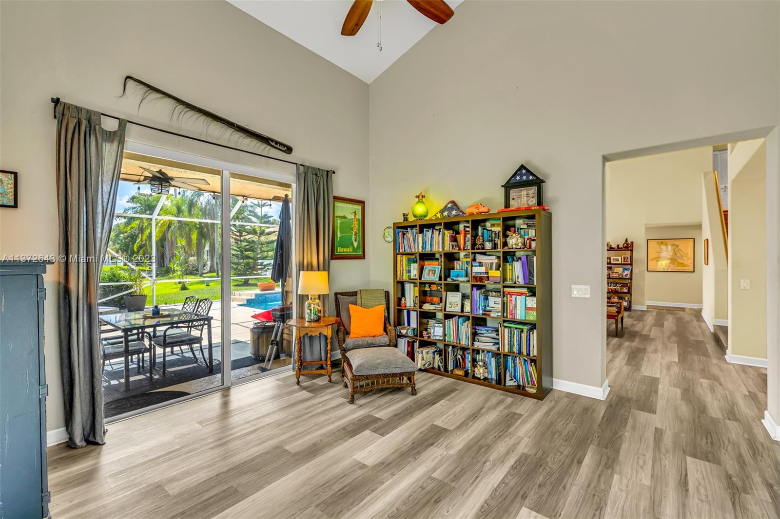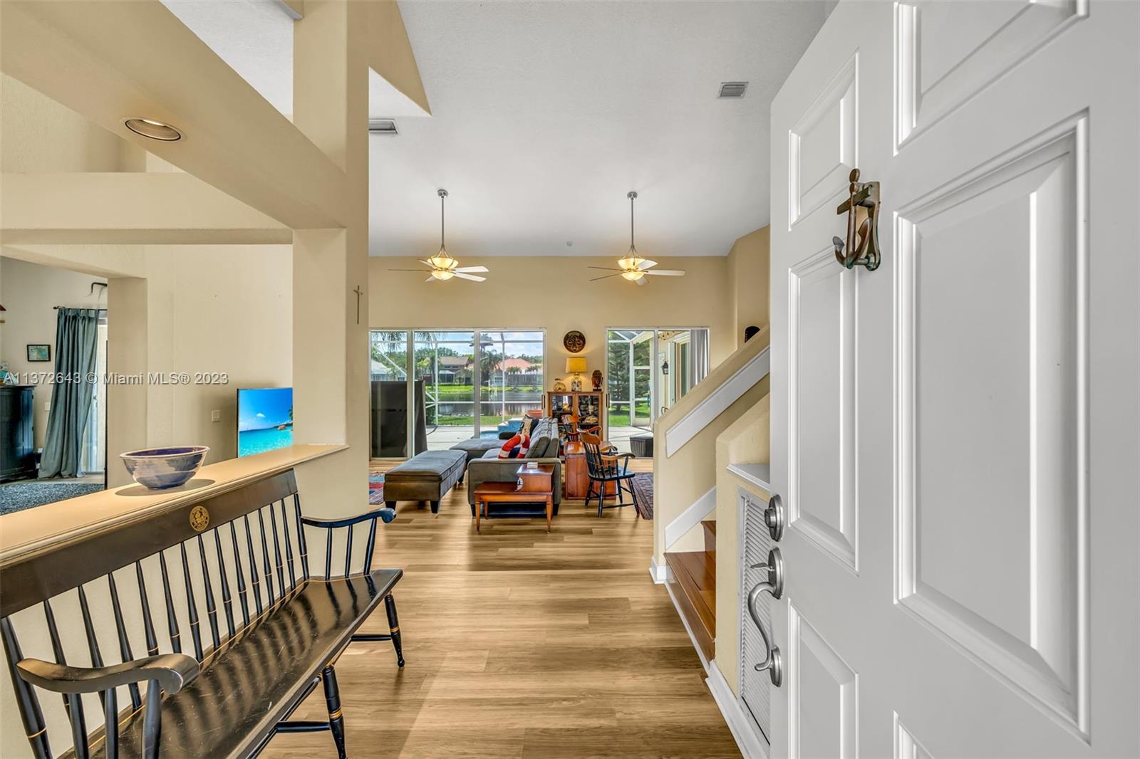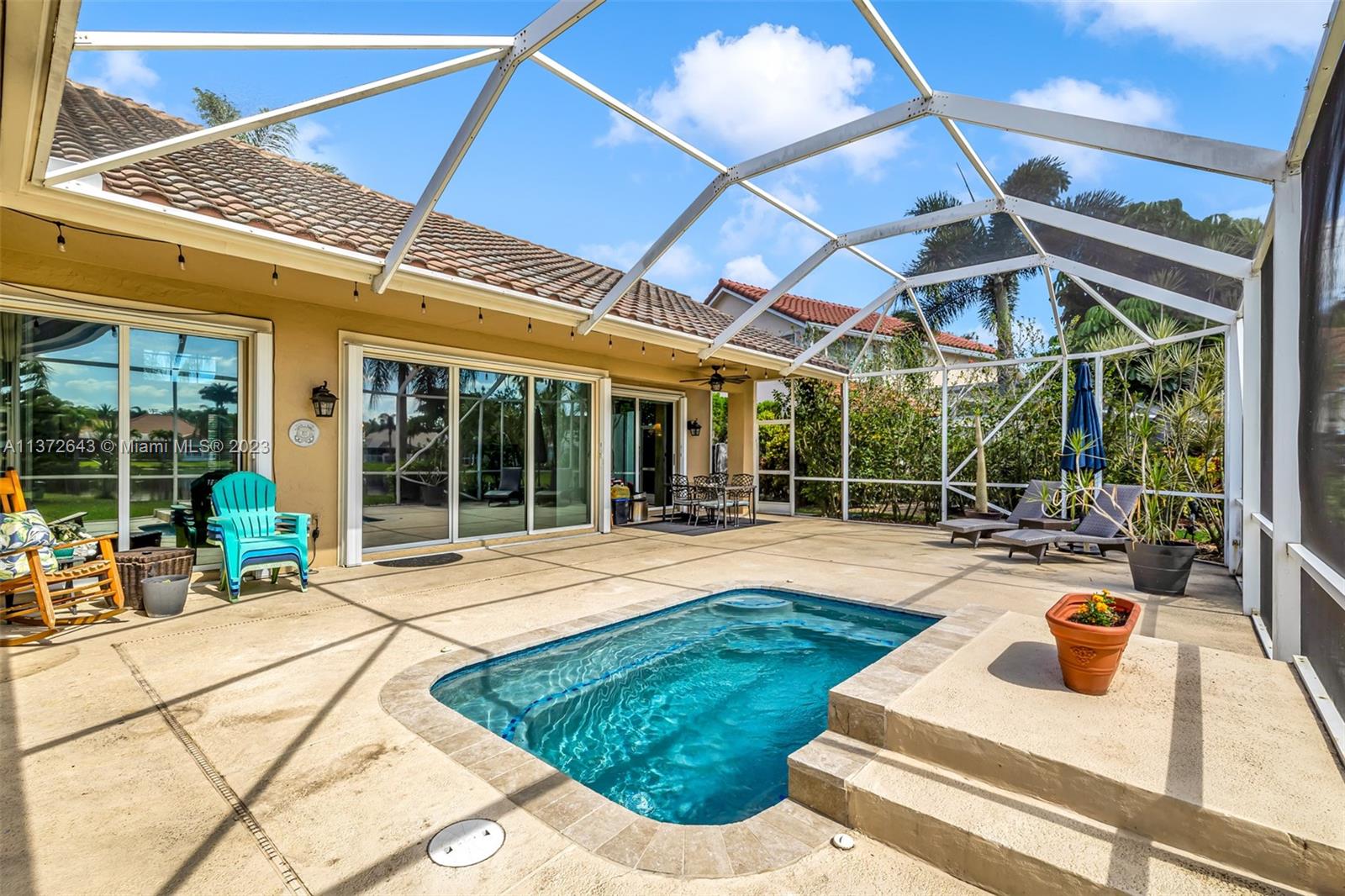 This distinctly cozy home welcomes you with a sizable & homey environment in a beautiful setting. Offering an excellent layout with high ceilings & wrap-around sliding patio doors in the lower level, incorporating light & the outdoors. New lower level flooring, formal dining with access to courtyard, comfortable kitchen w/ beautiful cabinetry, quartz counters & plenty of storage options. Primary suite w/ ample closet space. The large en-suite bathroom also serves as cabana bath. Upstairs features real hardwood flooring, 3 Br's + bath. Updated A/C & electric panel, garage door & accordion shutters. Relax in the privacy of your screened lanai & heated pool/spa w gorgeous views. Laguna Springs is a hidden gem of just 106 homes, ideally situated, steps from schools, parks & places of worship.