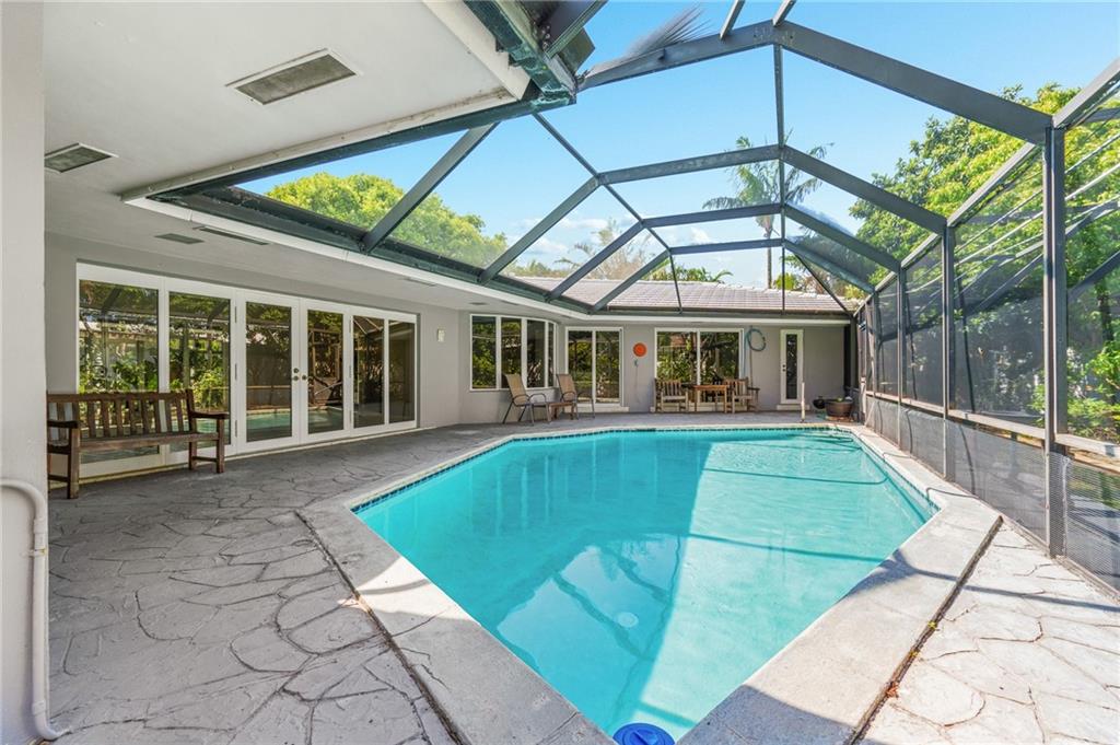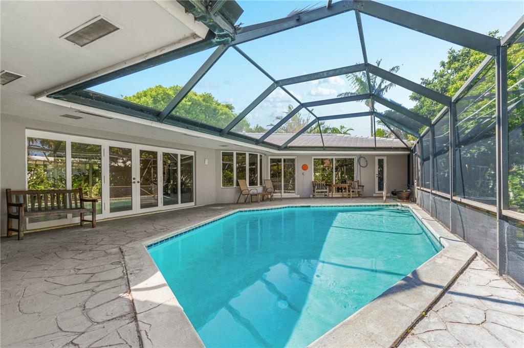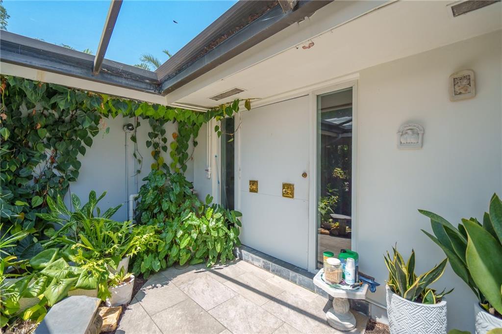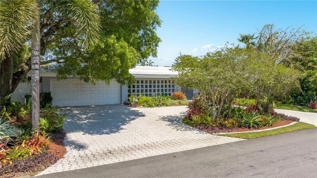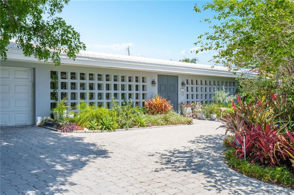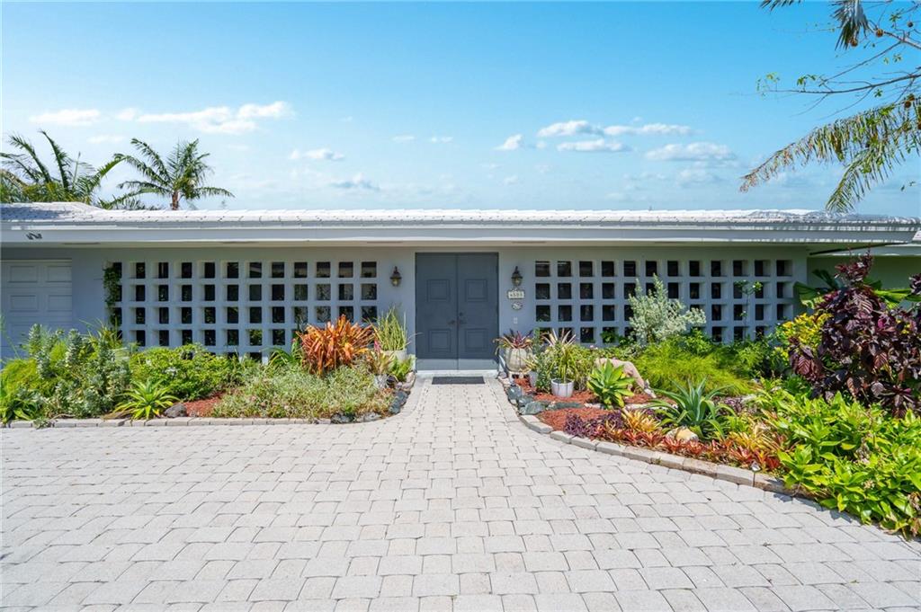 Unique lines in this mid century home offer a fine compliment to both the indoor and outdoor space. Enter the house through a double door courtyard into a well established garden complete with water features and koi pond. The large courtyard windows offer a view into the home, though the house to the backyard pool area. A second double door entry leads you into the home. The kitchen is surrounded by the "round room", a unique feature to this floorplan as well as a garden room. The split bedroom floor plan is a three bedroom, two and a half bath, a large great room, living and dining area. Newer roof, AC and water heater. Full house generator, natural gas, impact windows and doors. The area is walkable to restaurants and 1.5 miles to Lauderdale by the Sea. Property offered AS-IS.