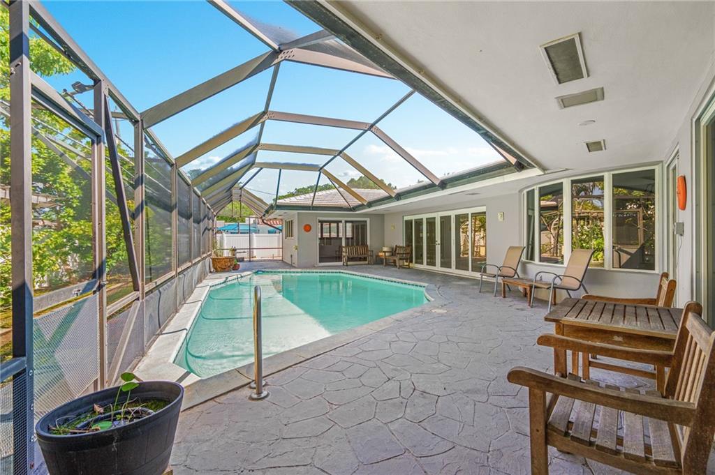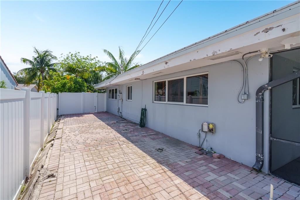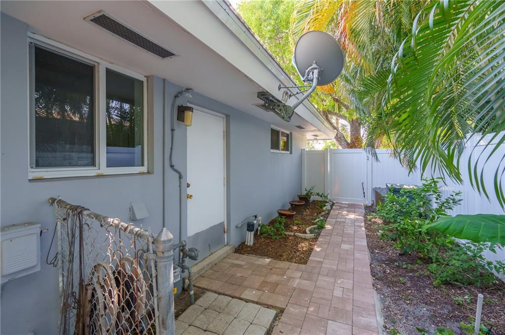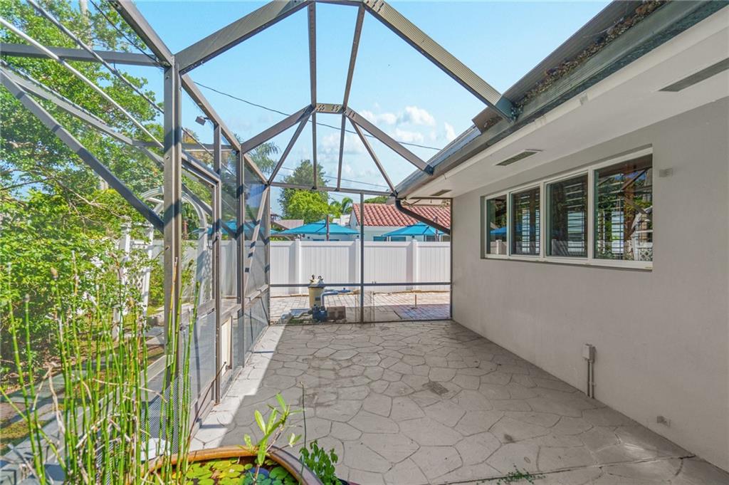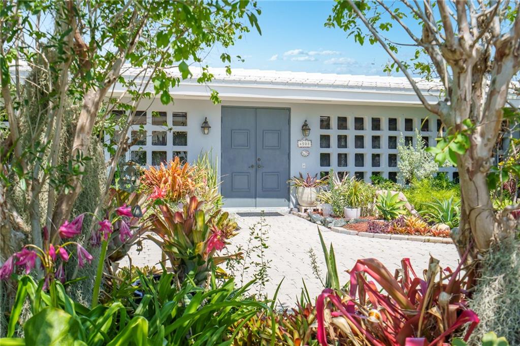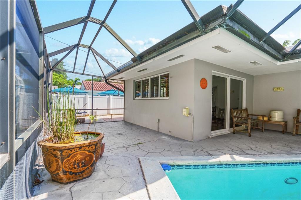 Unique lines in this mid century home offer a fine compliment to both the indoor and outdoor space. Enter the house through a double door courtyard into a well established garden complete with water features and koi pond. The large courtyard windows offer a view into the home, though the house to the backyard pool area. A second double door entry leads you into the home. The kitchen is surrounded by the "round room", a unique feature to this floorplan as well as a garden room. The split bedroom floor plan is a three bedroom, two and a half bath, a large great room, living and dining area. Newer roof, AC and water heater. Full house generator, natural gas, impact windows and doors. The area is walkable to restaurants and 1.5 miles to Lauderdale by the Sea. Property offered AS-IS.