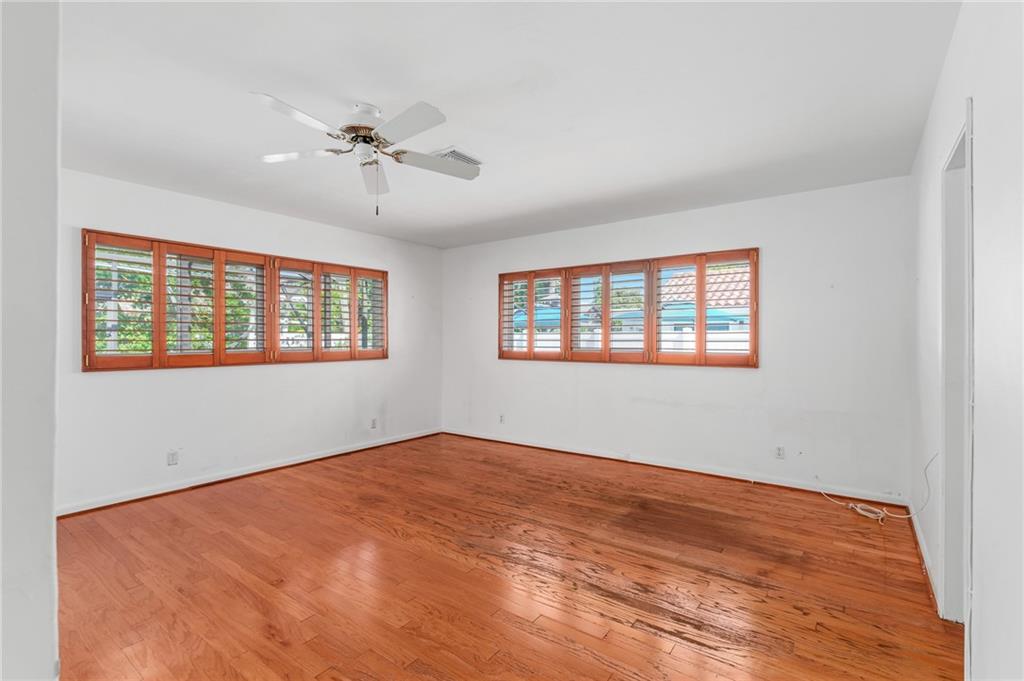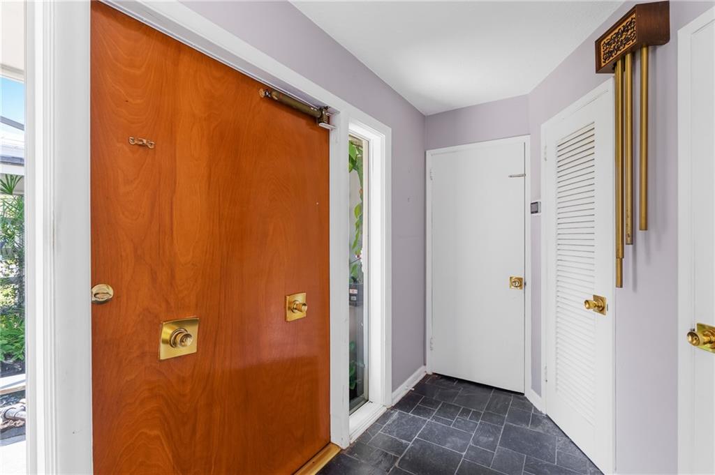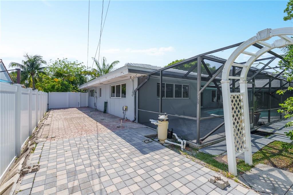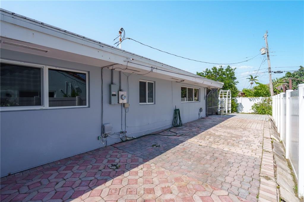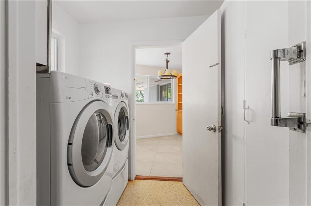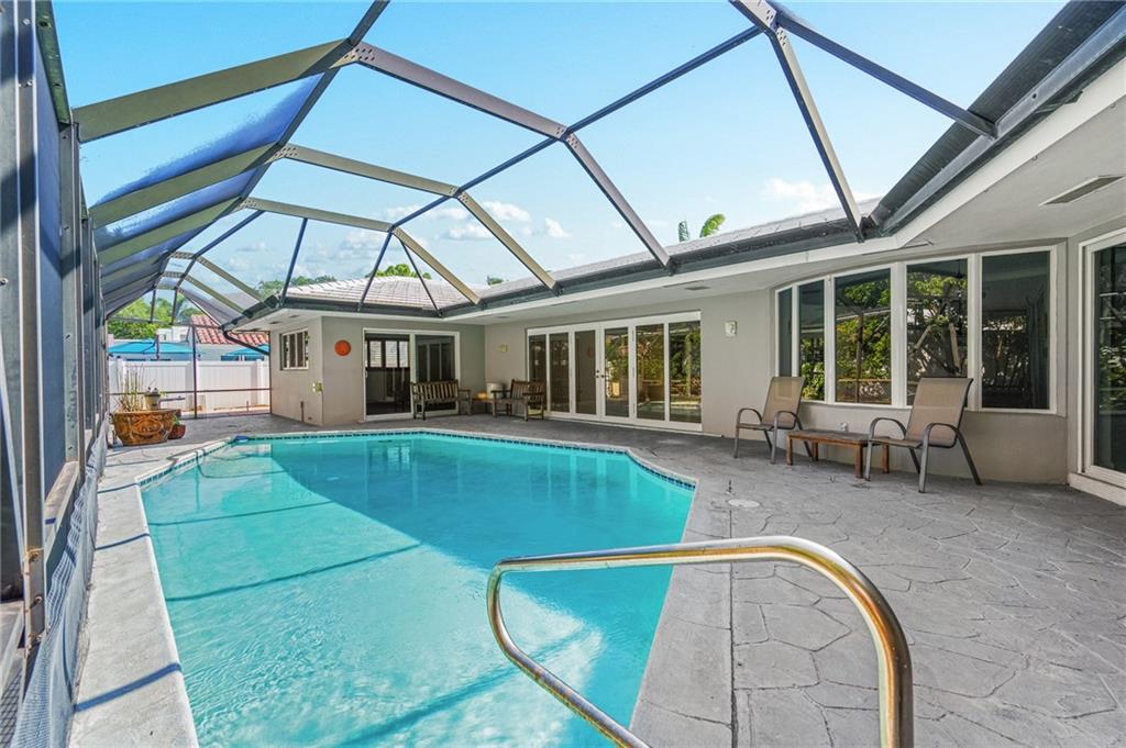 Unique lines in this mid century home offer a fine compliment to both the indoor and outdoor space. Enter the house through a double door courtyard into a well established garden complete with water features and koi pond. The large courtyard windows offer a view into the home, though the house to the backyard pool area. A second double door entry leads you into the home. The kitchen is surrounded by the "round room", a unique feature to this floorplan as well as a garden room. The split bedroom floor plan is a three bedroom, two and a half bath, a large great room, living and dining area. Newer roof, AC and water heater. Full house generator, natural gas, impact windows and doors. The area is walkable to restaurants and 1.5 miles to Lauderdale by the Sea. Property offered AS-IS.