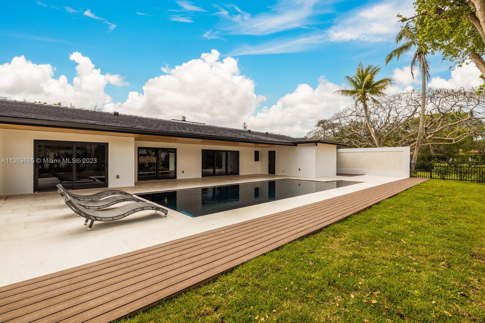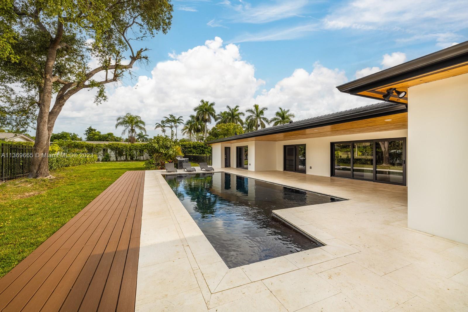 This luxurious property is situated on a large and beautifully landscaped corner lot. The main living area boasts an open and airy floor plan with large windows that allow plenty of natural light into the space. The gourmet kitchen has high-end stainless steel appliances, custom cabinetry and plenty of counter space. Primary suite features a walk-in closet and spa-like en suite bathroom. Step outside to the backyard oasis with a sparkling pool surrounded by lush tropical landscaping, creating a serene and peaceful environment. There is also a covered patio area with plenty of seating for outdoor dining/entertaining. Additional features include a laundry room, 2 car garage, and impact windows t/o. This property is conveniently located near top-rated schools, world-class shopping and dining.