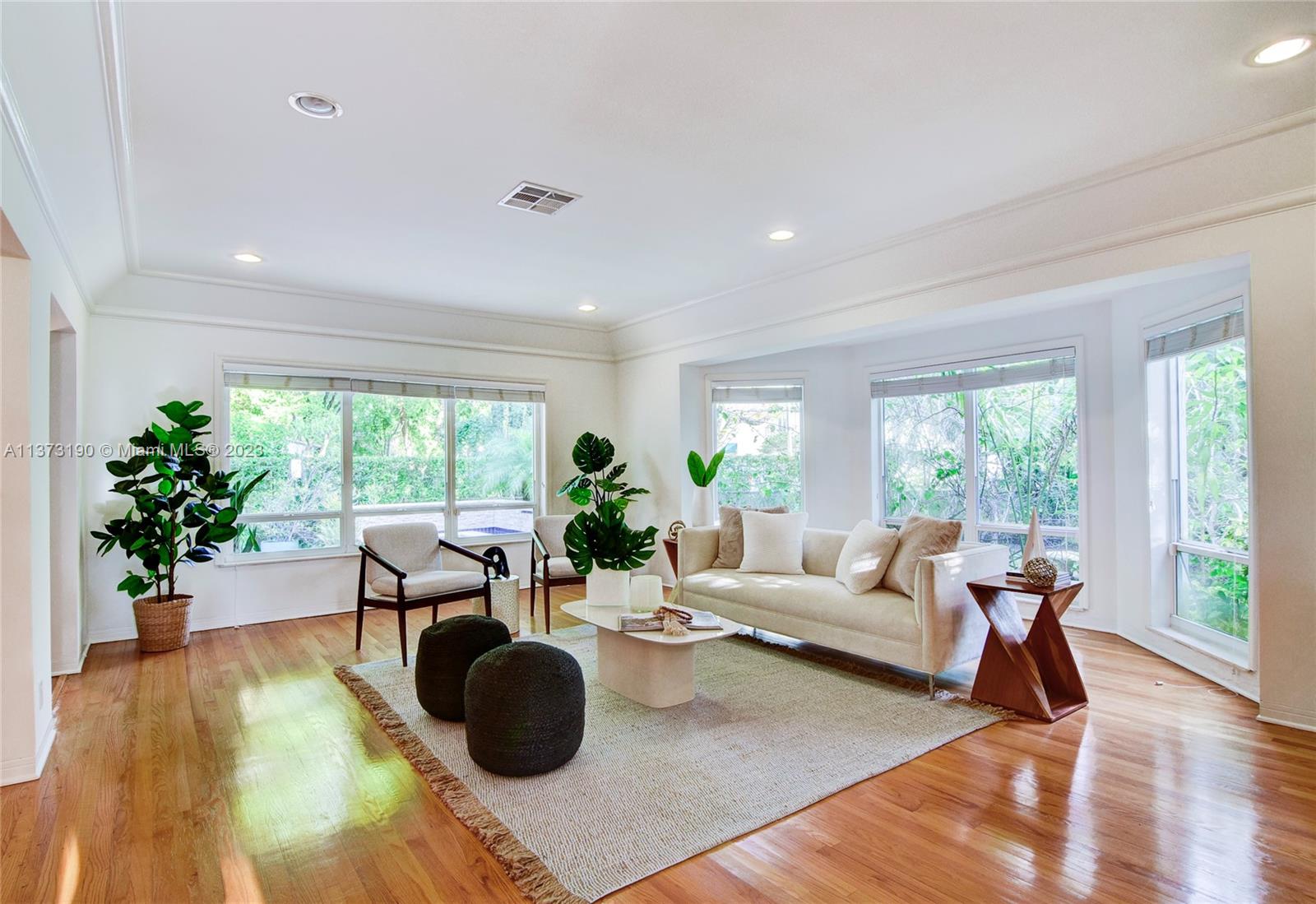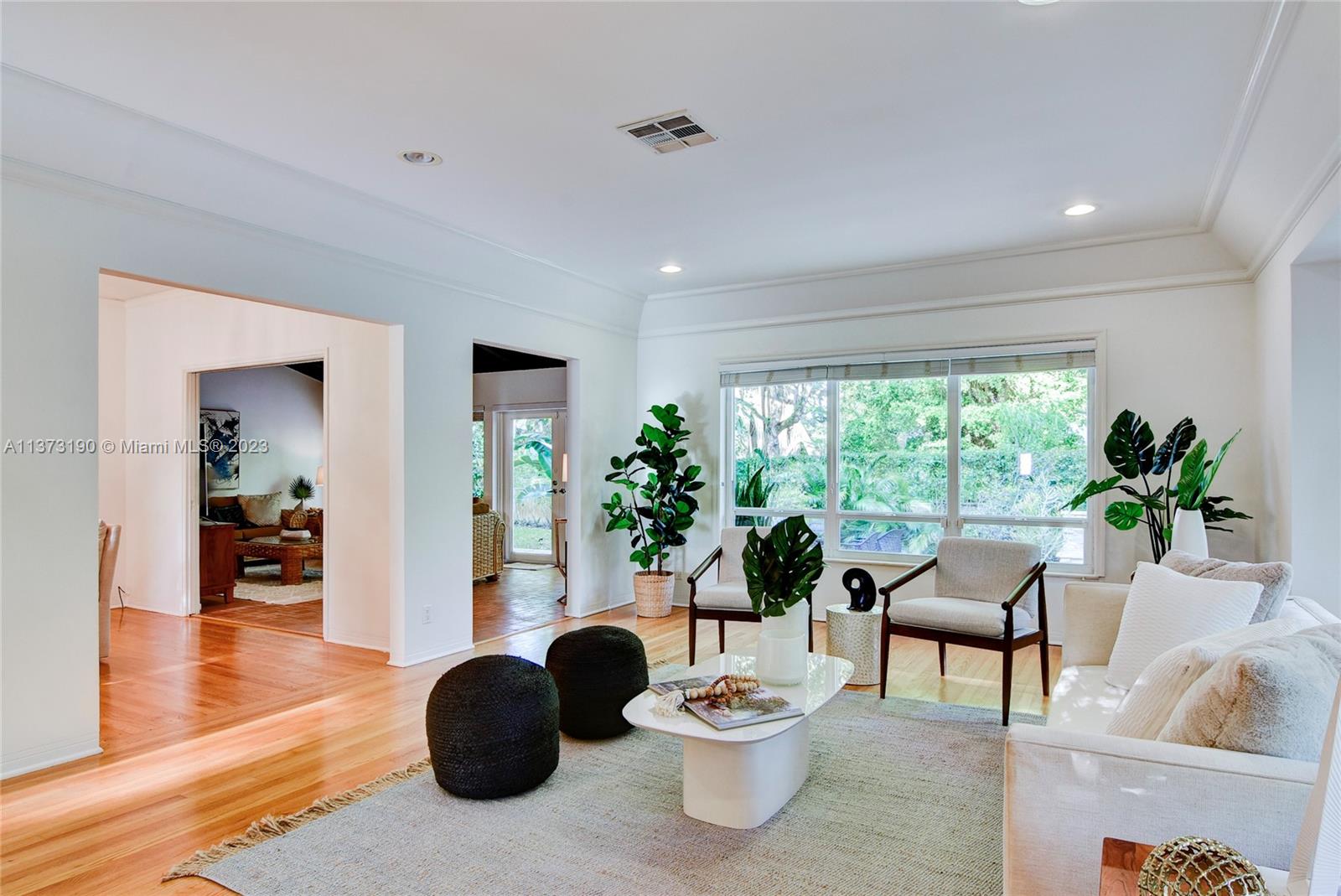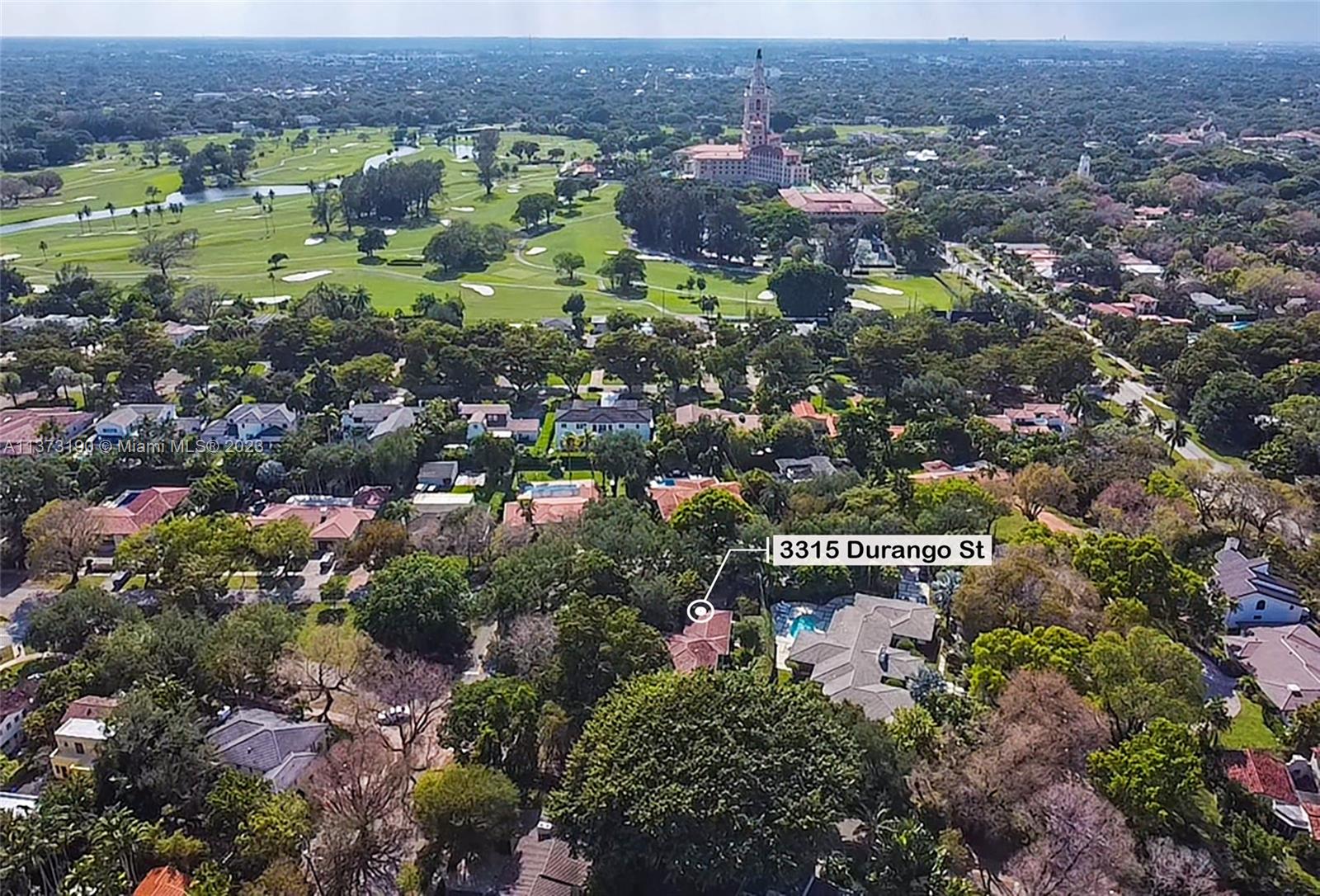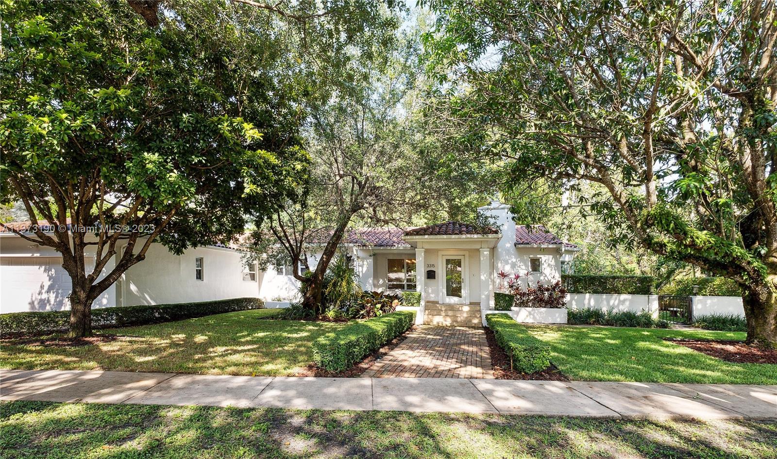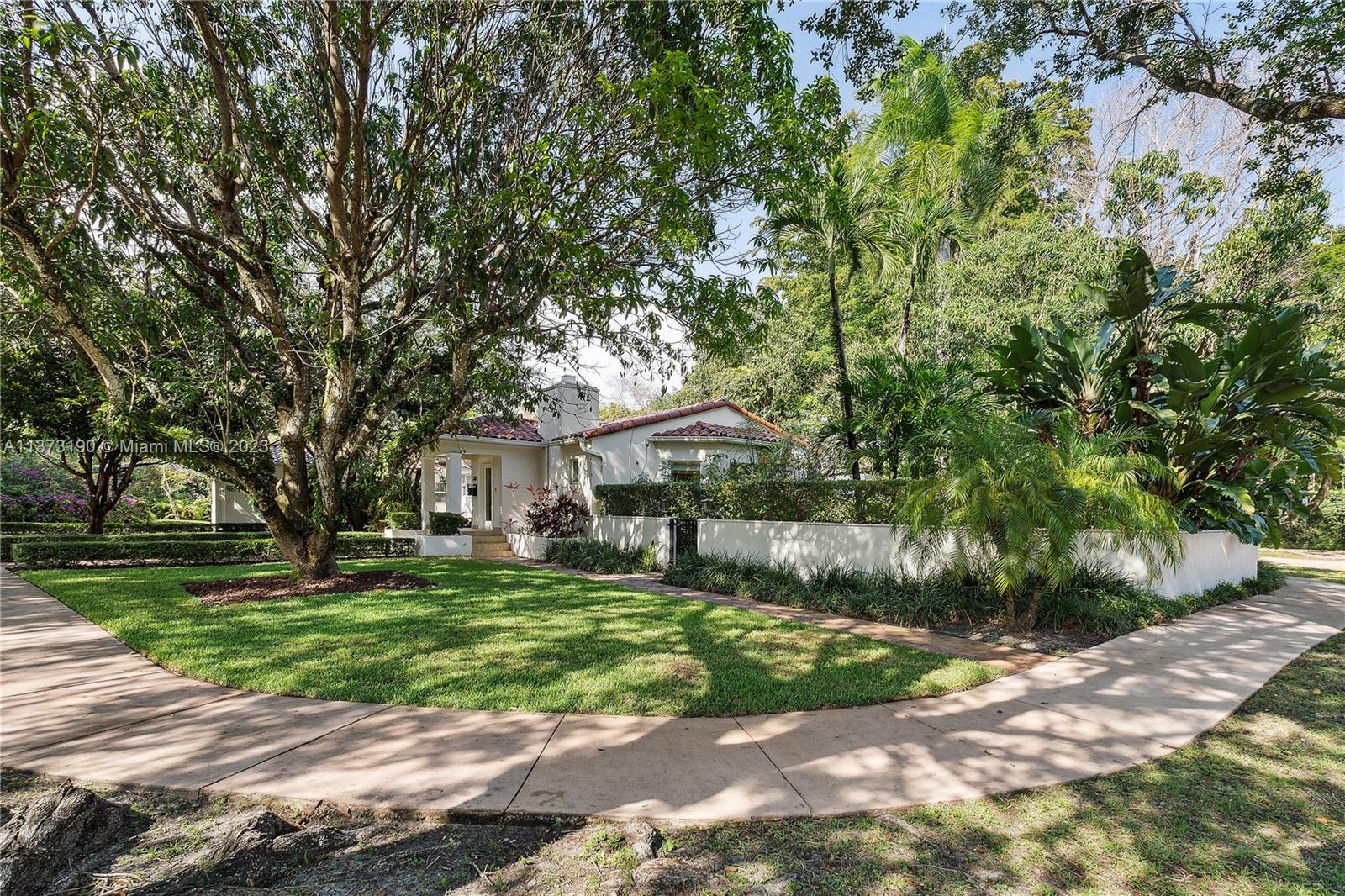 Rare Find, this 3-bedroom 3-bath gem sits on a 13,500 SqFt corner lot on one of only two houses on this block. Located in the prestigious "Golden Triangle" of Coral Gables. Primary bedroom has 14’ ceilings with a gorgeous Wenge wood built-in closet. One extra small room can be used as a den or office. Updated in 2016 including impact windows & doors. Beautiful kitchen w S/S appliances perfect for entertaining. Spacious and bright living area w/ a working chimney. The private walled-in backyard has fruit trees, along with nicely manicured landscaping that surrounds a built-in fountain w/ room for a pool. Very quiet street minutes away from downtown Coral Gables and Biltmore Hotel & golf course.