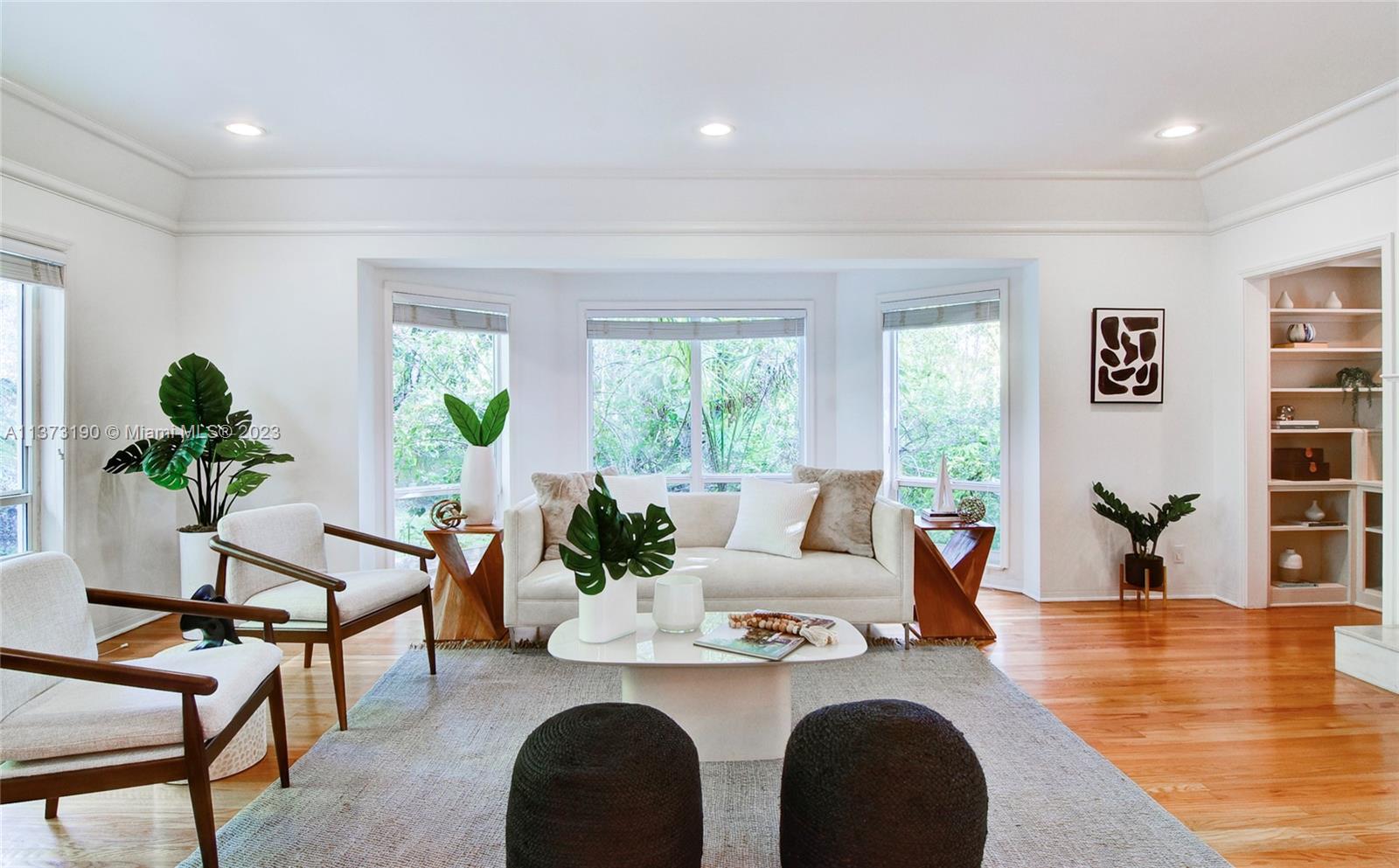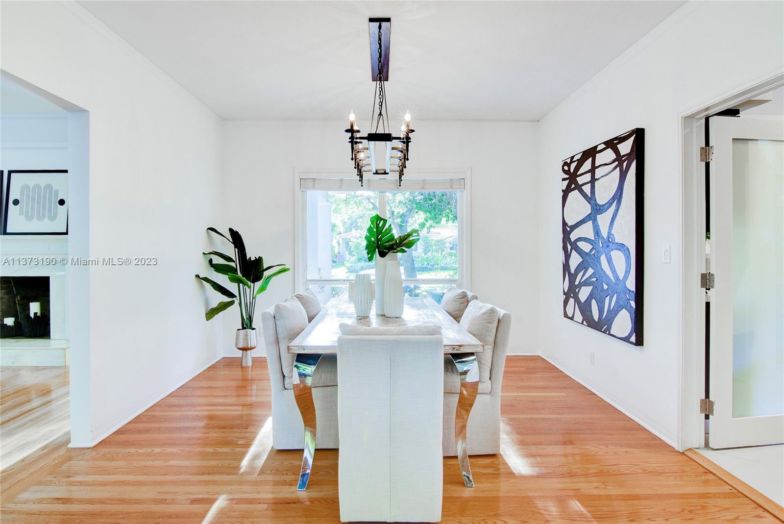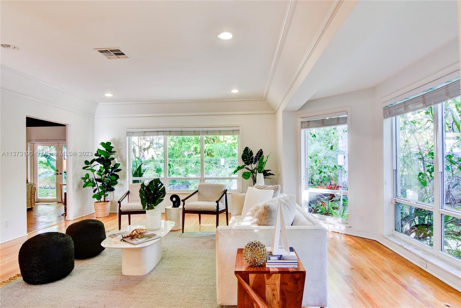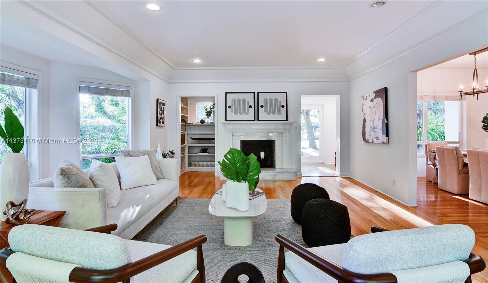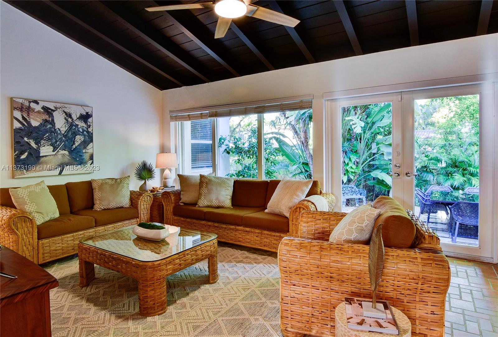 Rare Find, this 3-bedroom 3-bath gem sits on a 13,500 SqFt corner lot on one of only two houses on this block. Located in the prestigious "Golden Triangle" of Coral Gables. Primary bedroom has 14’ ceilings with a gorgeous Wenge wood built-in closet. One extra small room can be used as a den or office. Updated in 2016 including impact windows & doors. Beautiful kitchen w S/S appliances perfect for entertaining. Spacious and bright living area w/ a working chimney. The private walled-in backyard has fruit trees, along with nicely manicured landscaping that surrounds a built-in fountain w/ room for a pool. Very quiet street minutes away from downtown Coral Gables and Biltmore Hotel & golf course.