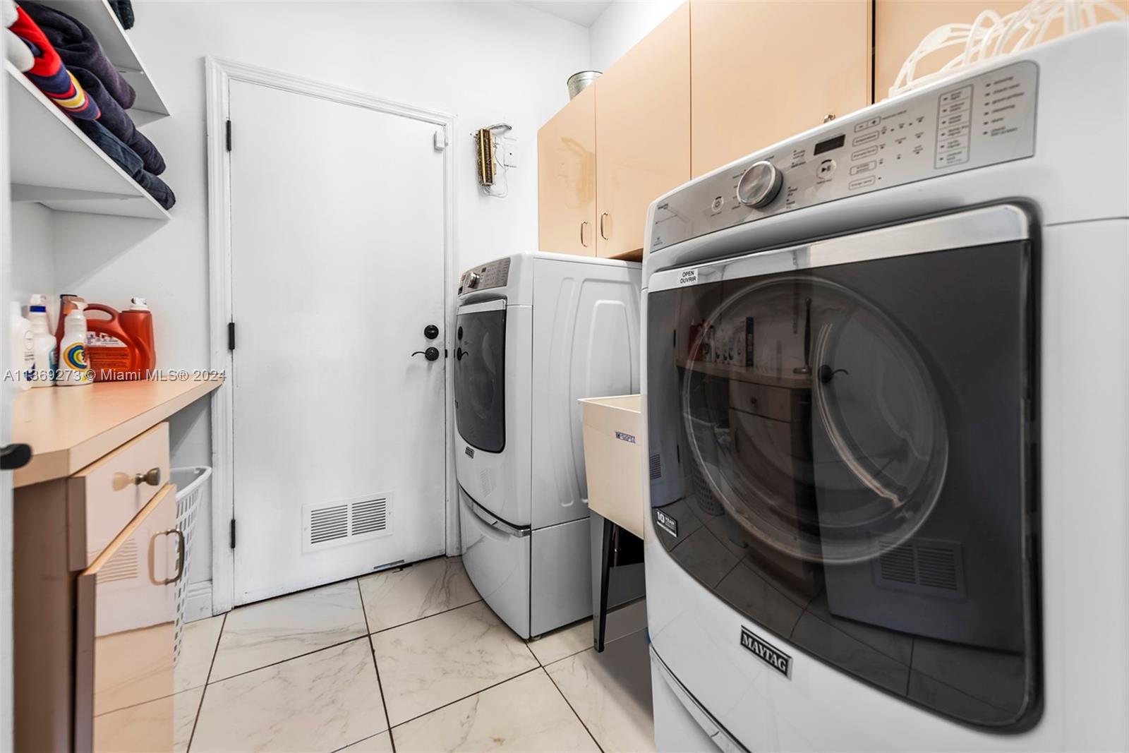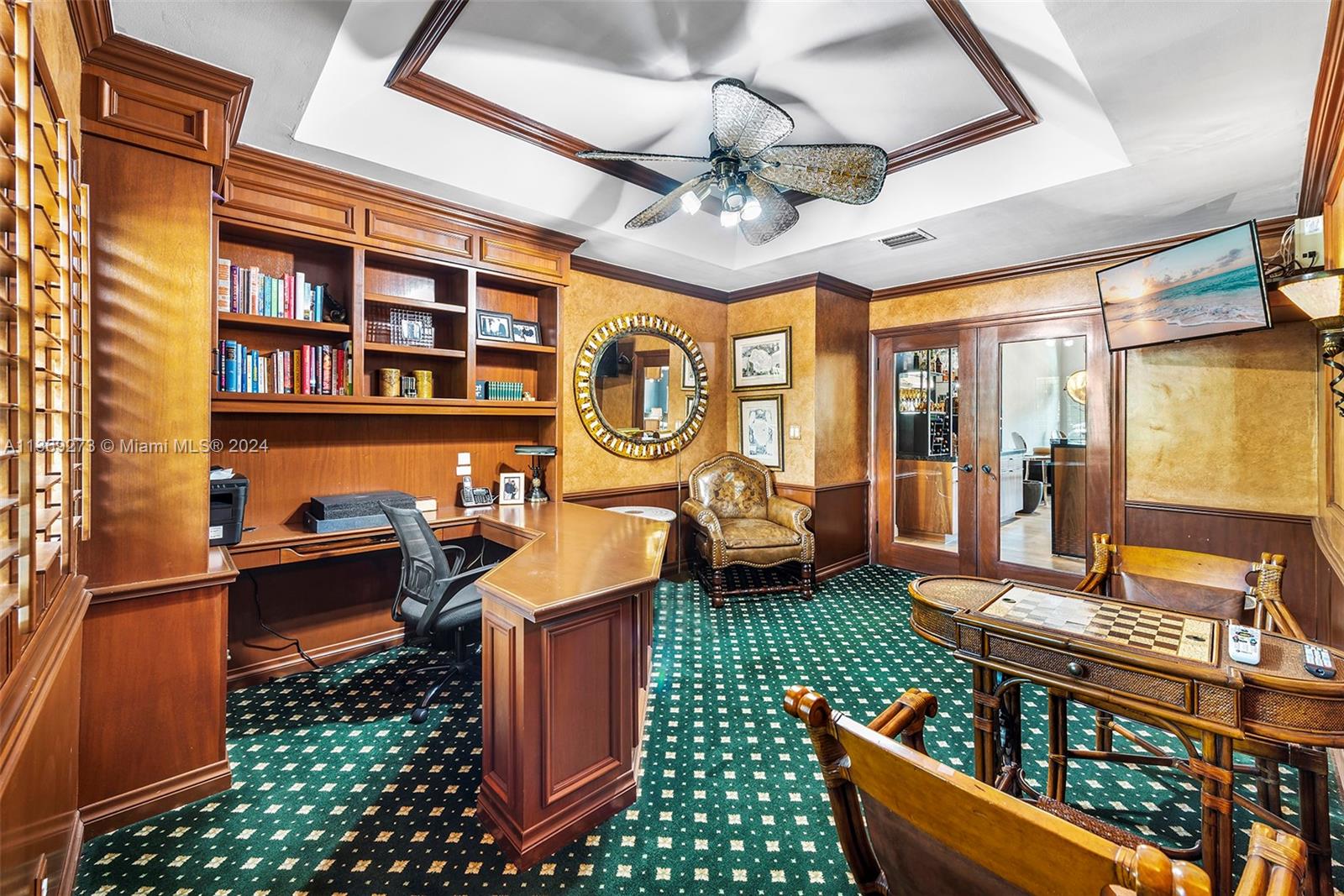 This stunning one-story custom-built home is a dream come true for yacht owners, offering 50ft of waterfront property. The home boasts high ceilings. Perfect for boat enthusiasts. Professionally decorated with the finest quality finishes throughout, including custom-built wall units, impact windows and doors, wood plank floors, and a newer (1 year) flat tile roof. The home features a built-in bar, a huge great room, and a newer remodeled spacious eat-in kitchen with marble countertops and backsplash, a Miele gas stove, Miele oven, microwave, espresso, and wine cooler, built-in Subzero refrigerator and freezer, tall cabinets, and pull-out pantries. A must see opportunity.