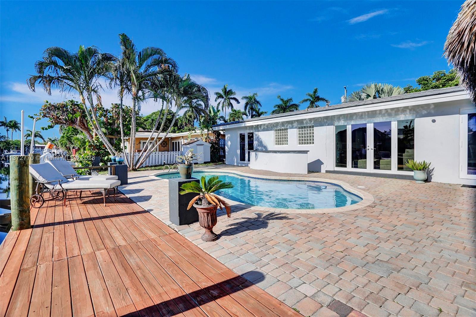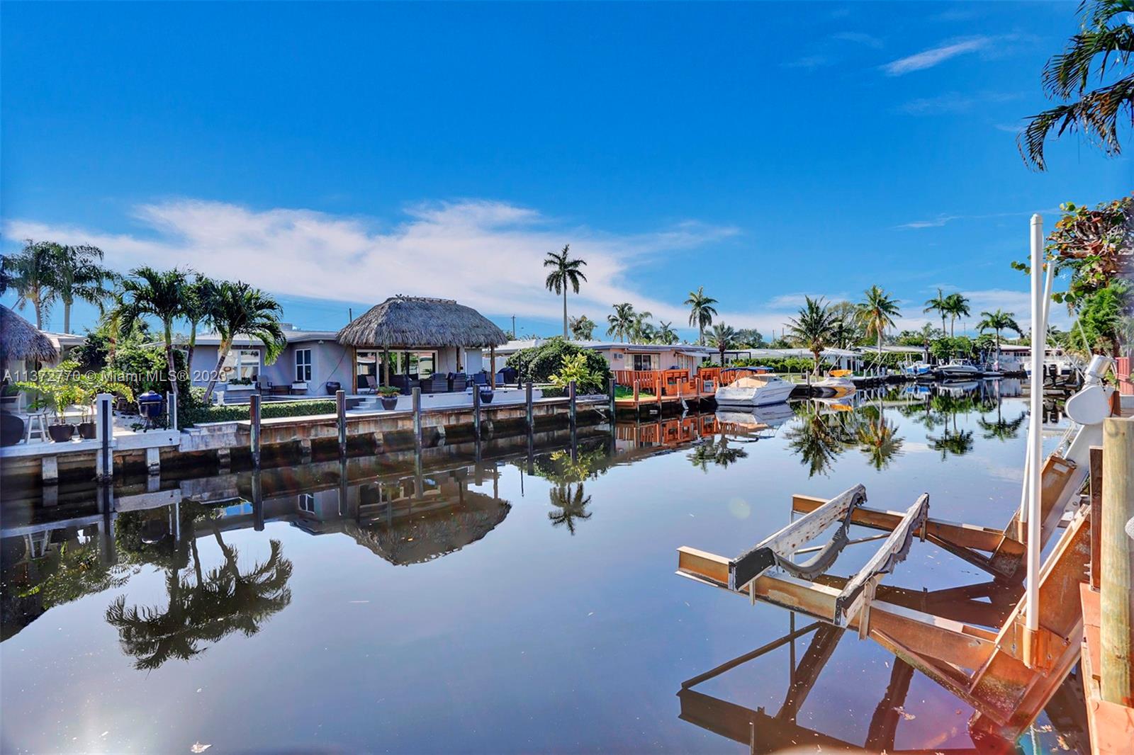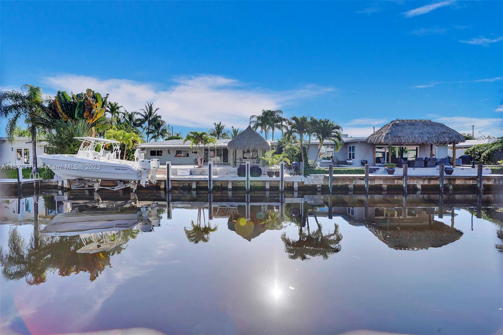 Boaters Delight! Come see this beautifully renovated 3 bed 2 bath home with 1 car garage on 70ft of waterfront with ocean access & boat dock. This home offers a large kitchen with granite countertops, separate office, great room, and a dining room overlooking the pool and canal with tile throughout. Entertain your guests under the Tiki hut on the large concrete deck. Newer roof and AC. 2 Fixed bridges to the ocean. Can be sold fully furnished turn-key