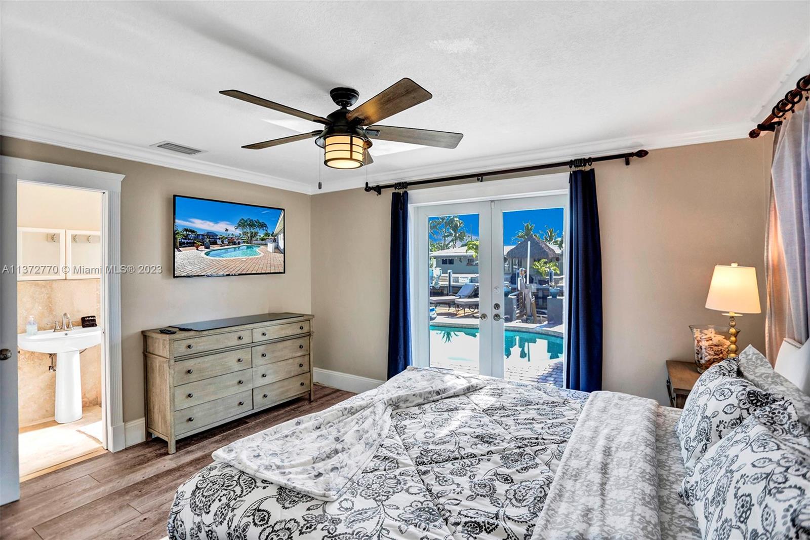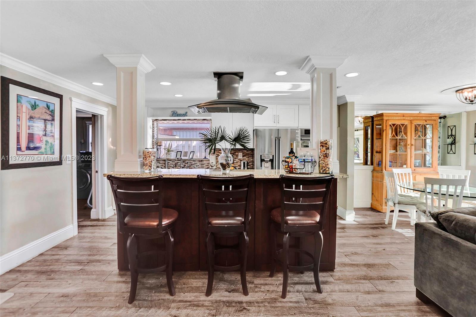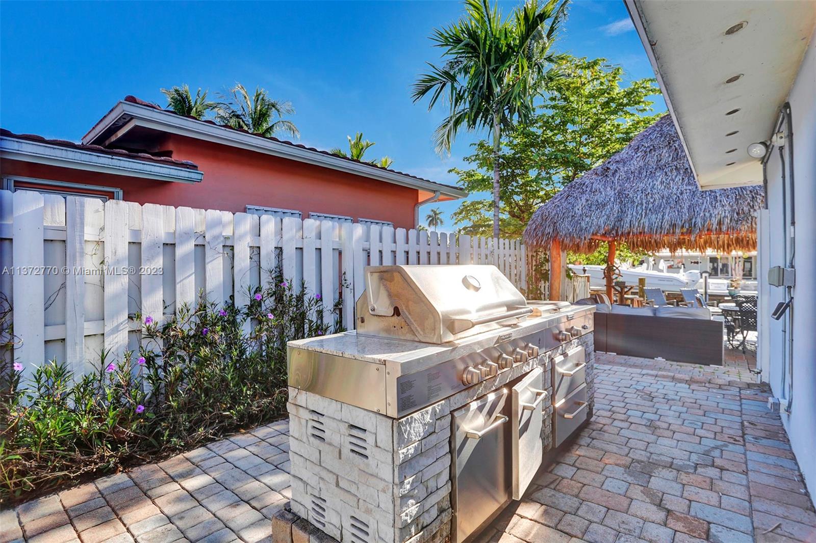 Boaters Delight! Come see this beautifully renovated 3 bed 2 bath home with 1 car garage on 70ft of waterfront with ocean access & boat dock. This home offers a large kitchen with granite countertops, separate office, great room, and a dining room overlooking the pool and canal with tile throughout. Entertain your guests under the Tiki hut on the large concrete deck. Newer roof and AC. 2 Fixed bridges to the ocean. Can be sold fully furnished turn-key