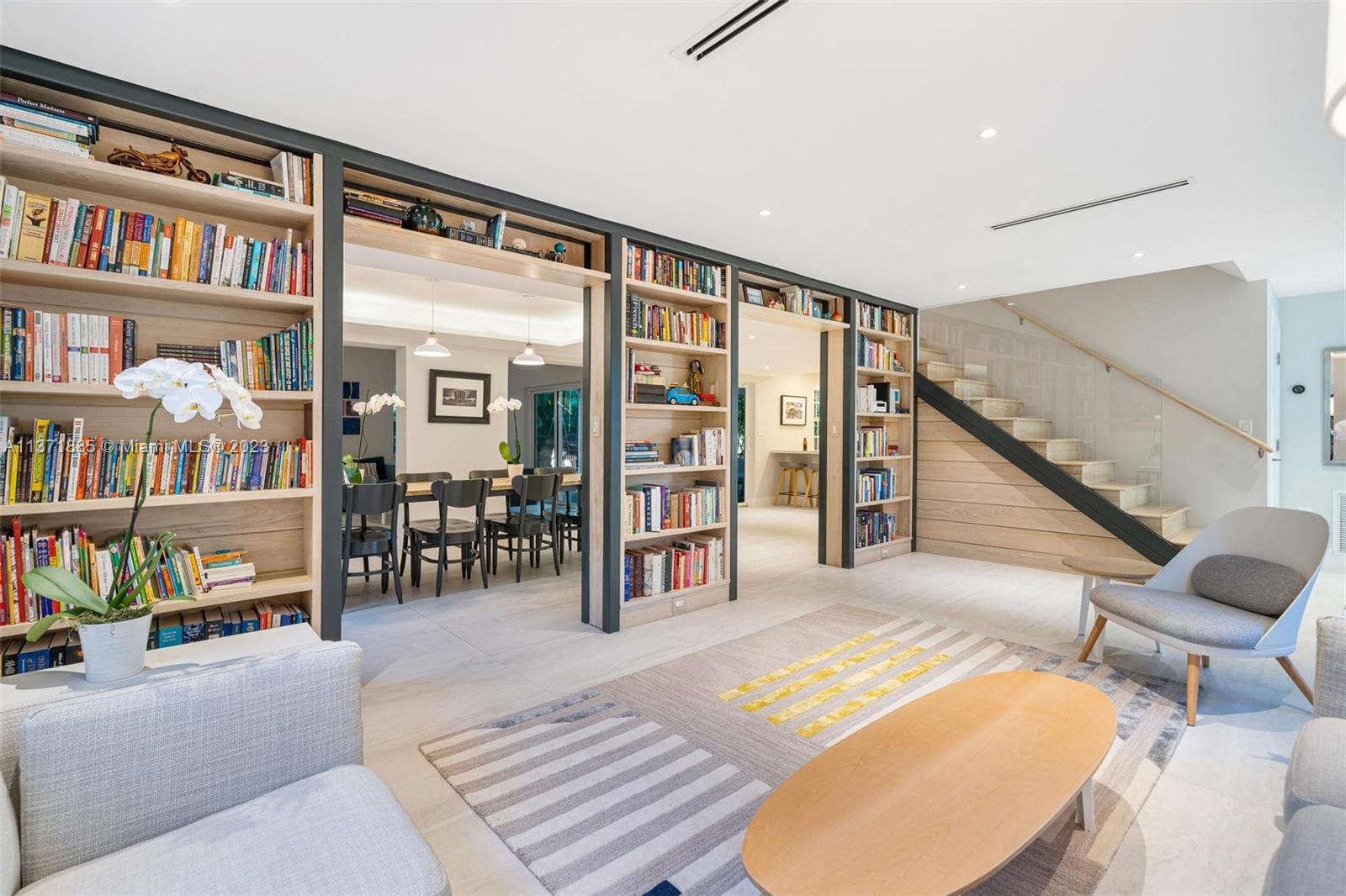 The perfect balance between style & functionality. Meticulously renovated home with exceptional attention to detail features 4 generously-sized bedrooms, 2 baths upstairs & a renovated ½ bath downstairs. Architect-designed features like the handcrafted oak bookshelves & stair add unique character to the living room while the vaulted ceiling in the family room creates warmth & invites you to kick up your feet. Lush landscaping surrounds the property providing privacy & a feeling of seclusion in the heart of Coral Gables. Improvements include impt. windows & doors, renovated kitchen, replacement of cast iron & new copper water lines, custom lighting & much more. Short walk to the Youth Center & Library, top schools, restaurants & shopping, this is the best way to enjoy South Florida living.
