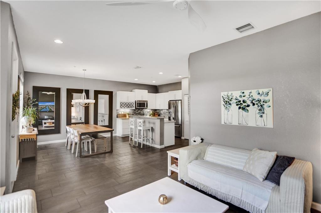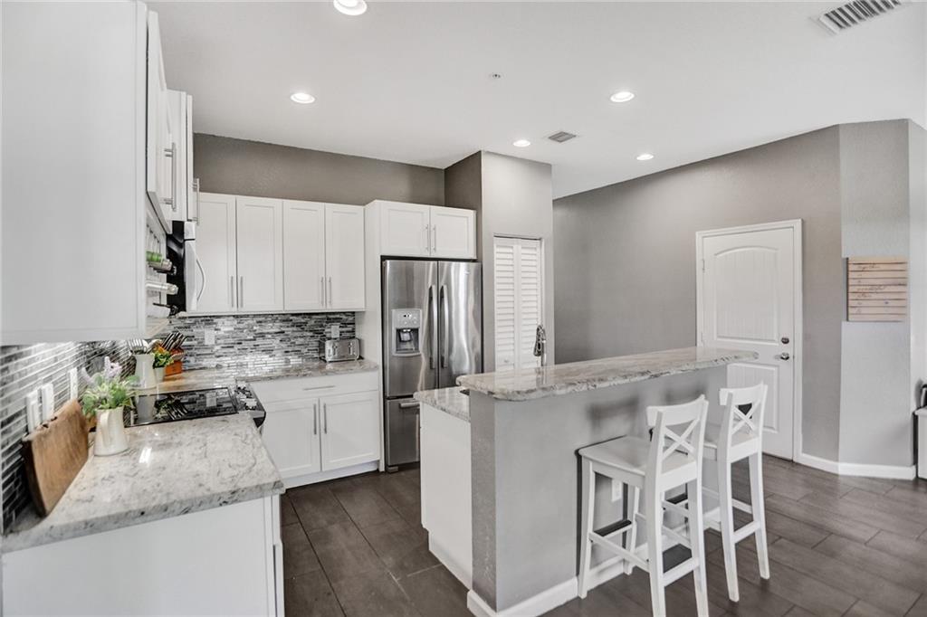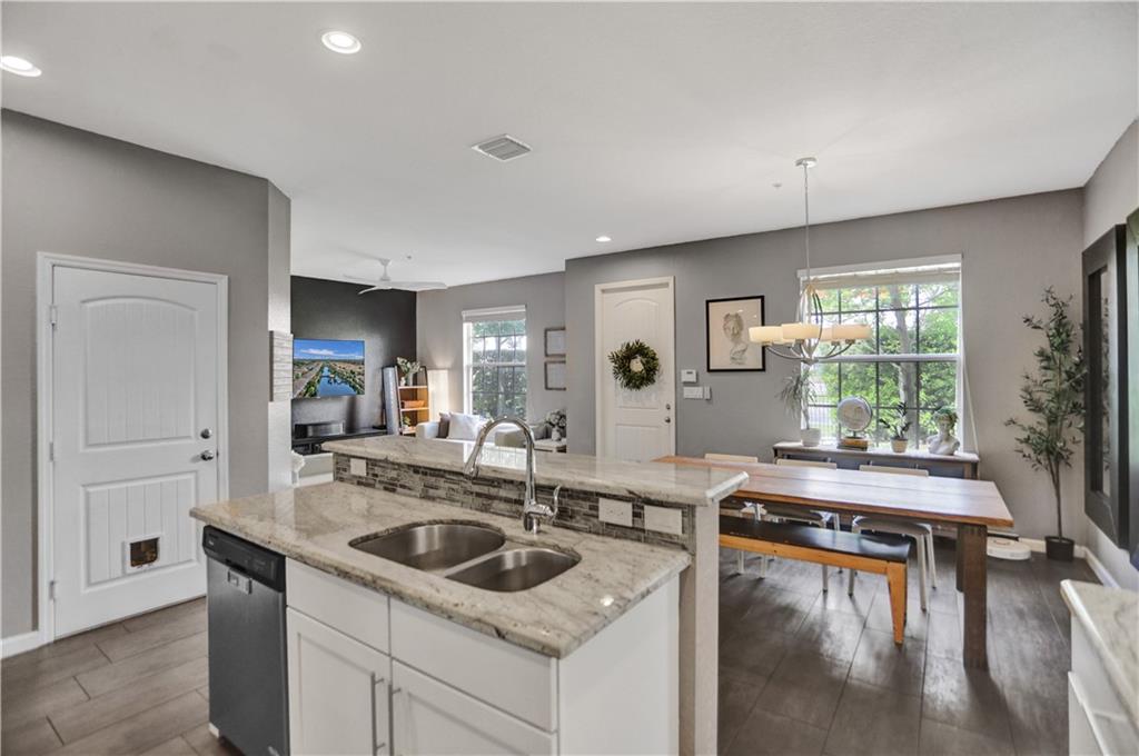 Stylish updated 3/2.5 corner Townhome with direct lake view in Orchid Grove. Truly one of a kind. One of the larger units in the complex. Hurricane Impact Windows & Doors. Bright & airy open concept floor plan. 1st floor boast 9.5 ft ceilings, Gourmet kitchen, Granite countertops, wine rack, SS appliances. Over sized living/kitchen area. Upgraded 12x24 plank tile, den and 1/2 bath. Enjoy 9 ft ceilings on the second floor. Over sized master bedroom, large closets and spa like master bathroom with soaking tub & shower. 2 nicely sized guest bedroom. Gorgeous guest bathroom with upgraded cabinet & flooring. Larger 1 car garage with epoxy floor. Oversized driveway that will accommodate 2 cars. Plenty of outdoor space to grill and entertain while enjoying full lake view. Private backyard.