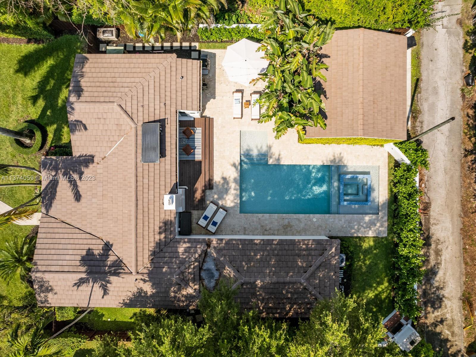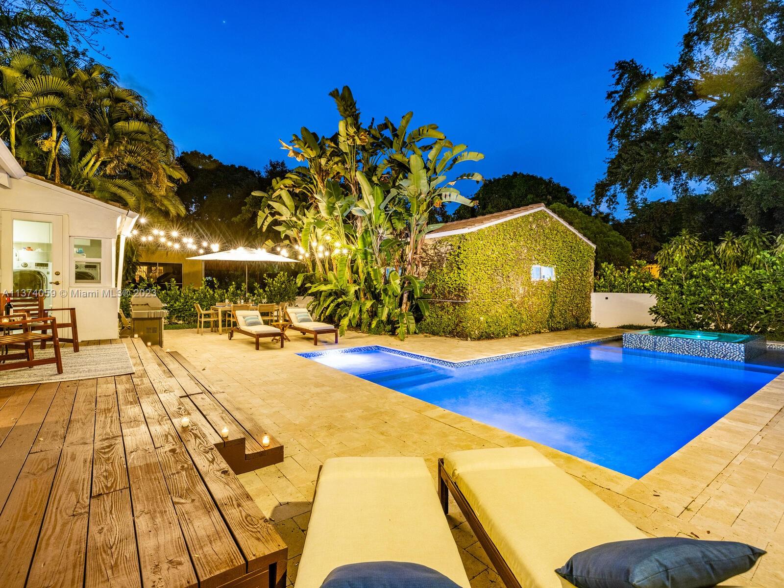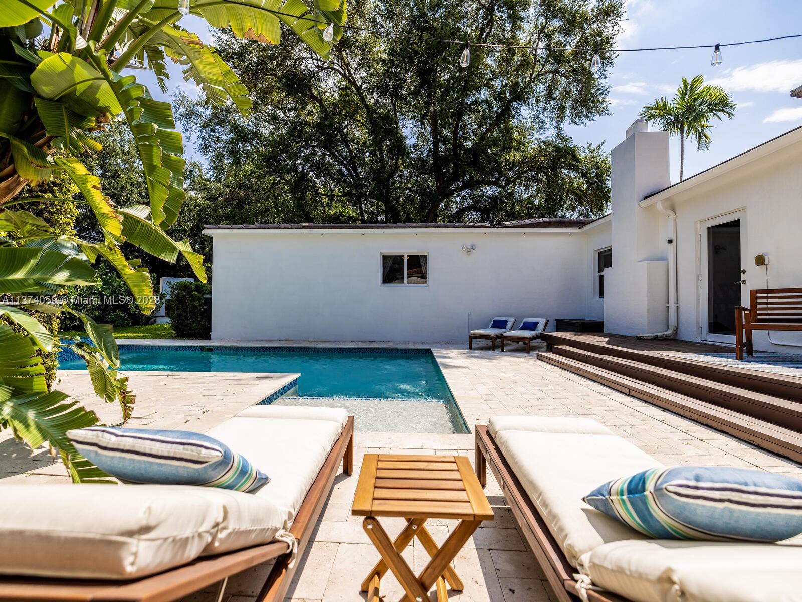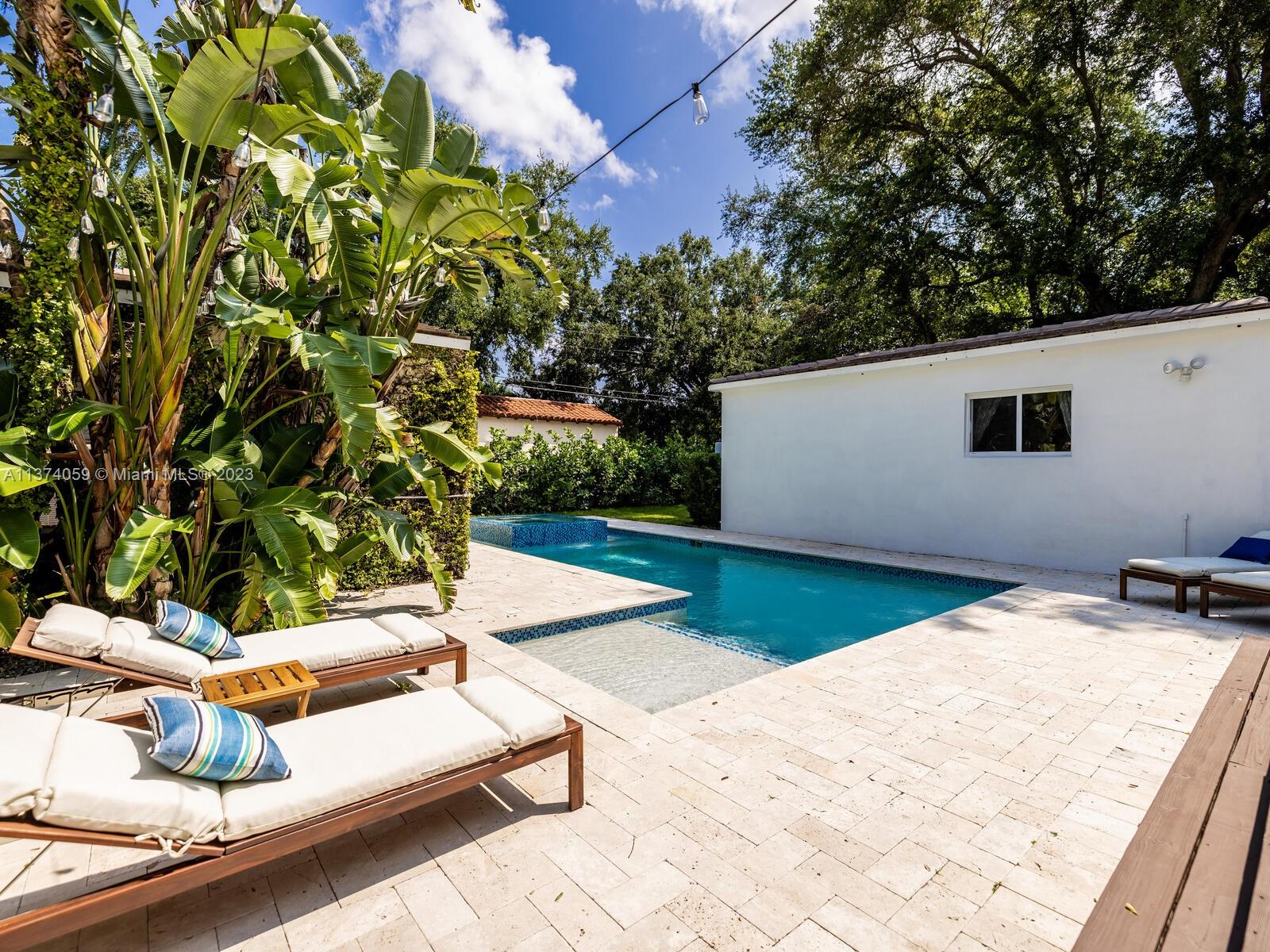 Welcome to Casa Palmera! You’ll feel like you’re in your own personal resort in this nicely-updated 4-bedroom 3-bath Miami Shores pool home. Fantastic interiors, with open-flow living, beautiful wood floors, chef’s eat-in gourmet kitchen, elegant dining with tray ceilings, laundry room, impact windows-doors, and a split bedroom plan for extra privacy, including a tucked away en-suite perfect for guests or nanny. Escape to the Tulum-inspired backyard oasis with cool sparkling pool, entertainment decks, gorgeous lush landscaping, an Instagram-ready vintage built-in BBQ wall, plus a detached huge 484 SF 2-car garage that could also be converted to a pool cabana for added enjoyment. All in a fantastic non-flood zone location, less than two blocks to Downtown Miami Shores shops and restaurants.