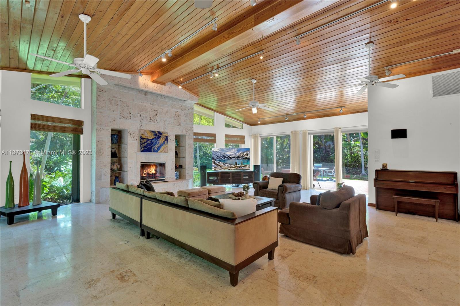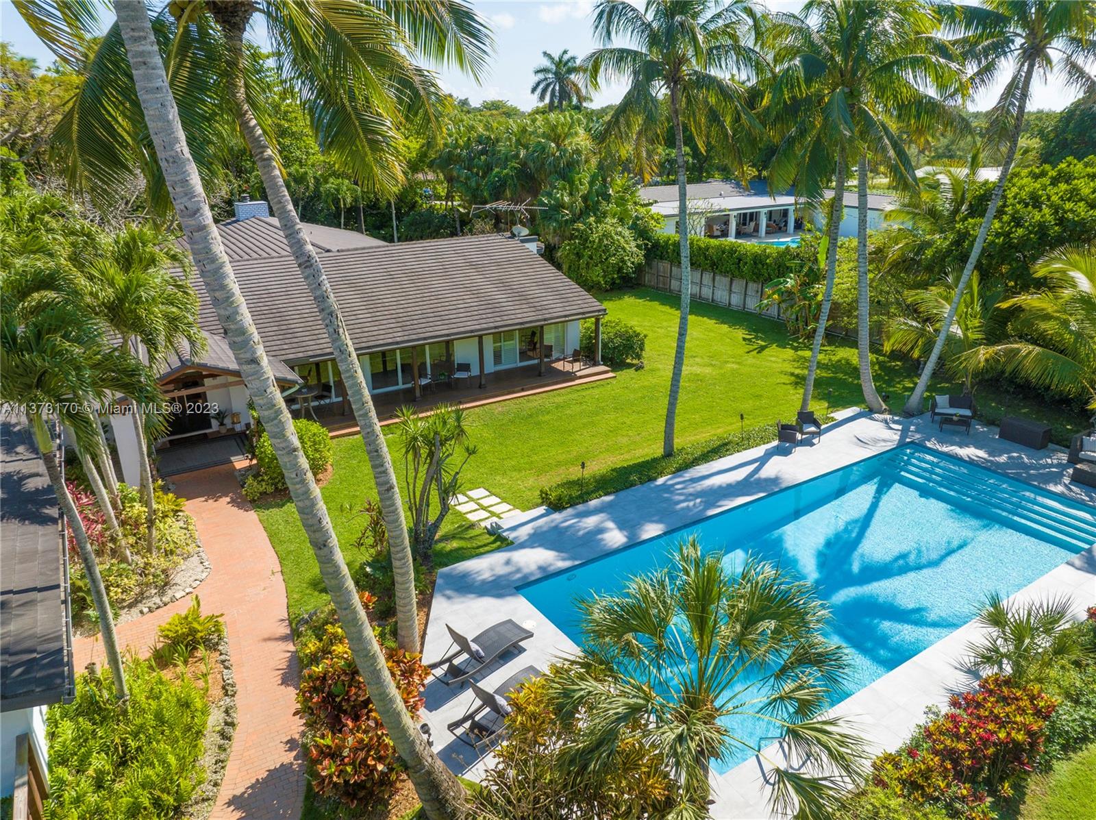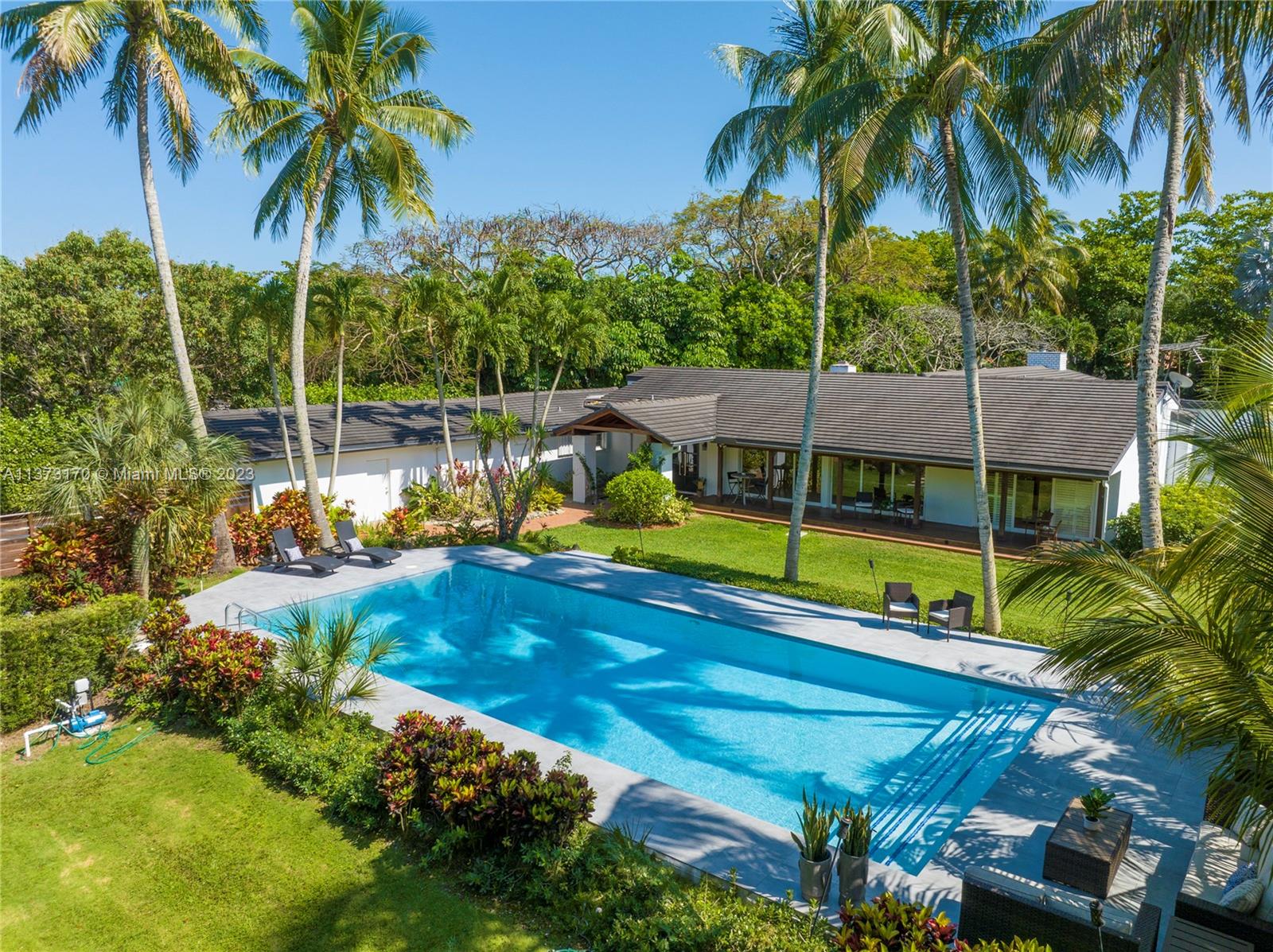 Coconut Grove staycation home vibes in Pinecrest! Enter through the gates to your tranquil, private street-to-street acre oasis. This stunning 4 bed/4.5 bath plus office is surrounded by lush landscaping on perfectly manicured grounds. The large owners suite is split for privacy, while the chef’s kitchen opens to oversized dining/family room. Plentiful windows and sliding doors allow in natural light to the indoor/outdoor open floor plan all leading to an oversized pool/patio perfect for enjoying South Florida living and entertaining. Bonus 4 car garage w/ ample space to store/park a boat and other toys. Hop on bordering paths steps away from parks and top-rated private, and public schools. Who is ready to call this fantastic oasis/house and neighborhood in The Village of Pinecrest, home?