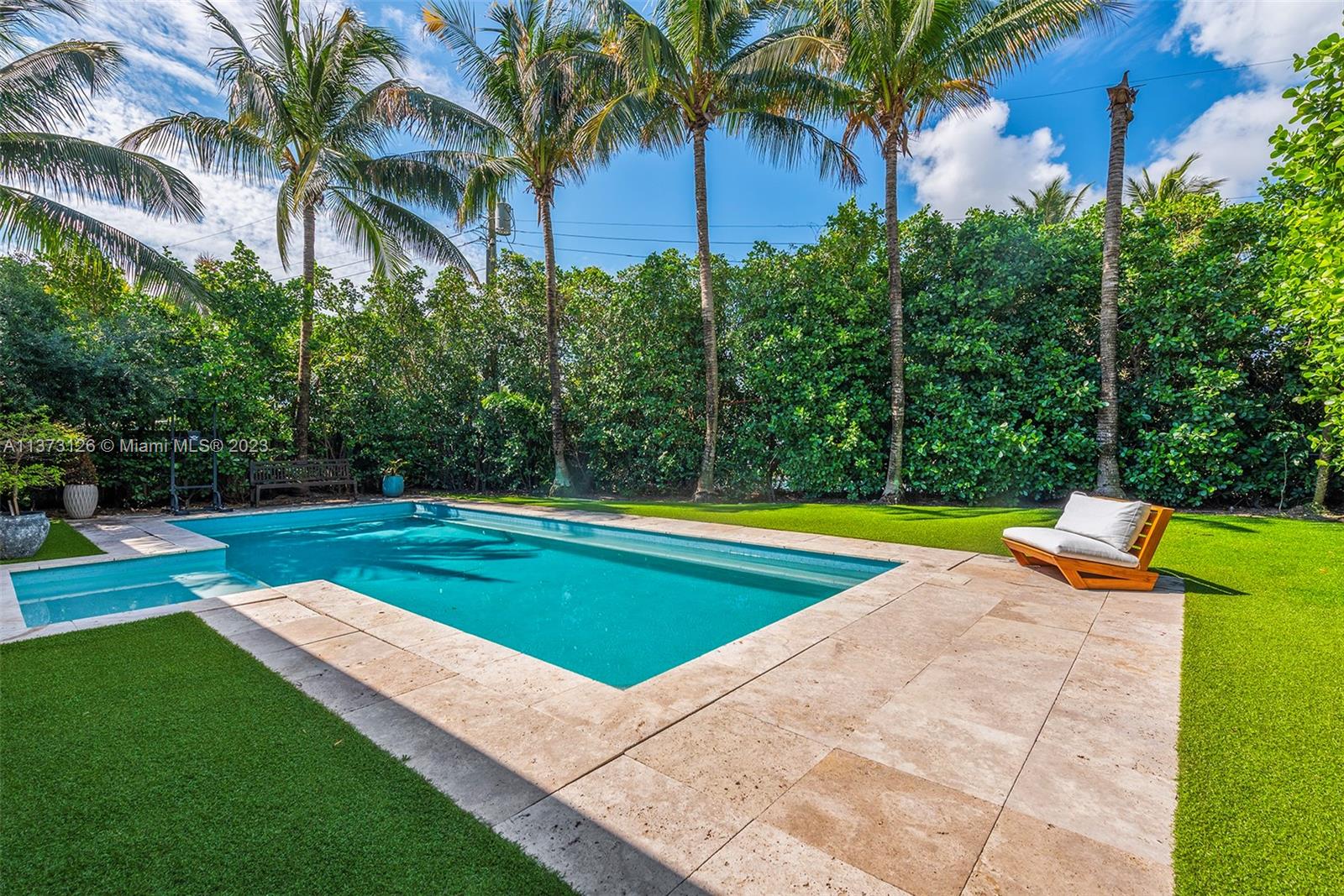 Wonderful 4 bedroom plus den home in premium Miami Beach location across the street from the Ritz Carlton single family homes and walking distance to the park. The Zen home is nestled in an oversized lot, welcoming you to a sanctuary courtyard. An incredible pool loggia surrounded by double-height greenery and hedges, a plethora of open green space for sun lounging. The outdoor living rooms boast a table for 14, hanging tulip basket seating, built in BBQ and bar. Just perfect for entertaining. The well-appointed interiors feature hardwood flooring throughout, multiple living rooms surrounded by glass walls, marble baths, primary suite with oversized walk ins, spa bath and a wonderful chef’s kitchen with Arizona Margarita stone, custom cabinetry and Miele/Subzero appliances. Gated.
