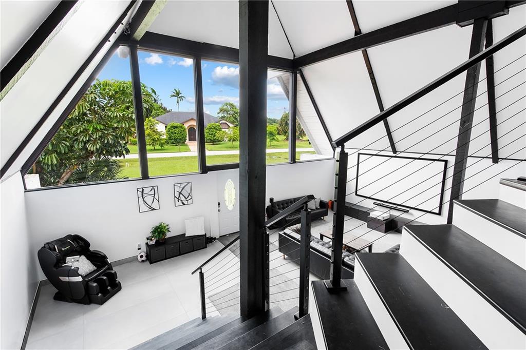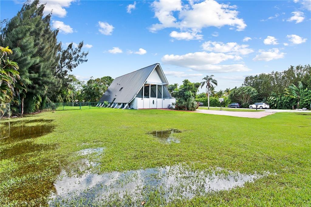 Come experience this spectacular sleek A-Frame style home located on a builder's acre corner lot in the highly desirable neighborhood of Paradise Farms. As you step inside, you'll be captivated by the breathtaking finishes & contemporary design. The interior of this home features an open concept living area, vaulted ceilings, exposed wood paneling, custom-built kitchen, brand new appliances, porcelain tile flooring, fully equipped smart home & more. Brand new 2023 metal roof & Hurricane impact windows on the way. Private backyard tropical oasis with a pool perfect for relaxing or entertaining. This quiet & secluded neighborhood with no HOA has excellent rated schools & is close to all major highways. Keep your RV, boat and other toys right at home. This home must be seen to be believed!