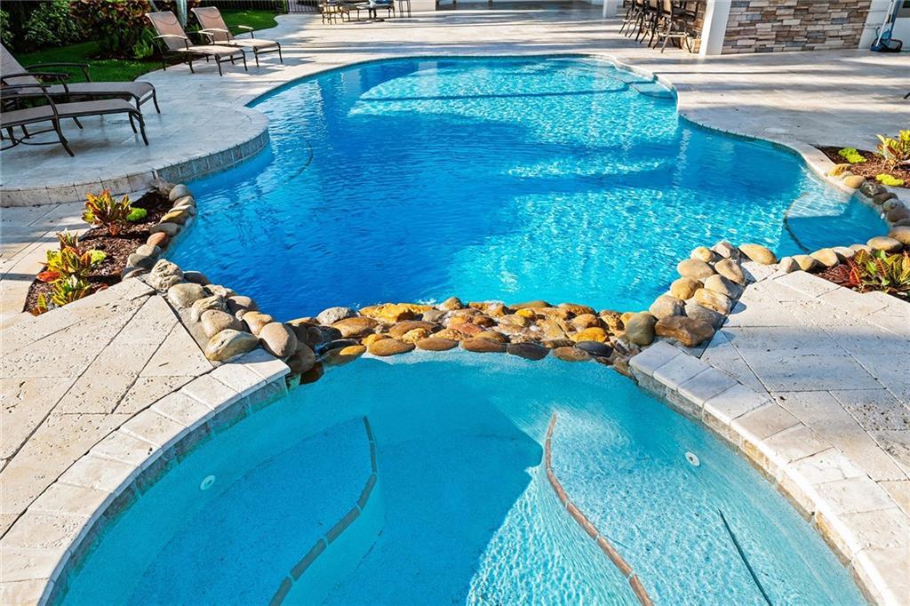 PRISTINE estate home on a premier lot beautifully captures the sparkling long lake views!! Upon entering this rarely available single-story, expanded 6 bdrm /4.5 bath residence, one is greeted w/soaring ceilings thruout living areas, flooding the home w/natural sunlight & spectacular vistas! The newly renovated kitchen is bright & inviting w/white quartz counters, top-tier Sub-Zero & Wolf appliances w/walk in pantry. Casual dining alcove & joyful family room w/party room extension overlooks the glistening free-form htd pool w/waterfall spa & sensational summer kitchen. Master bdrm is a sumptuous retreat! High-impact windows/doors, polished travertine in living areas. A new roof, full home generator,3 bay garage, EV charger, water softener system & gorgeous landscaping enhance this home.