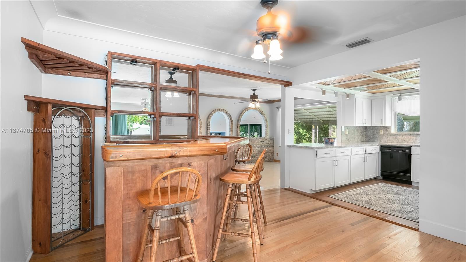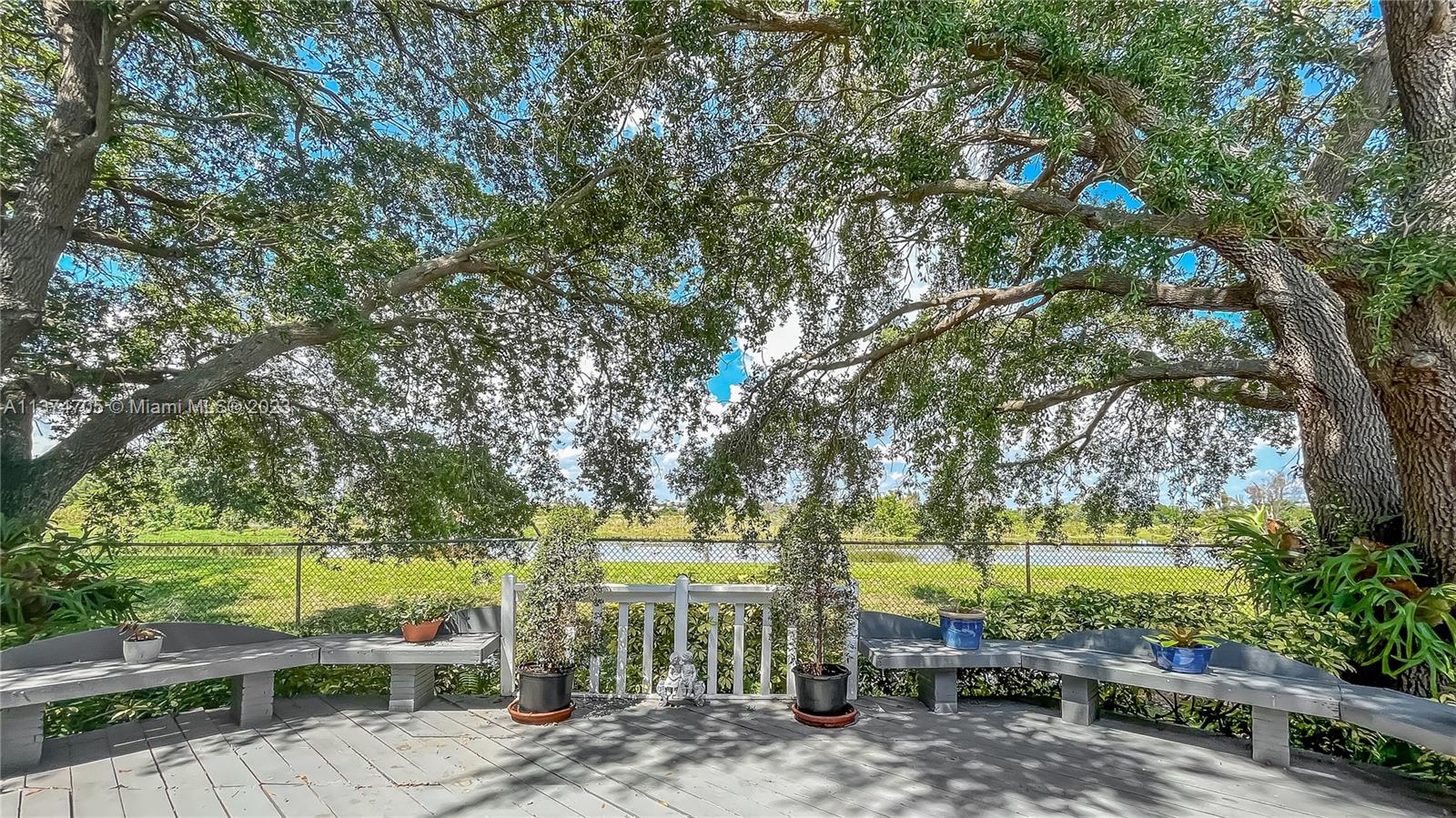 One of a kind home! Located on a quiet dead-end street w/expansive views of an open field, this home is situated on one of the largest lots in Hollywood Terrace. Lg living room w/working fireplace, custom oak bar w/matching bar stool & built-in wine rack. Formal dining room, family/sitting room off deck & patio & movie theater-style room. Spacious home offers 2 large master bedrooms, 2 guest bedrooms & 3.5 baths. Featuring some impact windows, electric roller shutters on both patios, an updated electrical panel in 2022, brand new A/C units & an oversized 2 car garage w/room for a 3rd car! Beautifully manicured landscaping on an all fenced in backyard. Enjoy morning coffee on the spacious front porch or screened-in patio and be mesmerized at the amazing sunset from your own private deck.