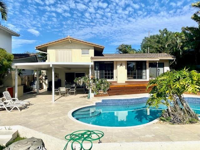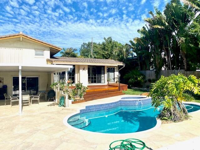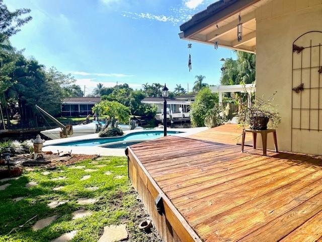 Step into the Tropical Paradise of SW Ft Lauderdale known as LAUDERDALE ISLES. This waterfront 3 bedroom 2 Bathroom Tri-Level home comes with circular driveway, Pool and patio deck over looking Ocean Access canal with boat dock. The covered patio area features a built in Barbeque that makes this home superb for outdoor parties and entertaining. The wood deck beside the below ground pool is perfect for sunbathing and relaxing in the S Florida Sunshine. Boat Owners will love the NO FIXED BRIDGES deep water and their own private dock behind the house just yards from the New River. Width of property on canal is ~65'. Existing Wood Dock is ~35'. EZ access to 595/95/Turnpike, 1 car garage, Tile Roof 2006, HW Heater 2022 A/C is 2016 Call to schedule a Showing today. This home wont last long.