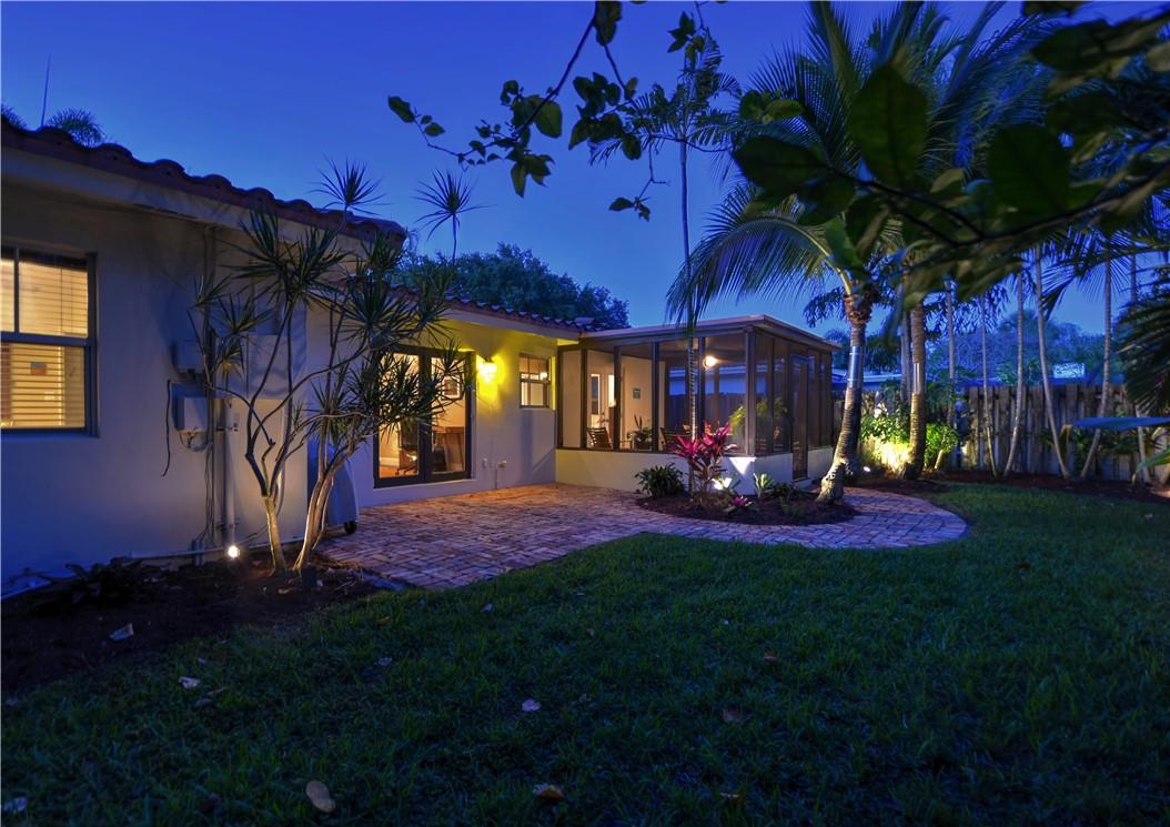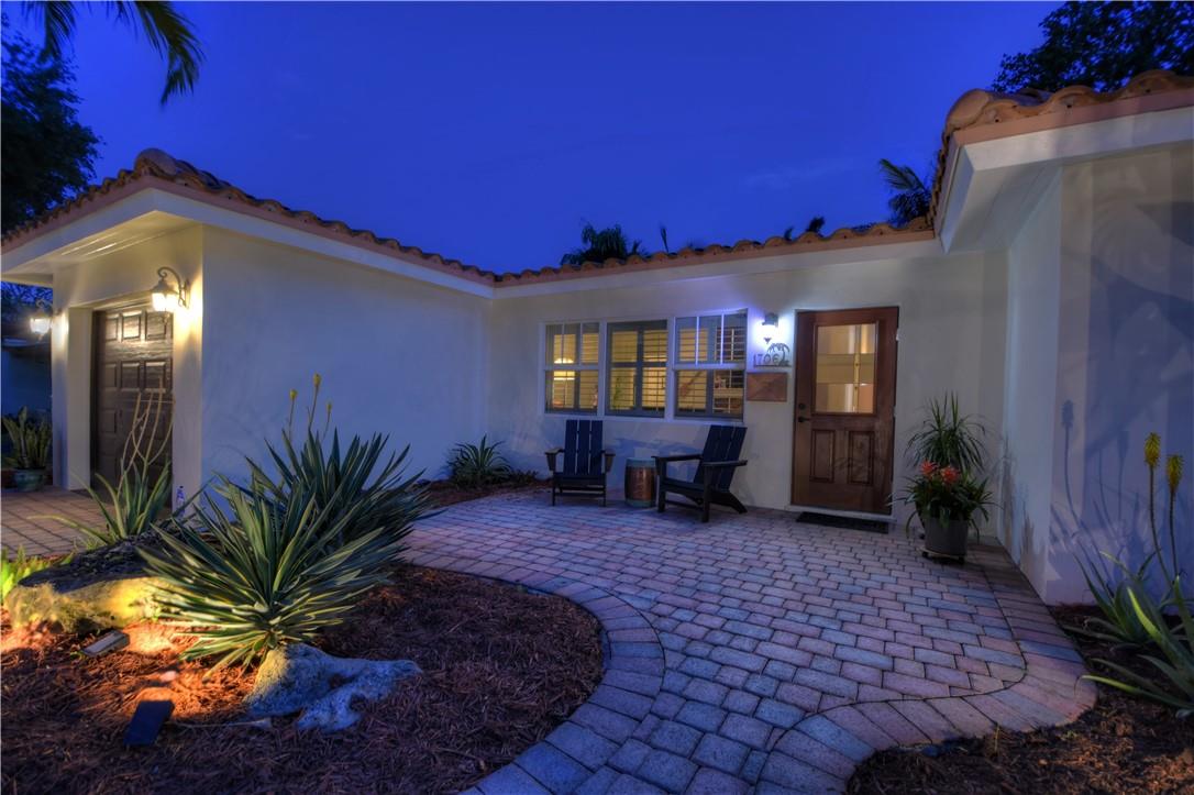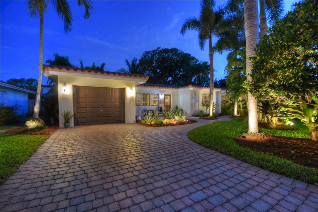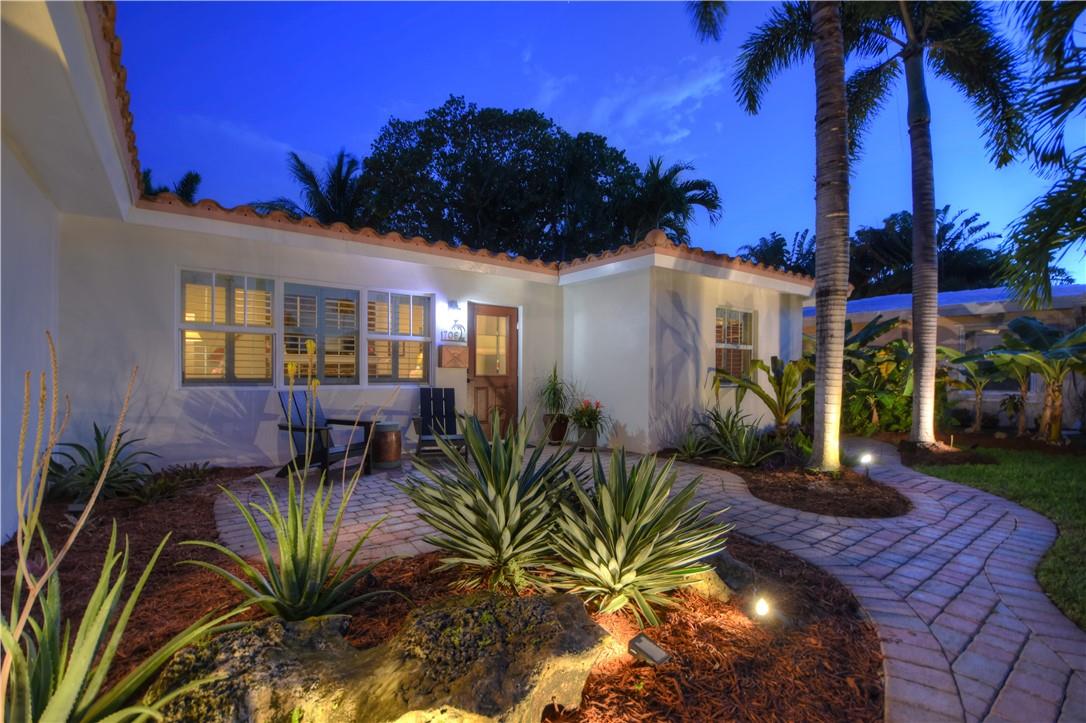 This updated home is located on a quiet, tree-lined street in beautiful Poinsettia Heights just blocks from the action of Wilton Manors, fabulous restaurants and aquatic fun on the river. Both the interior & exterior of the home is tastefully designed! This home features an open floor plan w/ a spacious kitchen overlooking the dining and living area w/ a decorative vintage fireplace. The kitchen features Martha Stewart cabinets, stainless steel appliances and quartz countertops. This home is nestled among fruit & native Florida trees, professionally landscaped & beautifully lit at night. The primary bedroom has French doors to a wonderful screened patio in the lush tropical backyard. The home also features a tankless water heater, newer appliances, & HVAC system. Pool plans are available.