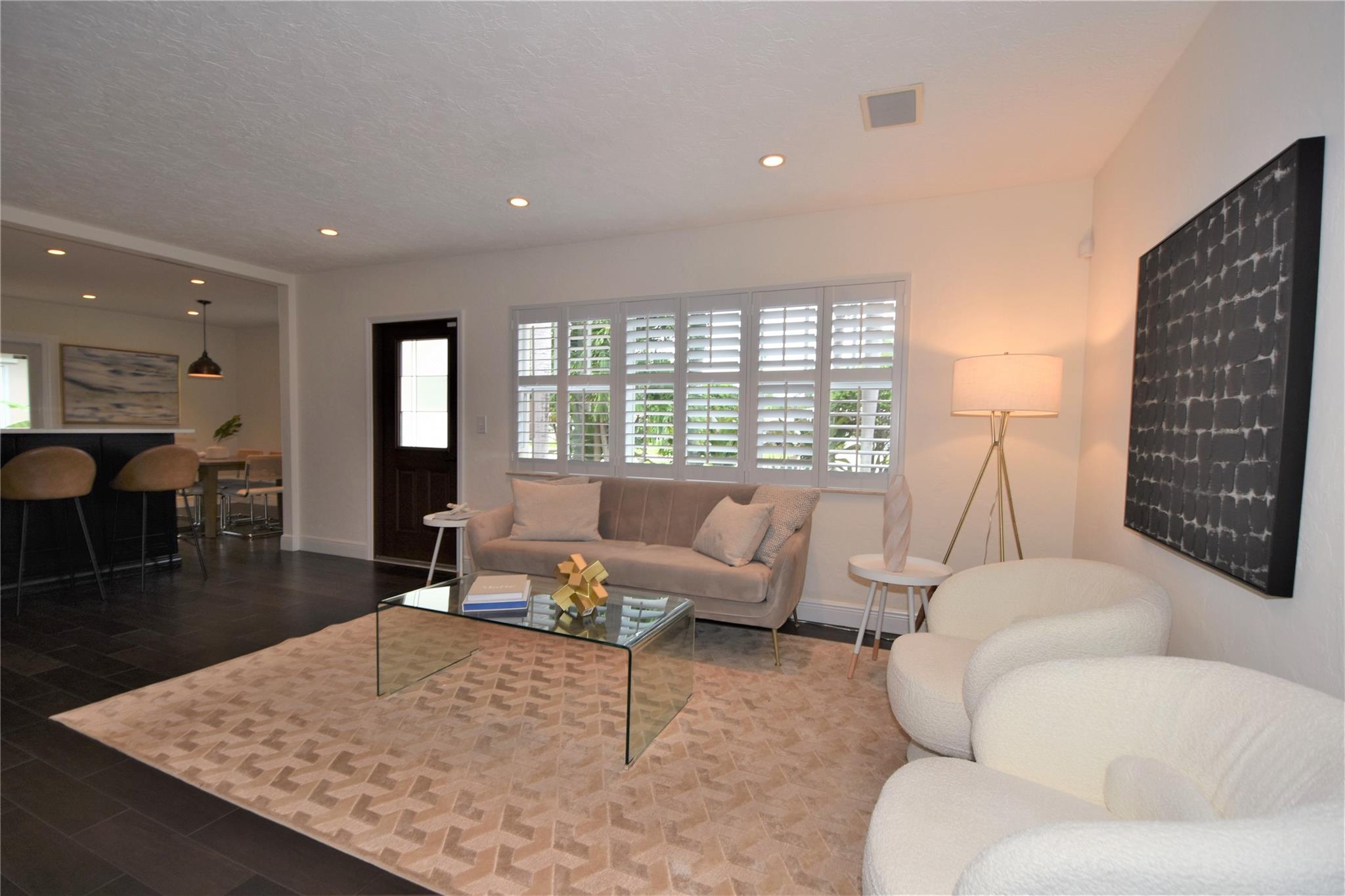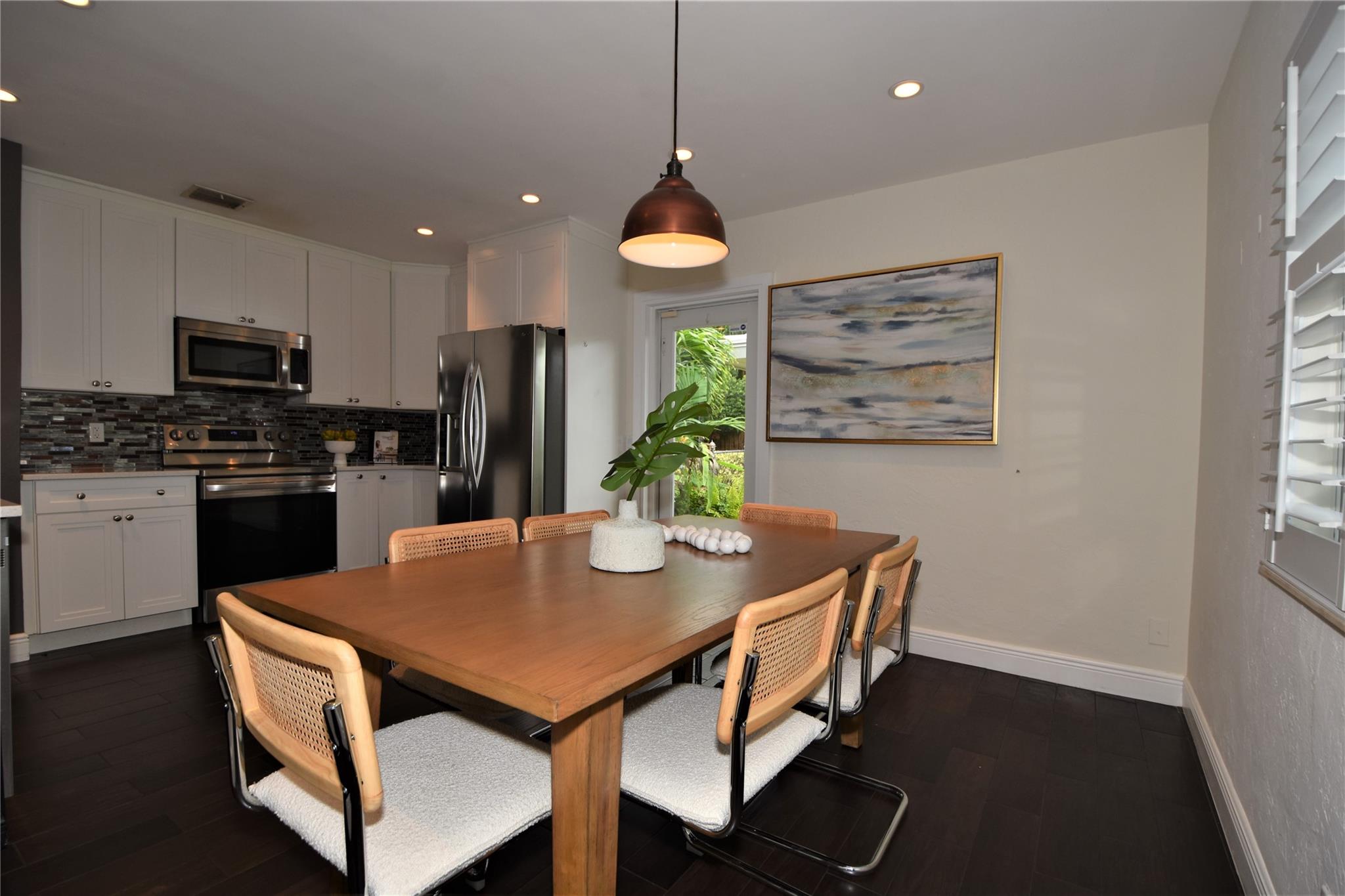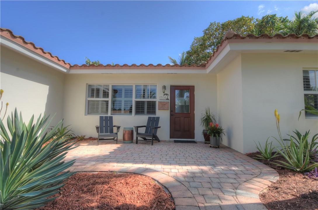 This updated home is located on a quiet, tree-lined street in beautiful Poinsettia Heights just blocks from the action of Wilton Manors, fabulous restaurants and aquatic fun on the river. Both the interior & exterior of the home is tastefully designed! This home features an open floor plan w/ a spacious kitchen overlooking the dining and living area w/ a decorative vintage fireplace. The kitchen features Martha Stewart cabinets, stainless steel appliances and quartz countertops. This home is nestled among fruit & native Florida trees, professionally landscaped & beautifully lit at night. The primary bedroom has French doors to a wonderful screened patio in the lush tropical backyard. The home also features a tankless water heater, newer appliances, & HVAC system. Pool plans are available.