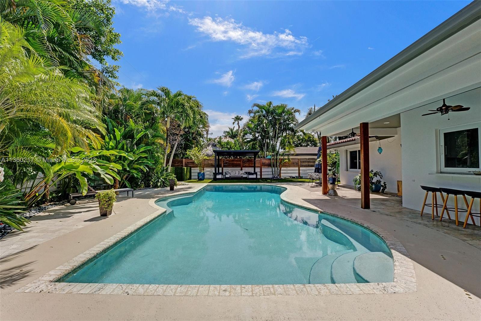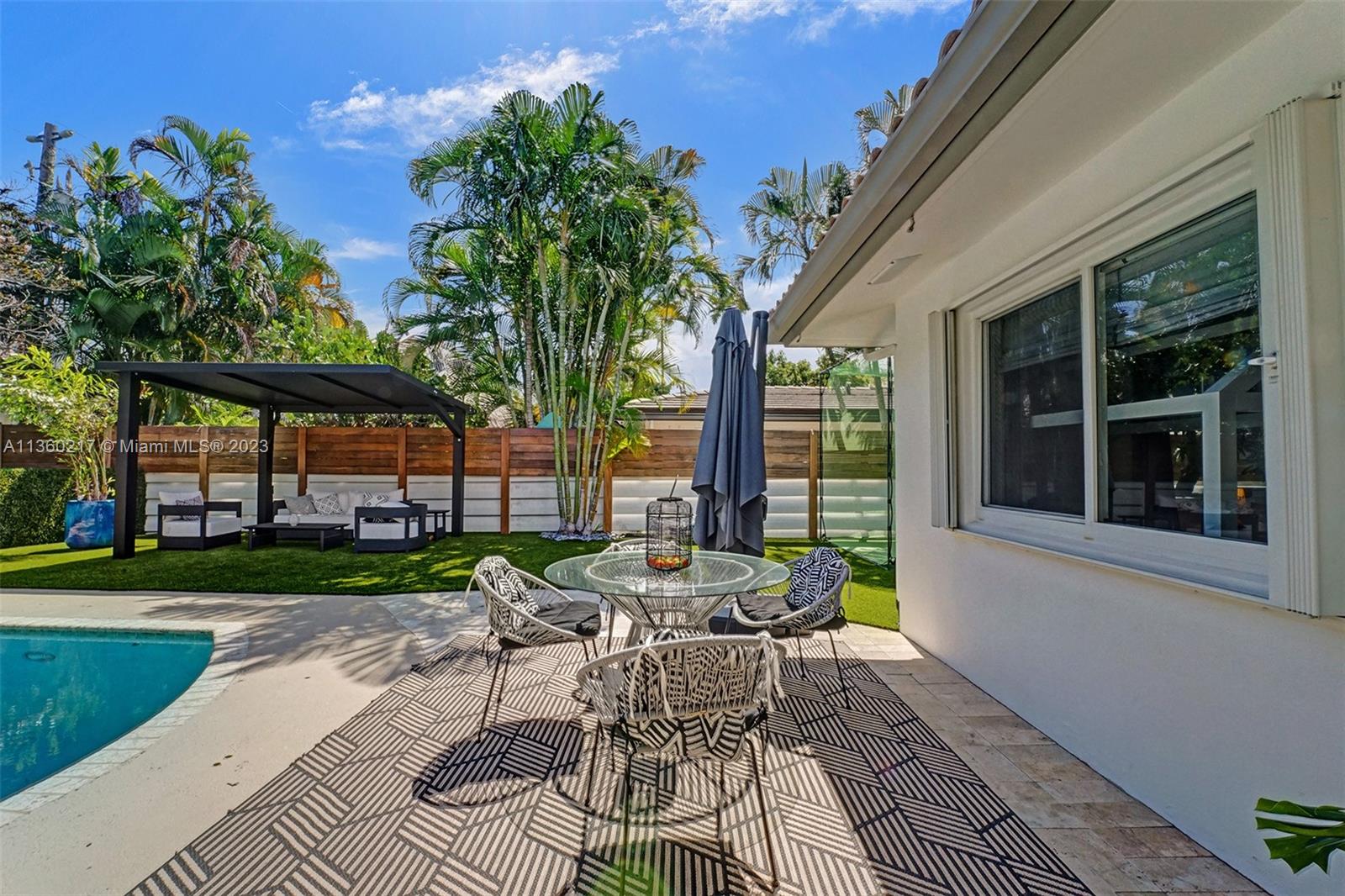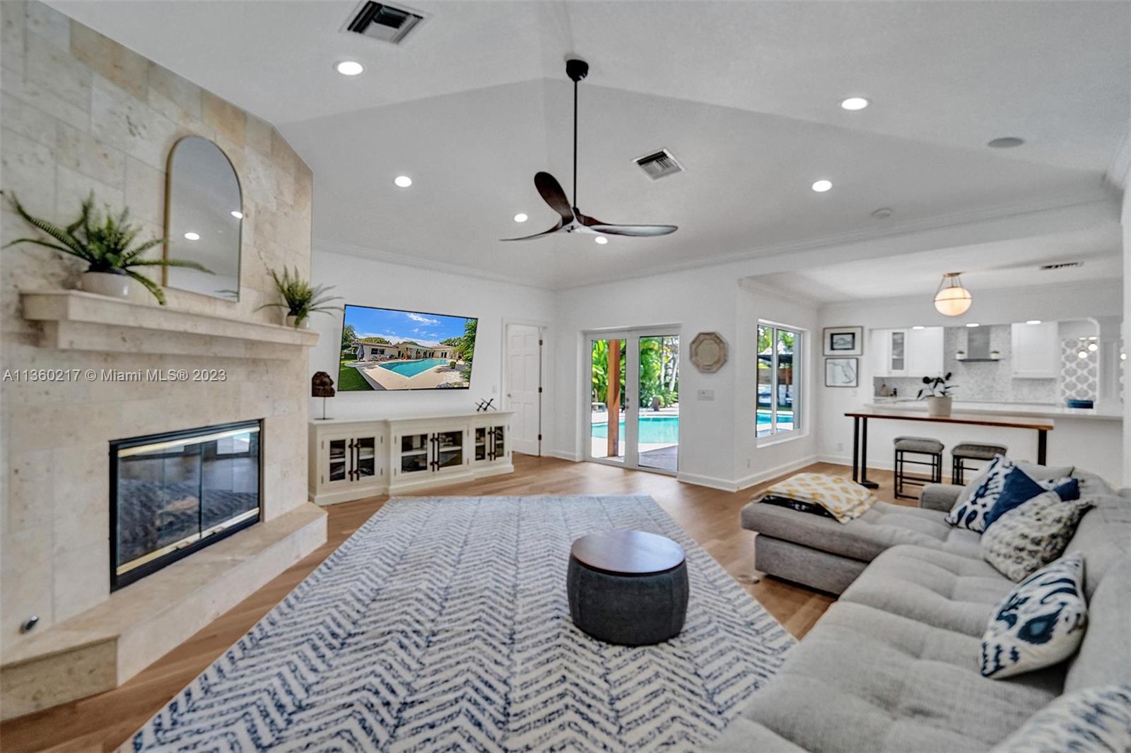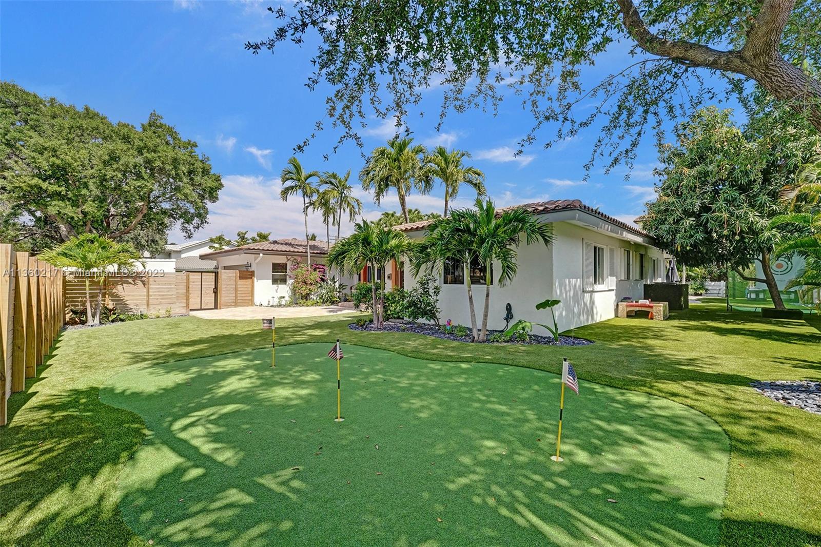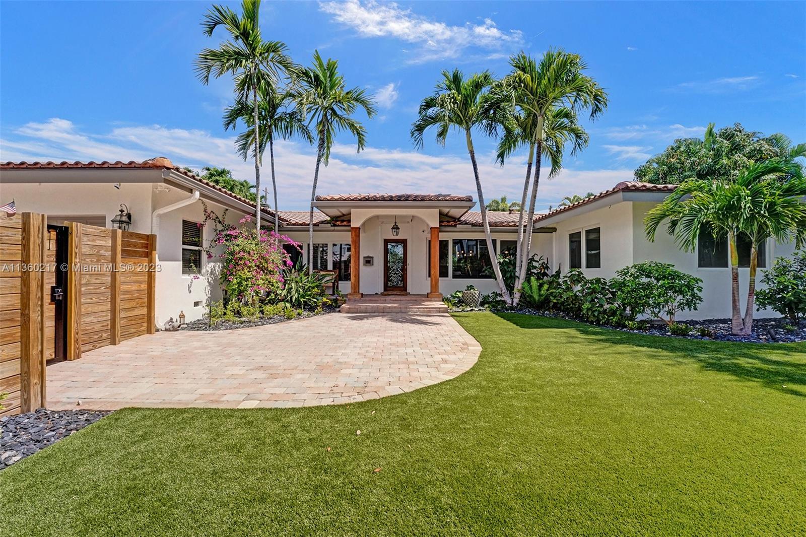 A pristinely located estate w/large private paradise wraps entire property. Interior boasts refinished white oak wood floors and recessed lighting throughout. Chef’s kitchen w/slow-close Italian cabinets, quartzite counters, JennAir appliances + bar. Family room w/travertine marble gas fireplace! Master bed w/pool access, walk-in + en suite w/steam shower + expansive vanity. 2 large guest bedrooms, 4th bed is office! Massive bonus playroom/den w/volume ceiling. 2 new HVACs, new electric panel (’21), whole-house generator and H2O filtration system. Tropical landscaping, heated saltwater pool, covered patio, cabana, putting green and expansive artificial turf, Impact windows & doors. Walk to Ocean, Publix, Galleria Mall, Capital Grille, Starbucks, George English Park and Birch State Park.