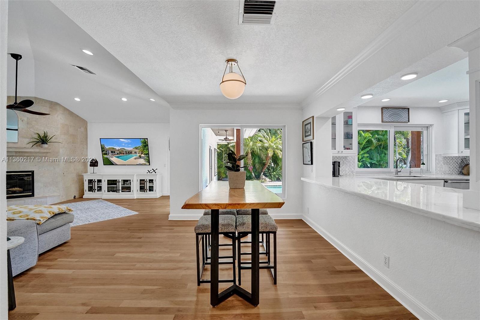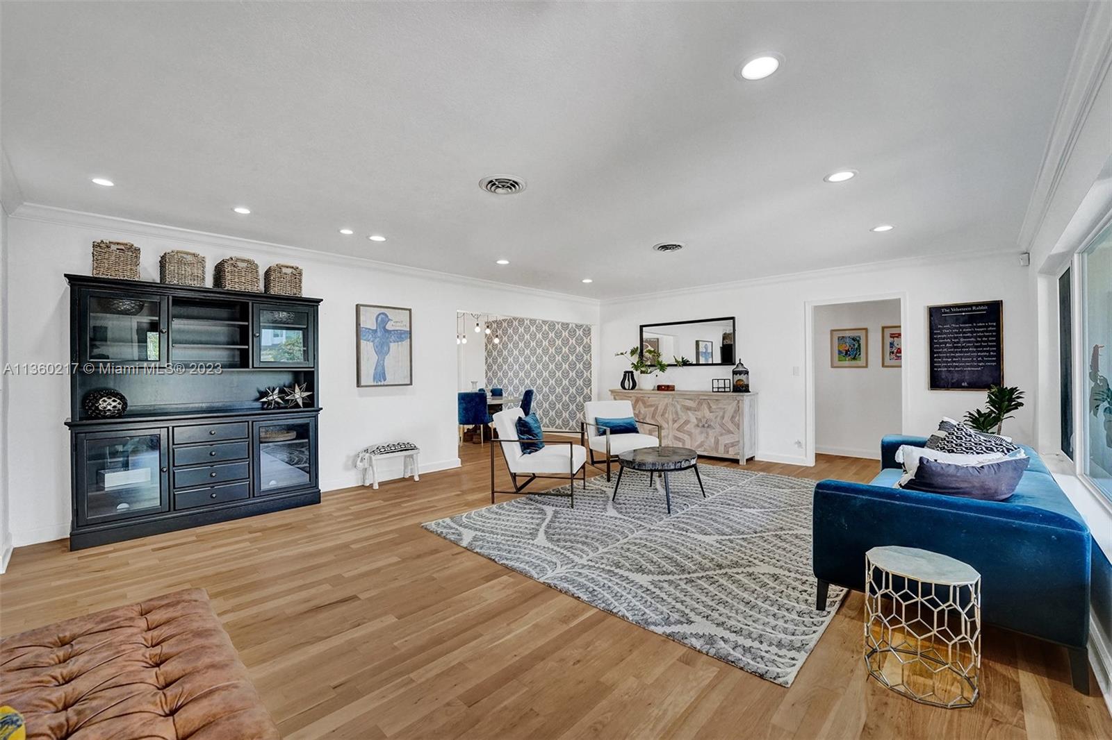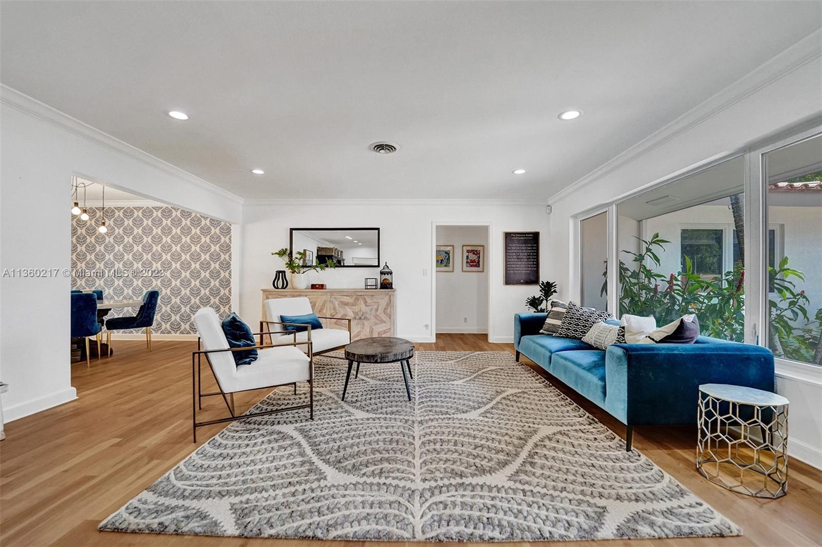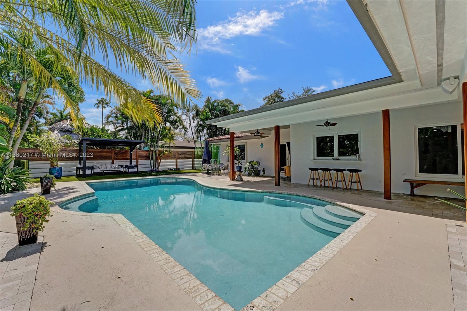 A pristinely located estate w/large private paradise wraps entire property. Interior boasts refinished white oak wood floors and recessed lighting throughout. Chef’s kitchen w/slow-close Italian cabinets, quartzite counters, JennAir appliances + bar. Family room w/travertine marble gas fireplace! Master bed w/pool access, walk-in + en suite w/steam shower + expansive vanity. 2 large guest bedrooms, 4th bed is office! Massive bonus playroom/den w/volume ceiling. 2 new HVACs, new electric panel (’21), whole-house generator and H2O filtration system. Tropical landscaping, heated saltwater pool, covered patio, cabana, putting green and expansive artificial turf, Impact windows & doors. Walk to Ocean, Publix, Galleria Mall, Capital Grille, Starbucks, George English Park and Birch State Park.