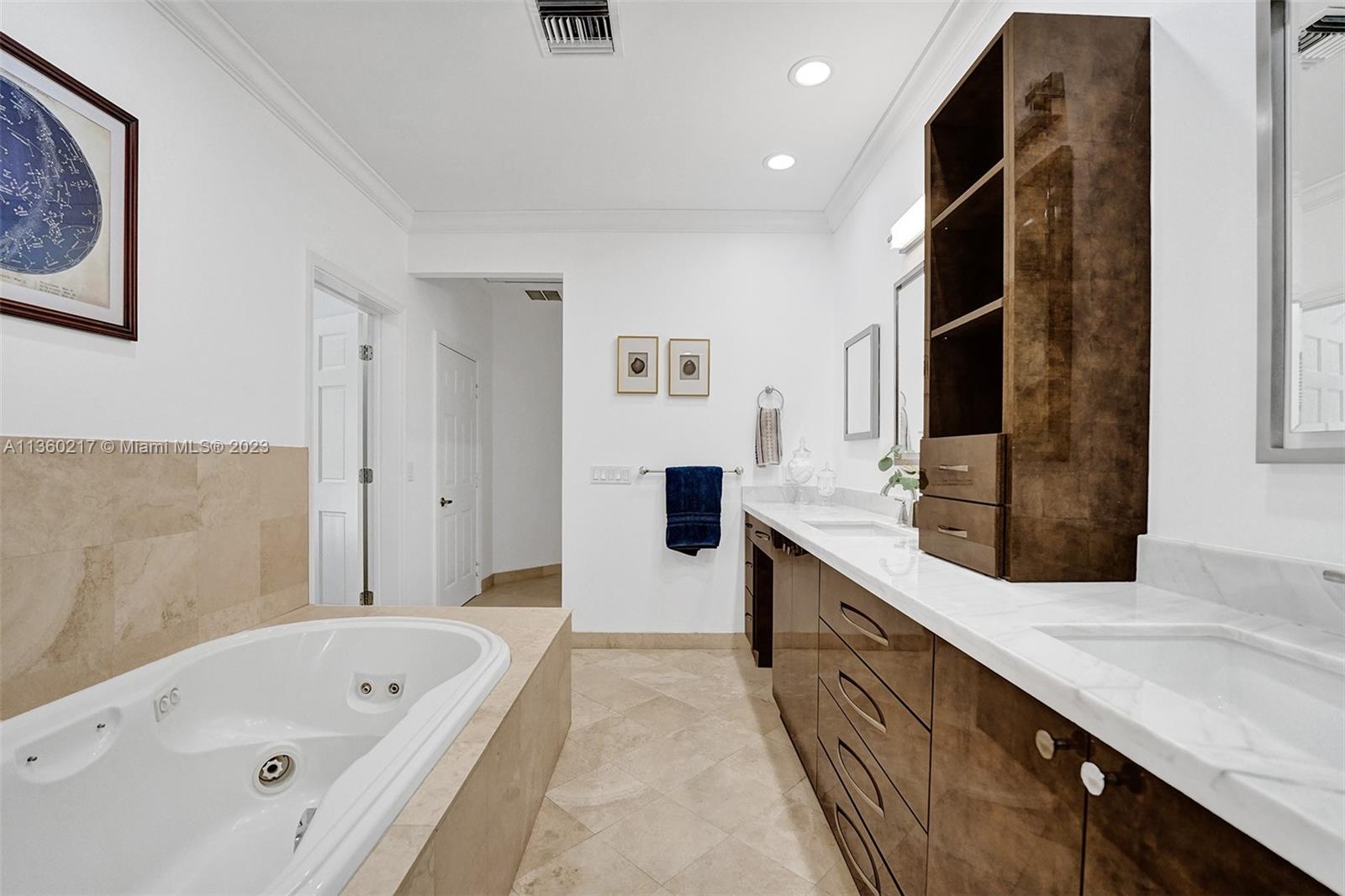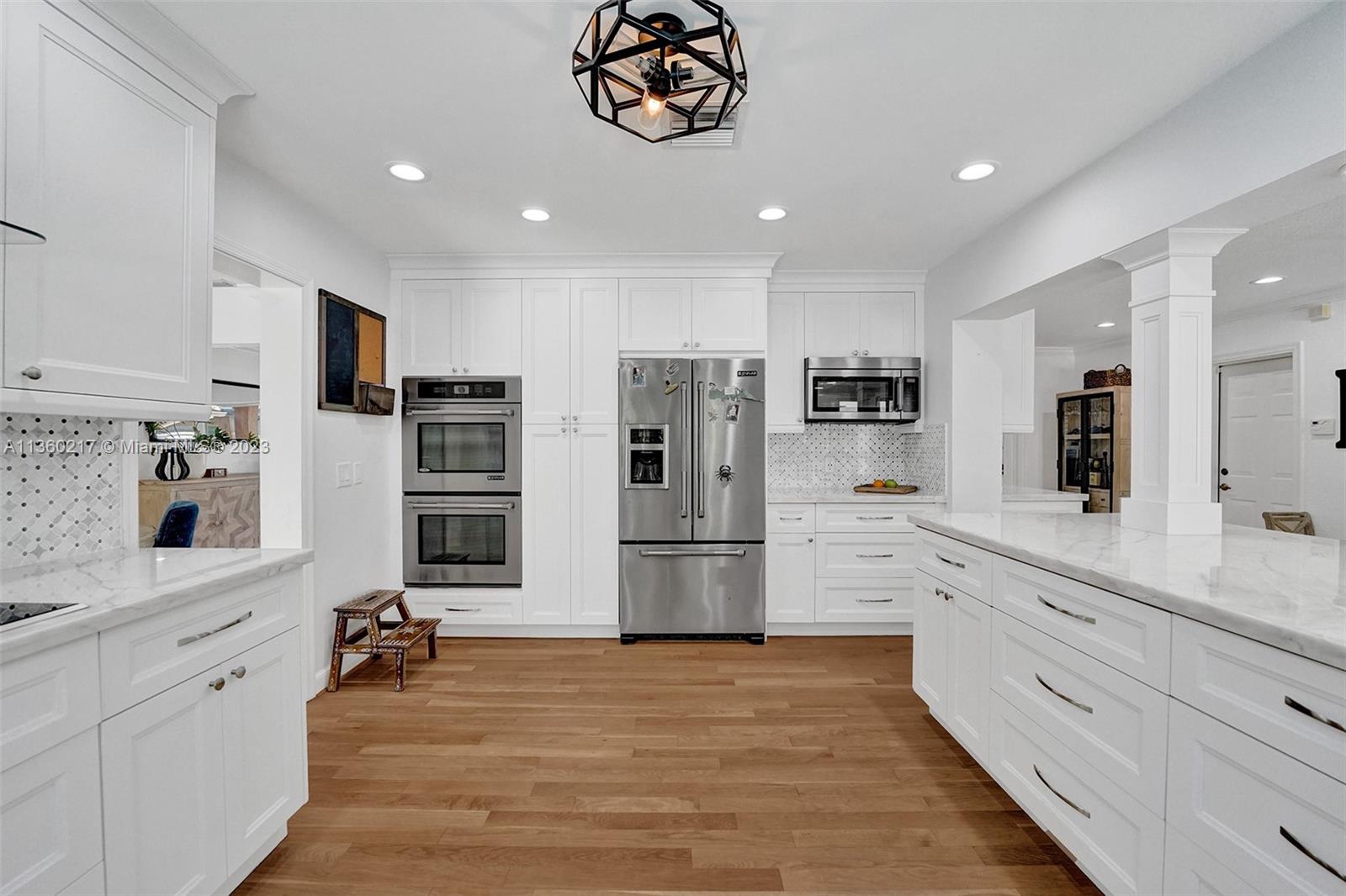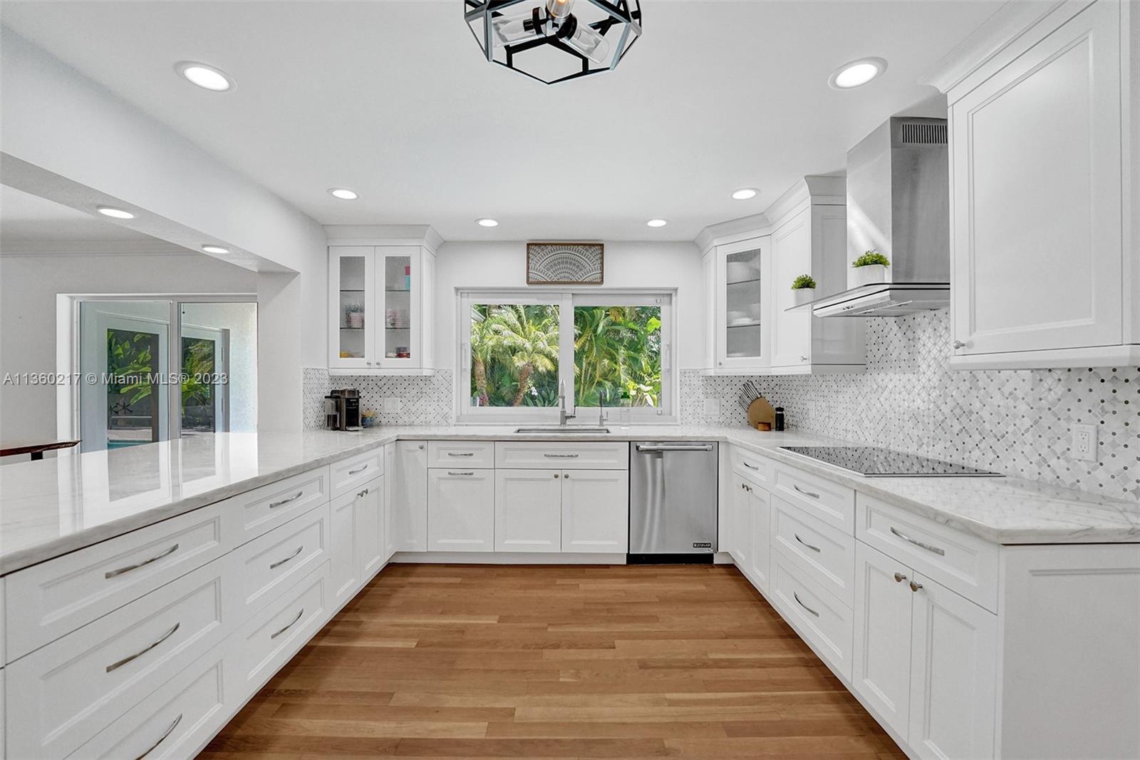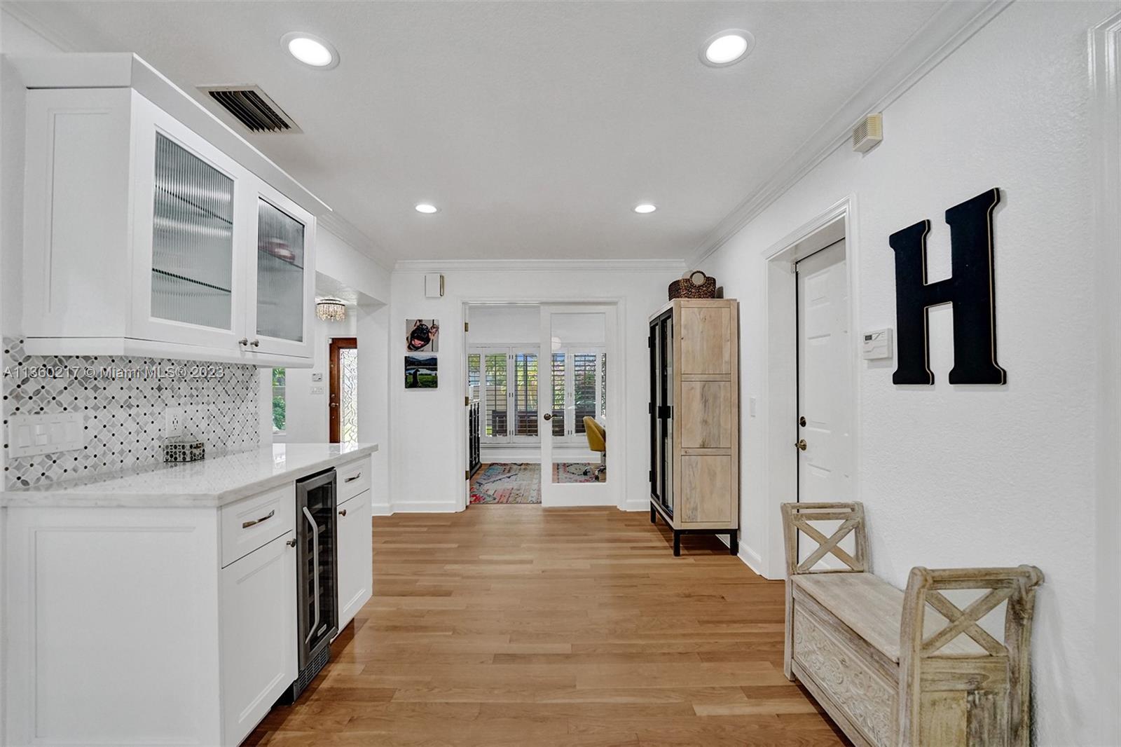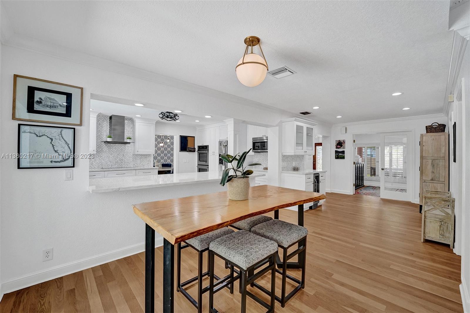A pristinely located estate w/large private paradise wraps entire property. Interior boasts refinished white oak wood floors and recessed lighting throughout. Chef’s kitchen w/slow-close Italian cabinets, quartzite counters, JennAir appliances + bar. Family room w/travertine marble gas fireplace! Master bed w/pool access, walk-in + en suite w/steam shower + expansive vanity. 2 large guest bedrooms, 4th bed is office! Massive bonus playroom/den w/volume ceiling. 2 new HVACs, new electric panel (’21), whole-house generator and H2O filtration system. Tropical landscaping, heated saltwater pool, covered patio, cabana, putting green and expansive artificial turf, Impact windows & doors. Walk to Ocean, Publix, Galleria Mall, Capital Grille, Starbucks, George English Park and Birch State Park.